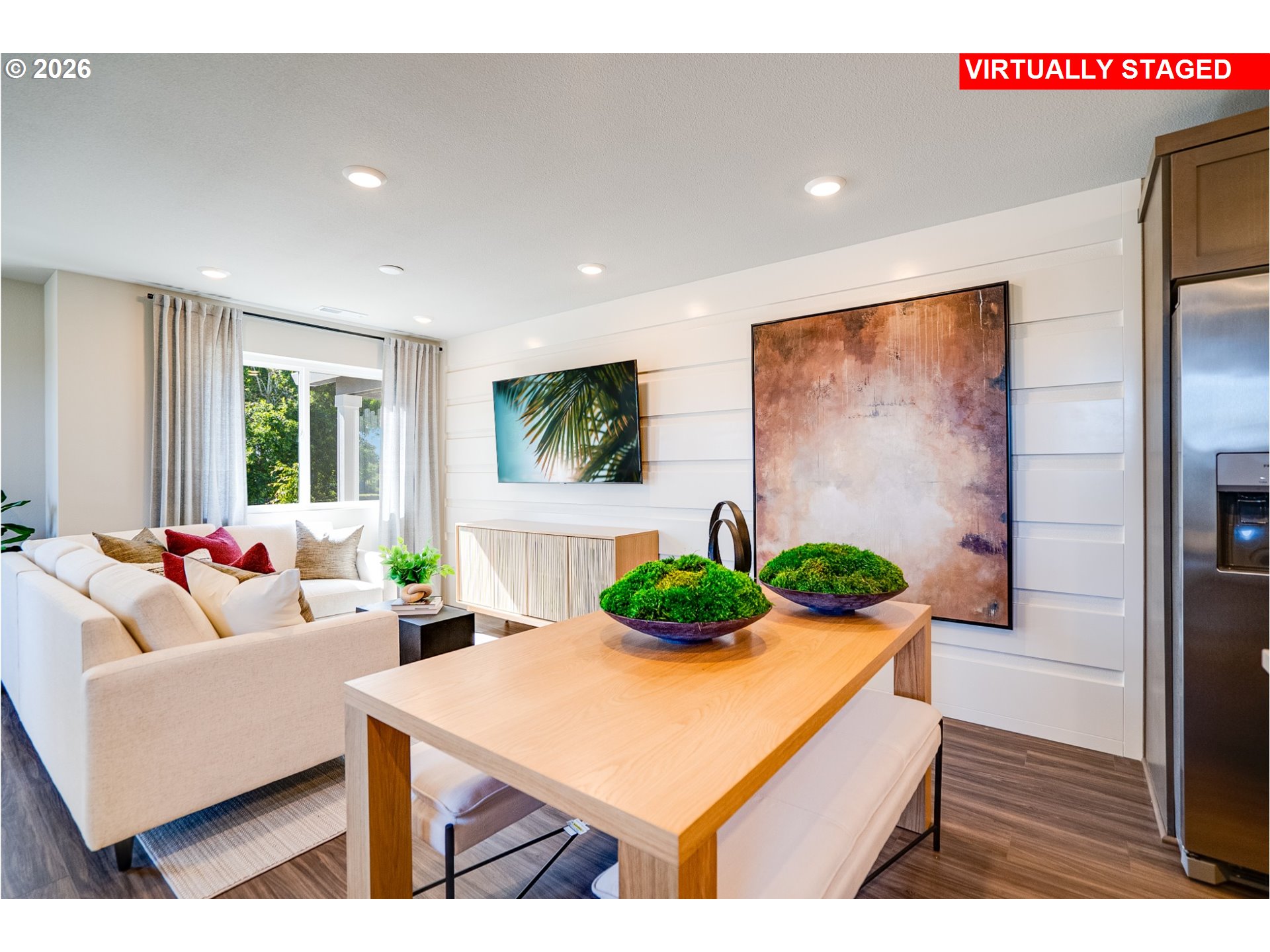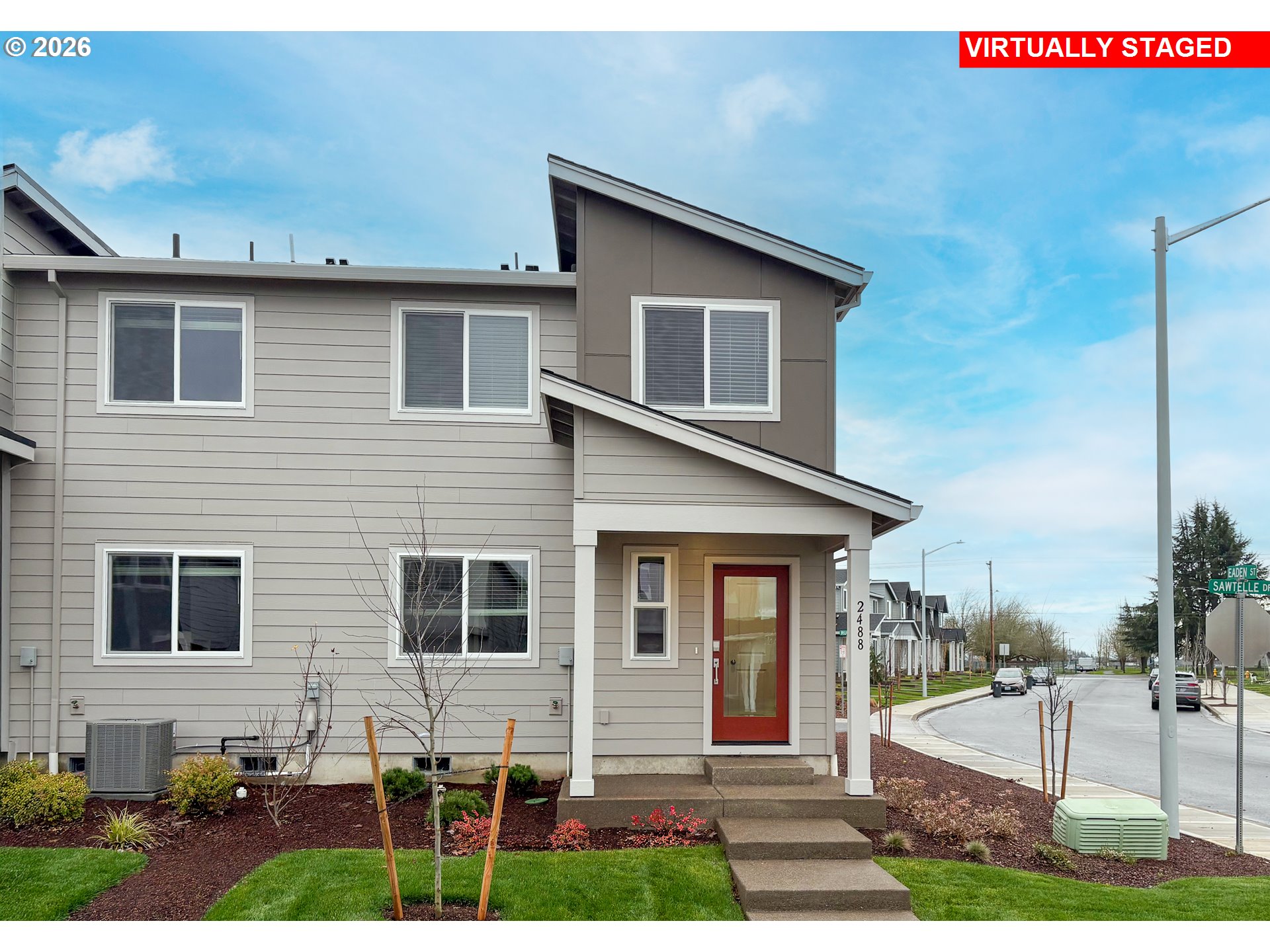 This new construction Smith Creek townhome sits on a corner lot and is conveniently located near I-5, just minutes from Woodburn Premium Outlets and close to parks, golf courses, schools, and vineyards, with easy highway access for smooth commutes. Community amenities include a dog park, multiple playgrounds, picnic areas, trails, and a basketball court. Enter the Pierce floor plan, offering two spacious stories designed for modern living. The first floor shares an open layout between the kitchen, nook and Great Room for easy entertaining with convenient access to a powder room. Upstairs are two secondary bedrooms surrounding a versatile loft that can serve as an additional shared living space or office. Tucked away at the back end of the second floor, an owner's suite waits for you to enjoy your own en-suite bathroom and a spacious walk-in closet. Other interior highlights include quartz countertops, shaker-style cabinets, luxury vinyl plank flooring, and luxury vinyl tile. "Everything's Included" package means that price of home includes Refrigerator, Washer & Dryer, A/C, and blinds! Photos are for illustrative purposes only and are sample photos from similar model homes - features & finishes may vary. Homesite # 681, move-in ready. Below-market rate incentives available when financing with preferred lender.