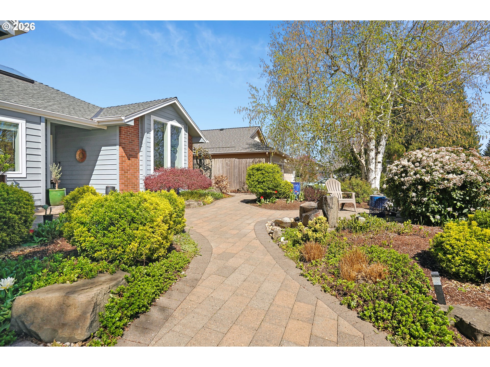 Tucked into a quiet North Keizer cul-de-sac, this well-maintained single-level home offers comfort, updates, and a thoughtfully designed, spacious layout. Vaulted ceilings and skylights bring in natural light, creating a bright, open feel in the front living and dining spaces. Refinished hardwood floors, new carpet, and updated surfaces add a clean, refreshed look.The den features a trendy refinished brick fireplace and built-in storage, adding both warmth and function while being open to the kitchen. Recent improvements include new windows, exterior paint, furnace, water heater, and fencing—providing peace of mind for the next owner.The primary suite is situated in the back of the house for added privacy and includes double door entry, L-shaped vanity with double sinks and built-in shelf storage, and an oversized closet. The third bedroom functions well as an office but is still practical with a built-in Murphy bed. The yard is a true highlight with lush landscaping and vibrant pops of color throughout. Flowering plants create a private, garden-like setting, while a welcoming fountain in the front adds charm and a sense of calm. Hardscaped pathways wrap around the home, making it easy to enjoy every corner of this outdoor space—an inviting oasis for relaxing or entertaining.Located close to schools, shopping, dining, and community events, with easy access to I-5 for commuting north or south. All on one level, this home offers flexibility, comfort, and long-term appeal in one of North Keizer’s most desirable locations.