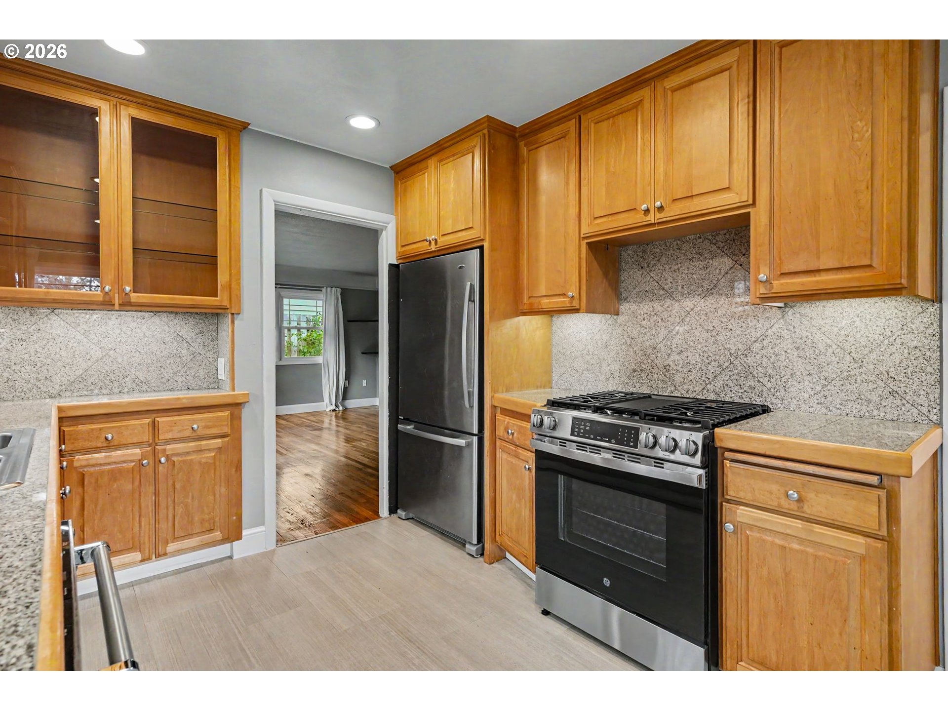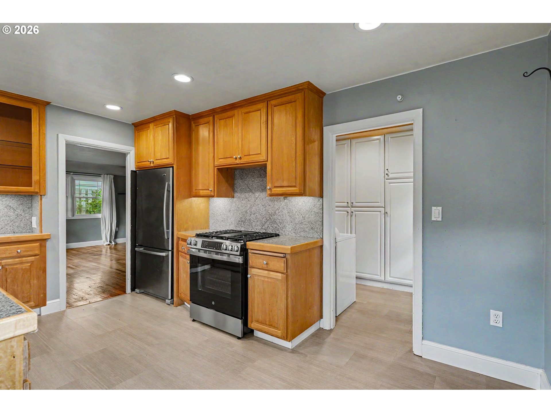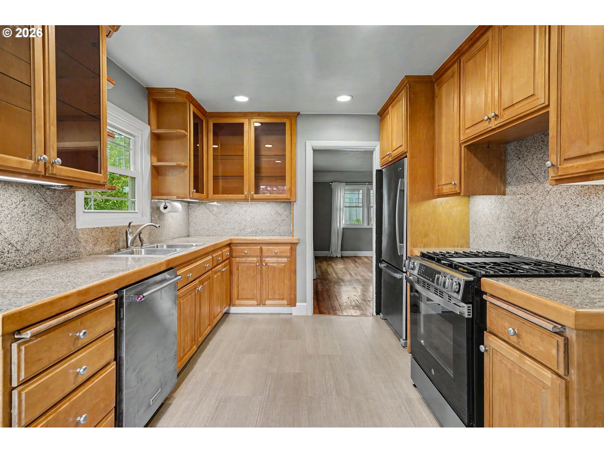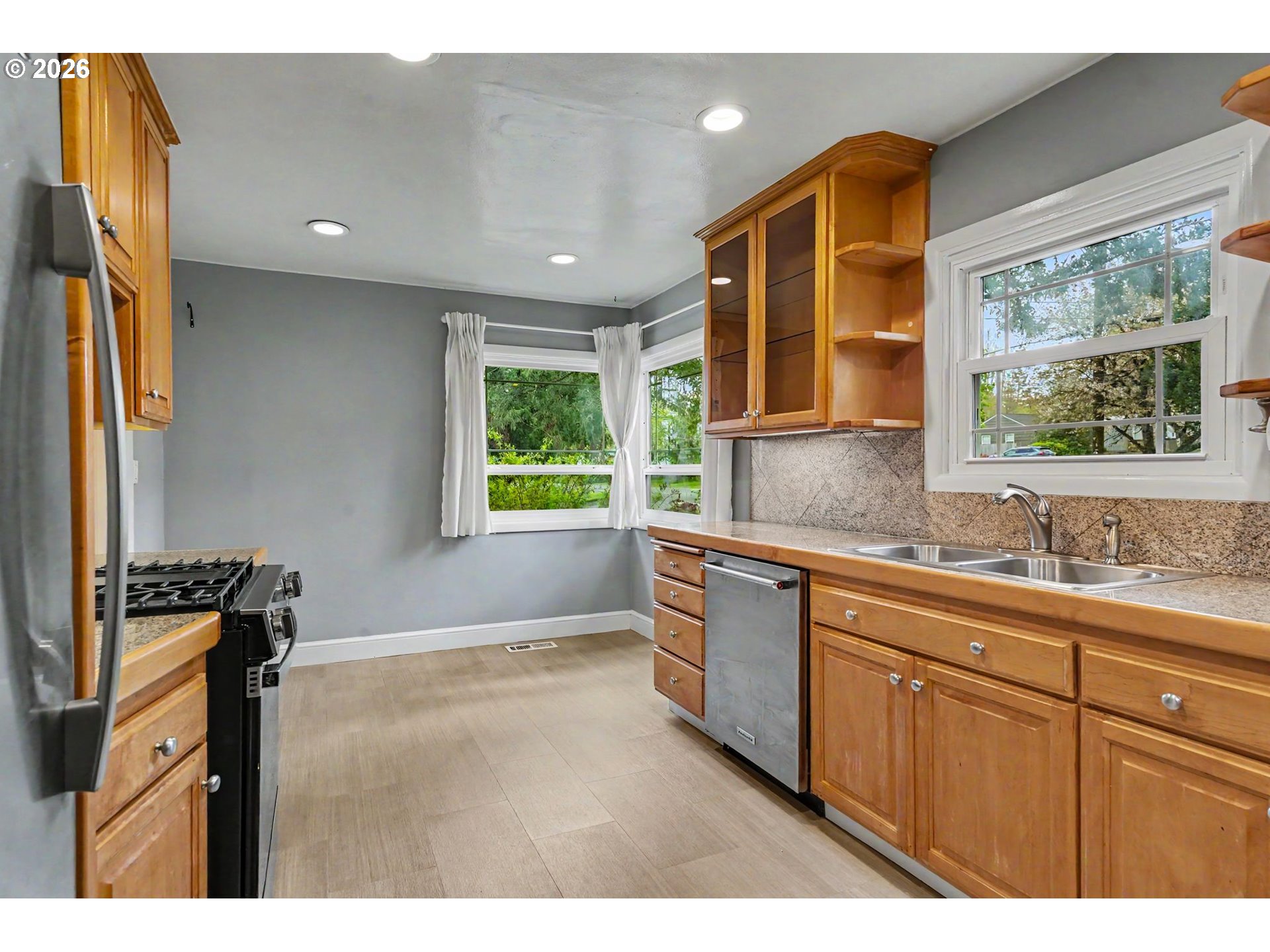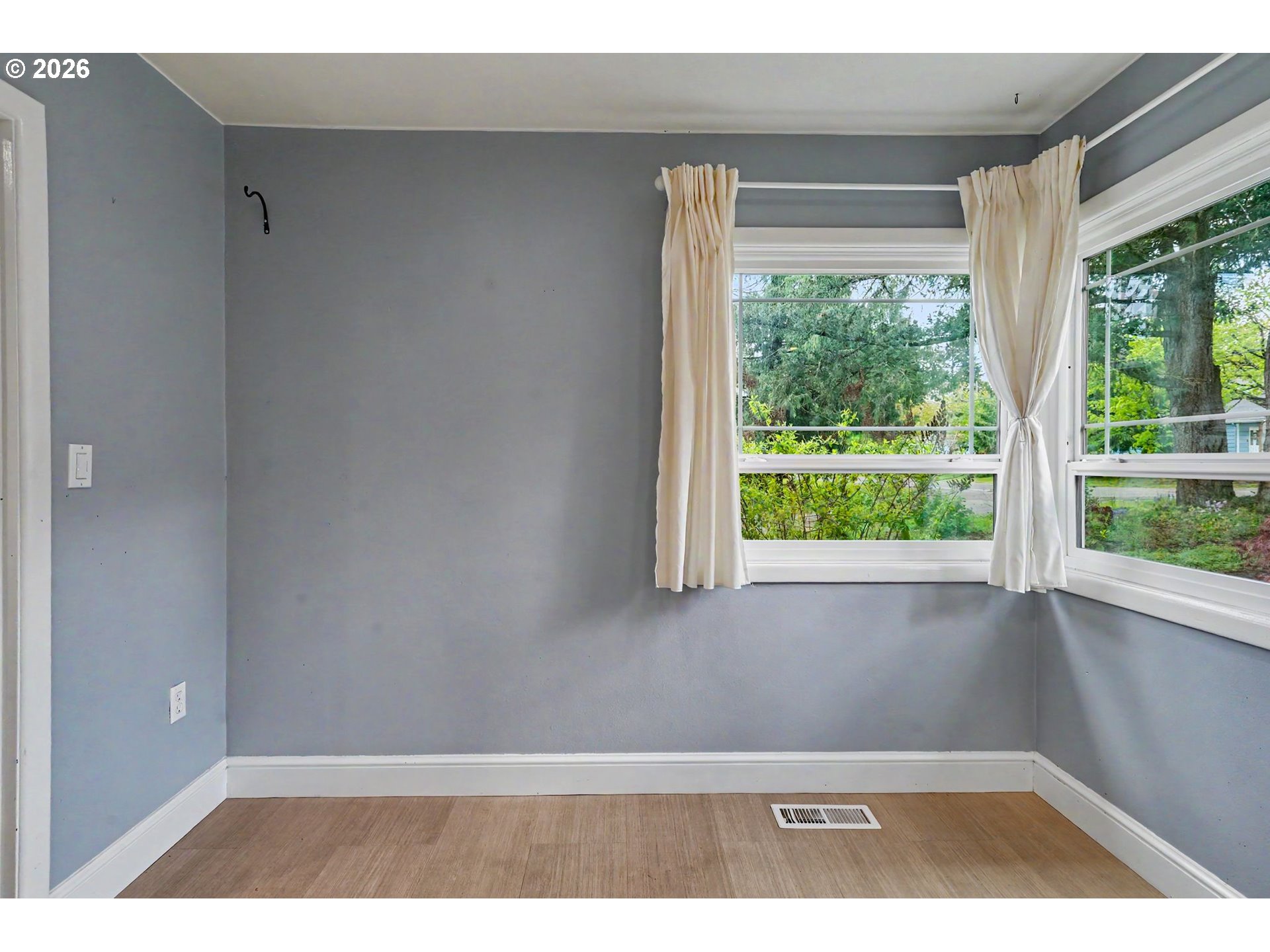 (503) 893-8874OFFERS DUE 4/21 @10am Welcome Home to a corner lot where the backyard steals the show — a modern pergola over a paver patio, a trickling water feature, established gardens, and mature trees that make outdoor living effortless year-round. Inside, hardwood floors and oversized windows keep things bright and grounded. Classic bones, real character, and outdoor space that most homes in this price range simply can't match — all minutes from shopping and dining. Multiple fruit trees