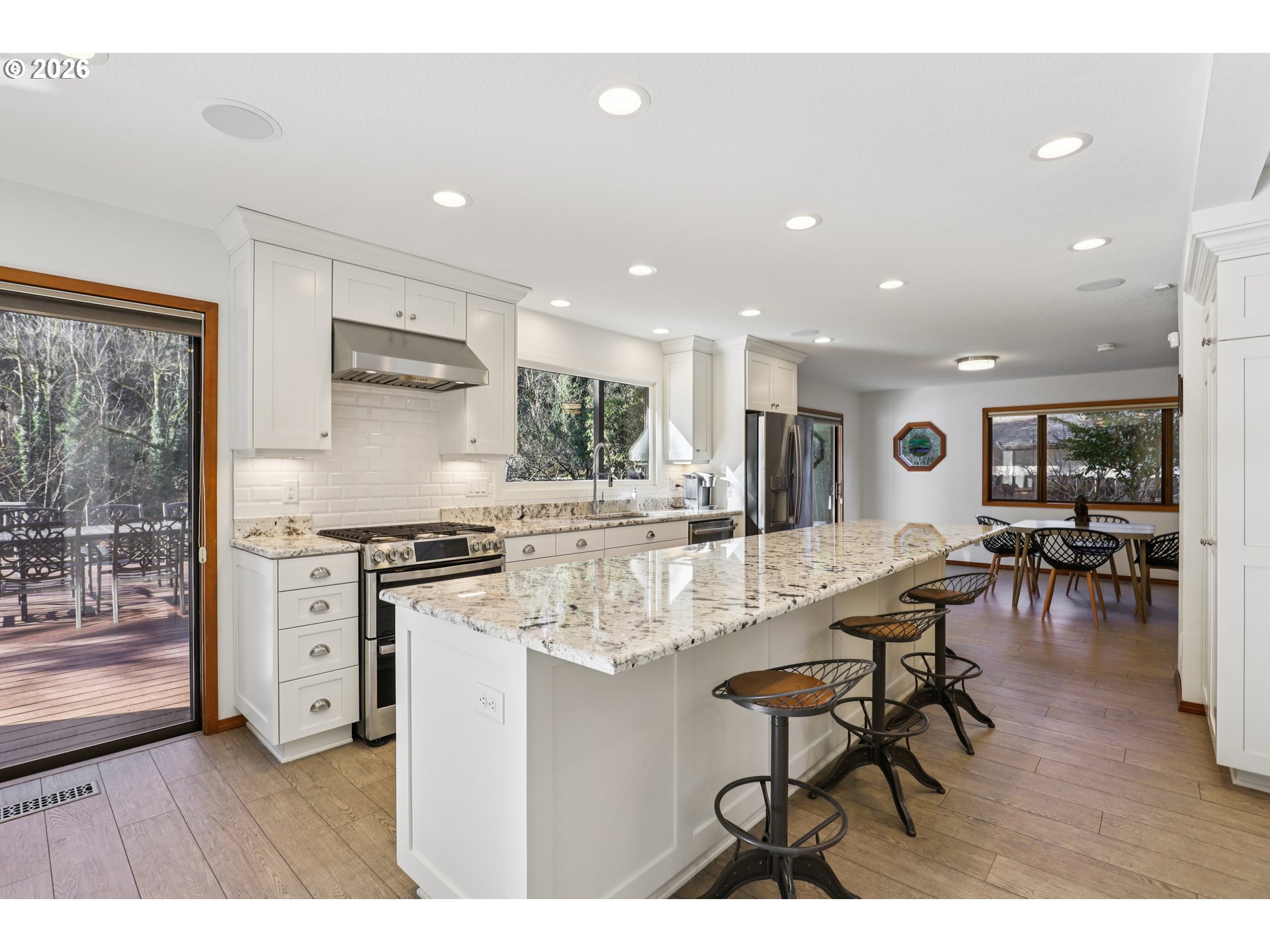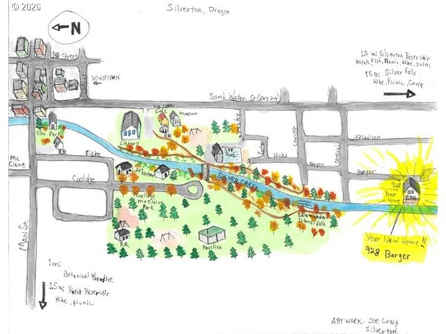 (503) 893-8874Rare waterfront home in Silverton offering direct river access in a peaceful, private setting. Enjoy fresh-water recreation, including swimming or wading, along with easy access to local pathways, downtown Silverton, and the public library. Extensive updates include a fully renovated kitchen, a rebuilt lower Trex deck, and a refinished upper deck designed to maximize outdoor living and river views. Surrounded by lush, year-round landscaping with accent lighting, the home features an open-concept interior with soaring ceilings and a natural stone fireplace. The chef’s kitchen boasts a 12-foot marble island with generous storage, GE Profile gas double oven with convection and Wi-Fi, commercial-grade vented hood, ceiling speakers, and smart lighting throughout. A centrally located main-floor command center adds convenience. The primary bedroom includes a private balcony with river views. A rare opportunity combining privacy, recreation, and walkability in one of Silverton’s most desirable locations.