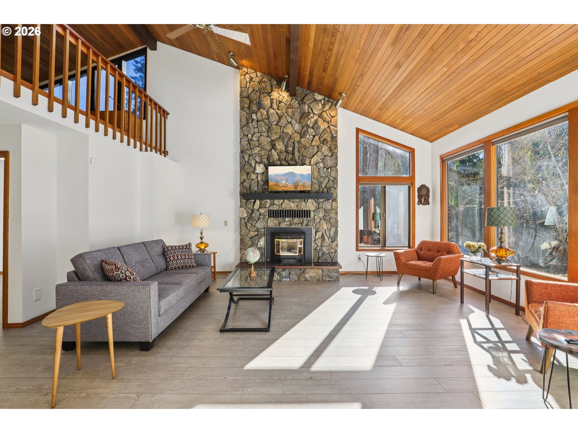 BeamedCeilings, CeilingFan, Fireplace, FireplaceInsert, PelletStove, Skylight
