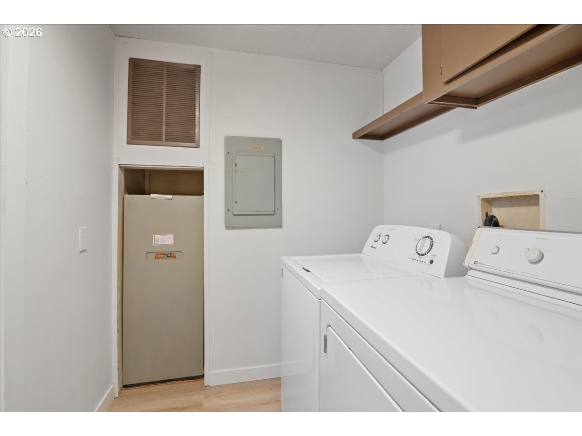 Great opportunity in all ages park! 3 bed, 2 bath home in a quiet community with only a short commute to Salem! Low space rent with utilities (w/s/g). Featuring a new roof, fresh interior & exterior paint, new flooring, updated lighting, and refreshed kitchen with appliances included. (Self-cleaning oven, dishwasher and a NEW stainless steel frig) Laundry room with washer and dryer is also a plus. The open floor plan with spacious living area and large fenced backyard is perfect for pets or kids. You'll also find a rare gated and locked parking area to store your RV or an extra car or two! Seller offering buyer incentive: One-month FREE space rent with accepted offer.