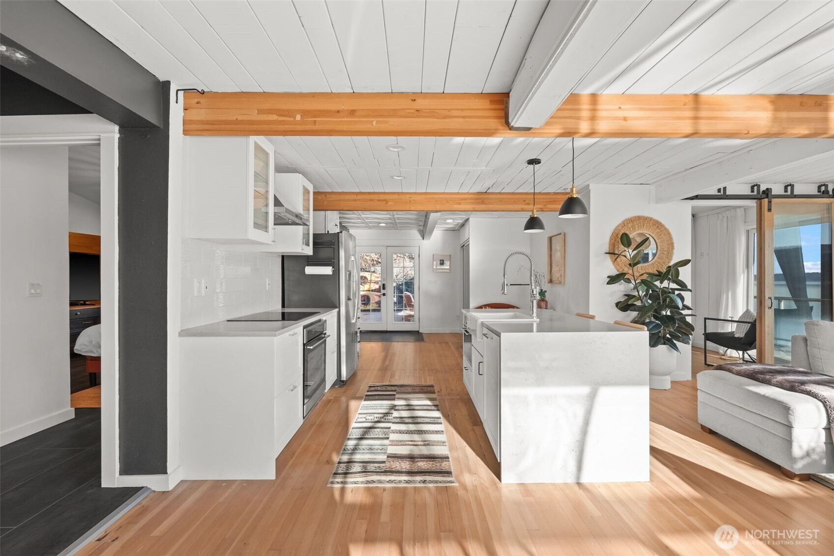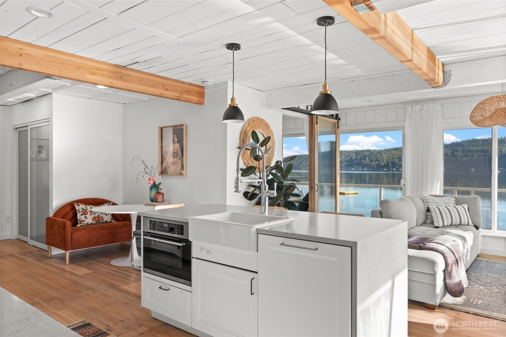 Welcome to the Hood Canal- known as Washington's Wild Side. This private waterfront retreat on the stunning Hood Canal features 70 feet of rare low-bank frontage with the shoreline just steps away. This fully remodeled cottage captures sparkling water views through expansive windows that frame the ever-changing tides. The open-concept living area is light-filled and elegant, anchored by a cozy wood-burning fireplace. A beautifully refreshed kitchen offers modern appliances, clean lines, and effortless flow for everyday living and entertaining. Peaceful bedrooms and spa-inspired updated bathrooms create a comfortable, low-maintenance escape. Multiple-zone mini splits provide efficient year-round heating and cooling, and elegant furnishings make this home truly turnkey. (Fully furnished option available) A private gated entry and dedicated parking add convenience and privacy. The expansive waterfront deck features a fire table, loungers, and BBQ -perfect for sunset gatherings. Kayak, swim, fish, or harvest oysters and clams from your own productive beach, or launch a boat just minutes away at the Belfair Boat Launch. Currently operating as a successful short-term rental, this property offers lifestyle and income potential. Located near Alderbrook Resort & Spa, Wineries, and State parks. Easy commute to Seattle and just 20 minutes to the Bremerton Ferry.