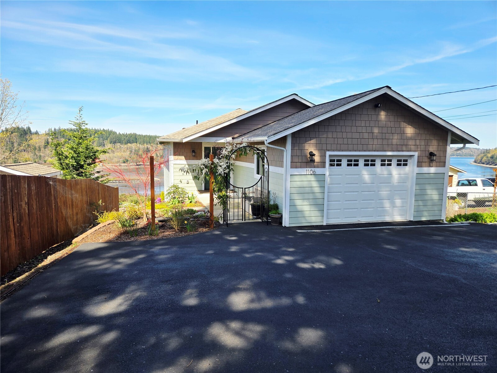 An unbeatable saltwater view in town, close to everything you need! Built in 2023, this 2-bed, 2-bath home is a must see. The gorgeous and functional kitchen has granite countertops, a pass-through window, walk-in pantry and a coffee bar. Spacious living and dining room area with incredible views of Oakland Bay. Lounge on the beautiful deck and soak in the sun while watching the marine life! The large master suite features an office area, walk-in closet, laundry space and his & her sinks with a private toilet room. A generous 2nd bedroom, full spare bathroom and garage complete the main floor. Below, you will find a massive basement with tons of potential. More bedrooms, a game room, maybe even a home gym? Outside has been beautifully landscaped with walking paths and flowers galore!