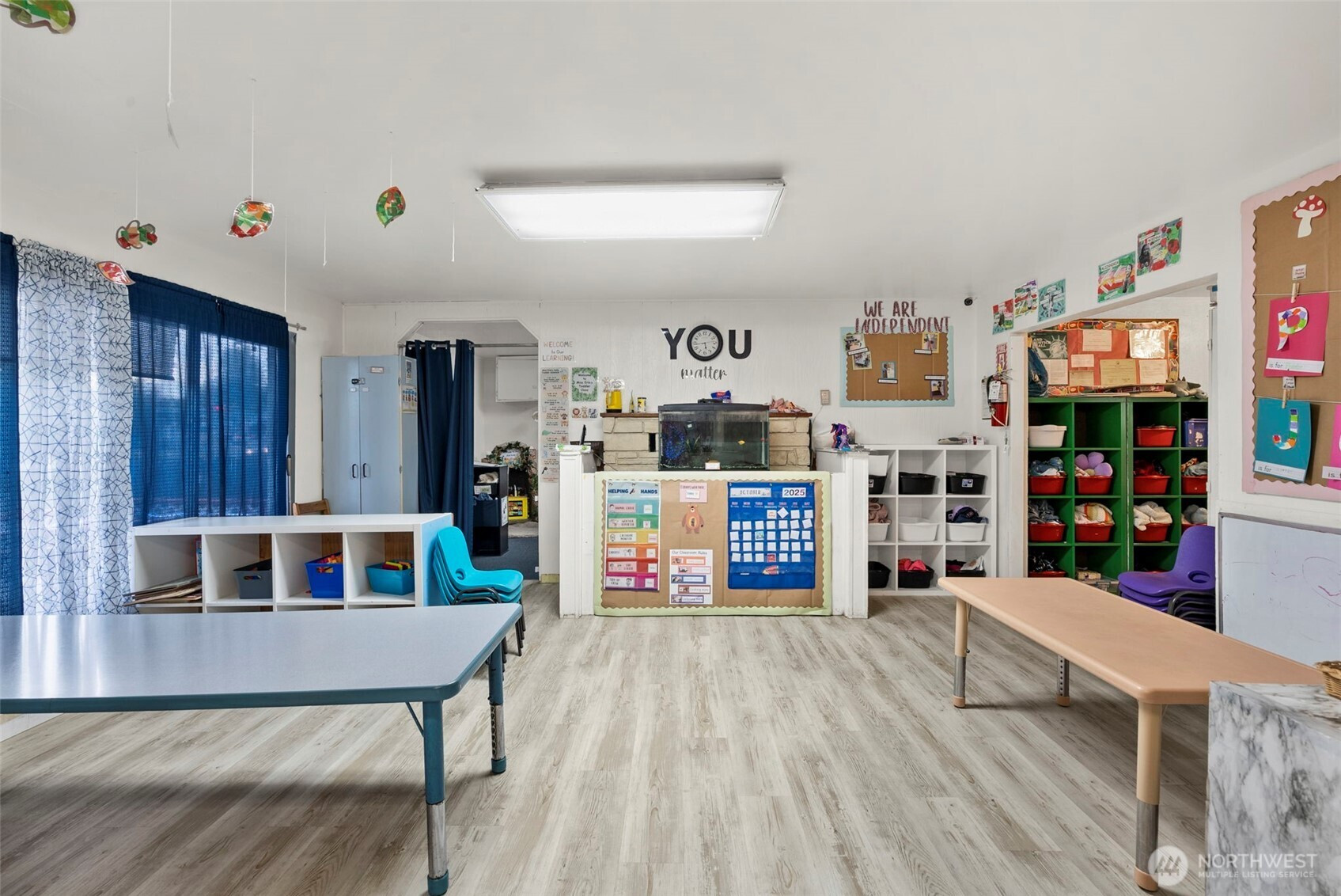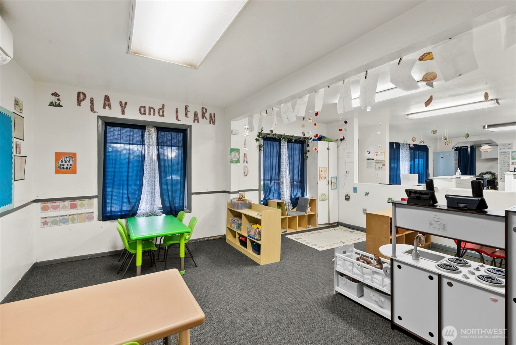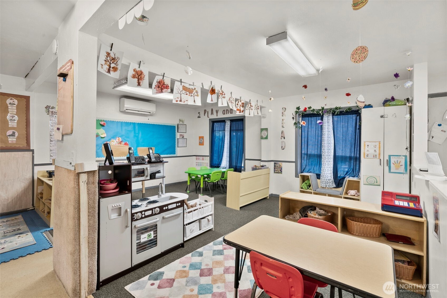 Charming Daycare Opportunity! This fully-equipped daycare facility includes both the building and a spacious shop on a large lot, complete with a playground. The interior features multiple bright and cheerful learning areas, a fully functional kitchen, and a convenient laundry room. Outside, the fenced yard offers a safe play space. This is a fantastic turnkey business opportunity for anyone looking to invest in childcare. Don't miss out on making a difference in a thriving community!