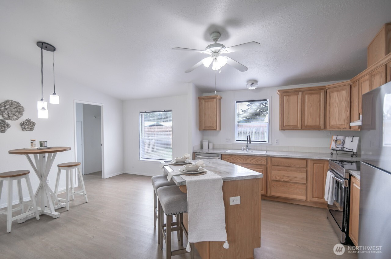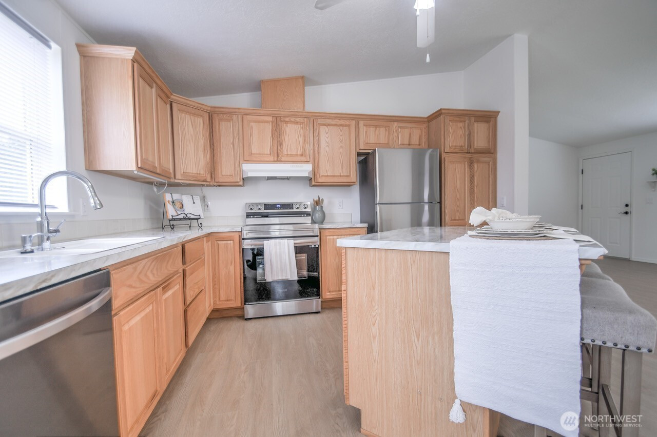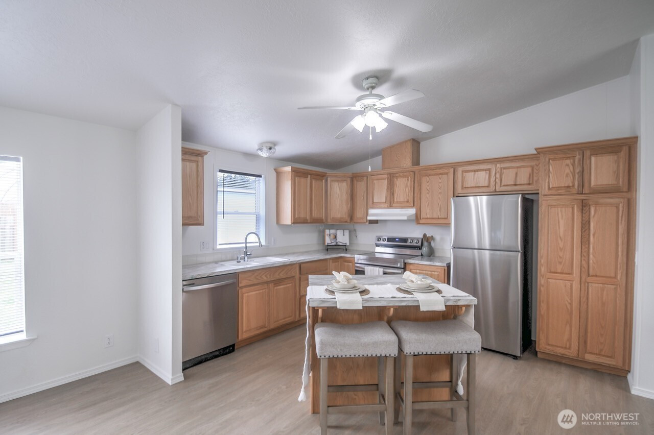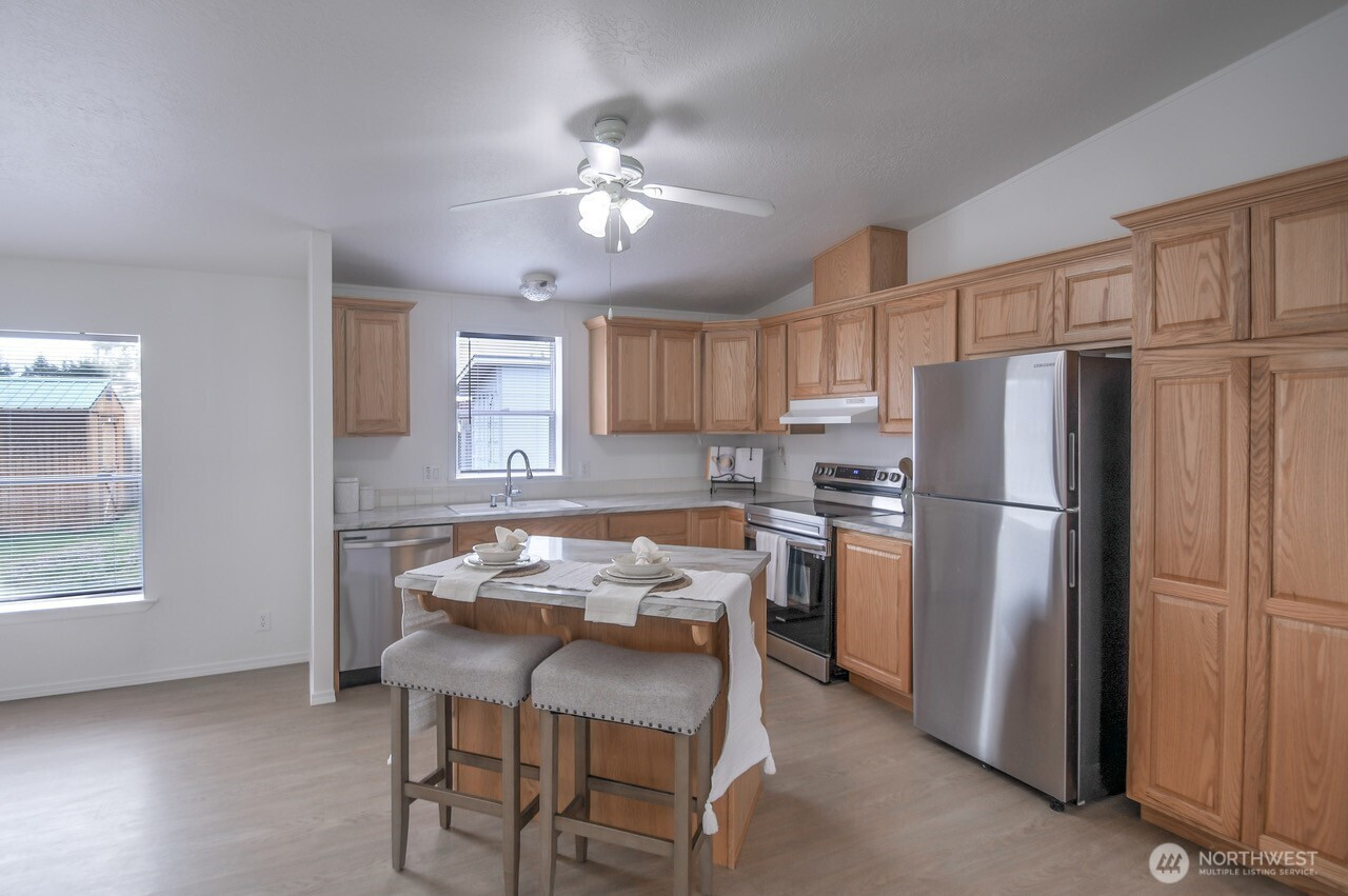 Welcome to this immaculate 3-bedroom, 2-bath manufactured home in Shelton, lovingly maintained by the same owner for 28 years. Fresh paint throughout, new door handles, updated appliances, new ceiling fans, updated light fixtures, and new kitchen cabinetry add a refreshed feel throughout the home. Outside, enjoy fresh landscaping, a fully fenced yard, plus a shed and storage container for added flexibility and function.