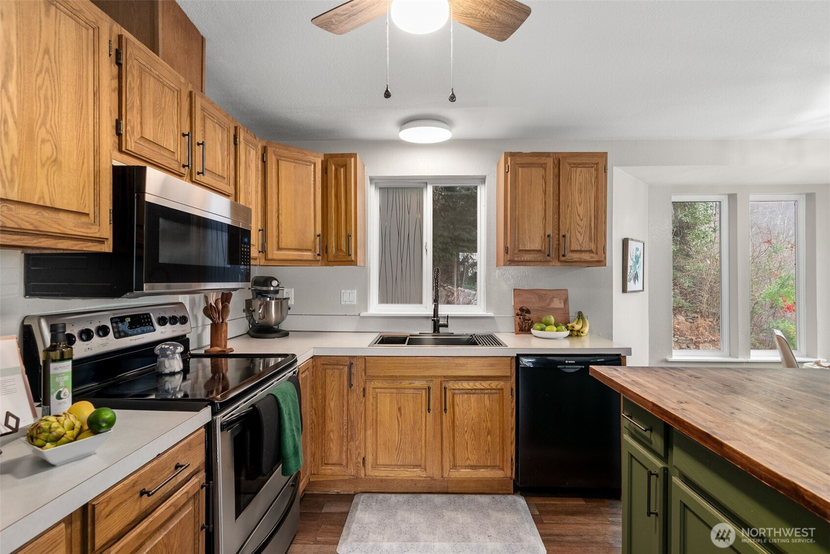 Beautifully updated home in Belfair! Surrounded by the beauty of the Pacific Northwest, this 3 bedroom + bonus room sits on a shy half acre at the end of a dead end street for additional privacy. Well-designed, open concept layout with updates throughout, including gleaming luxury vinyl plank flooring throughout, new lighting and a super chic kitchen with spacious island. Newer roof and water heater (2020) for added peace of mind. Flexible floorplan with 2 bedrooms upstairs, and a den + one bedroom and full bathroom downstairs with its own private entrance, perfect for guests. Enjoy Summer BBQ's on the back deck, overlooking the fully fenced backyard. Super easy commute to the Shipyard, Amazon, and highways.