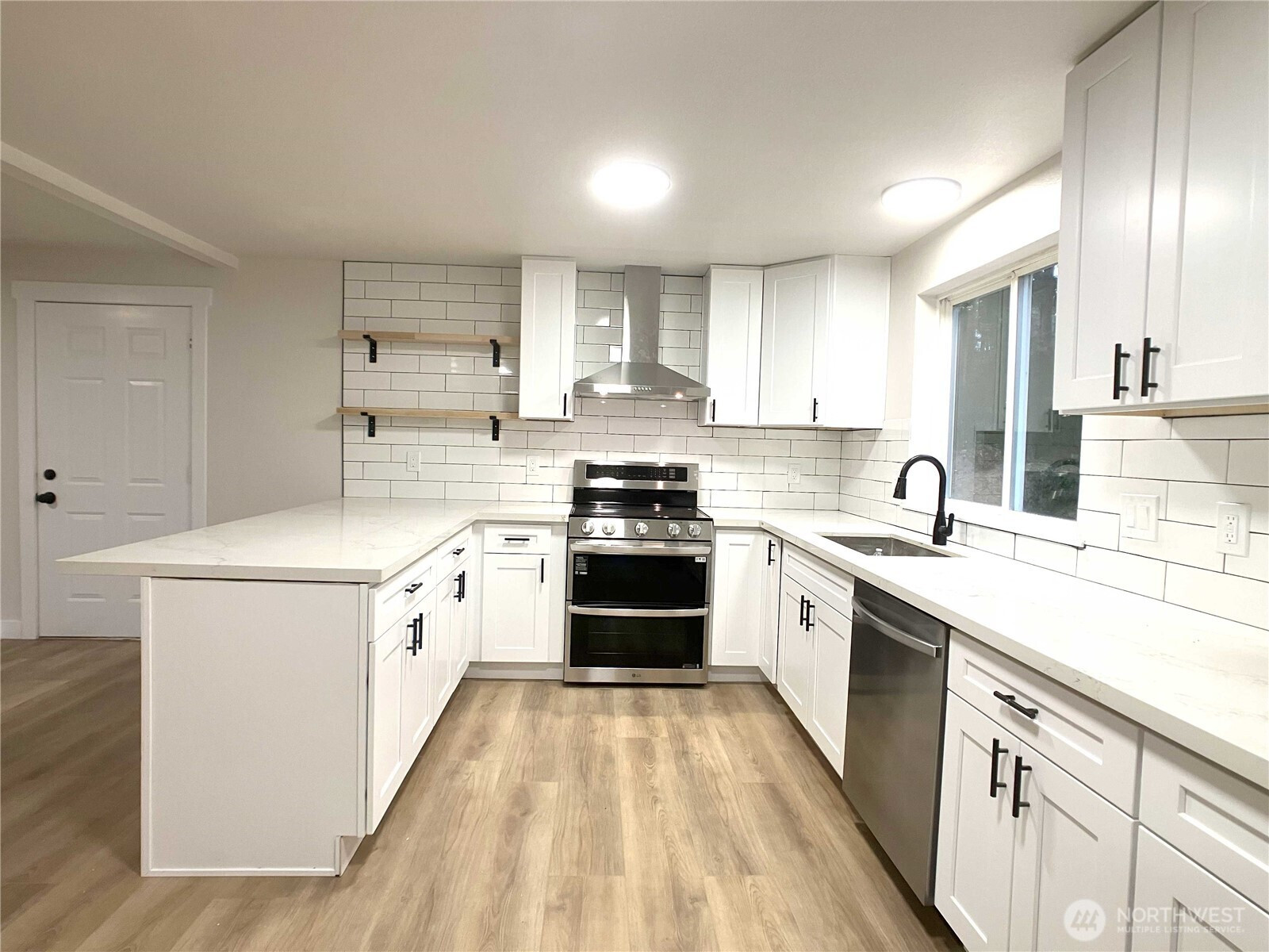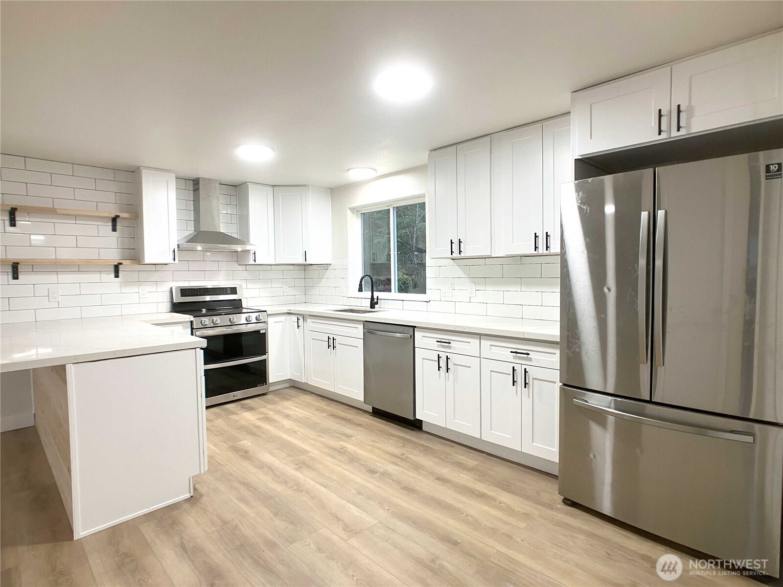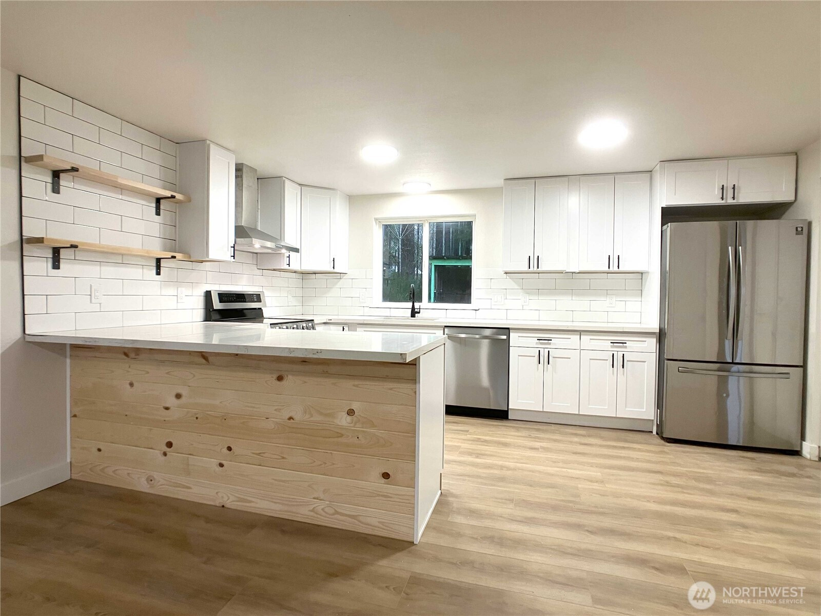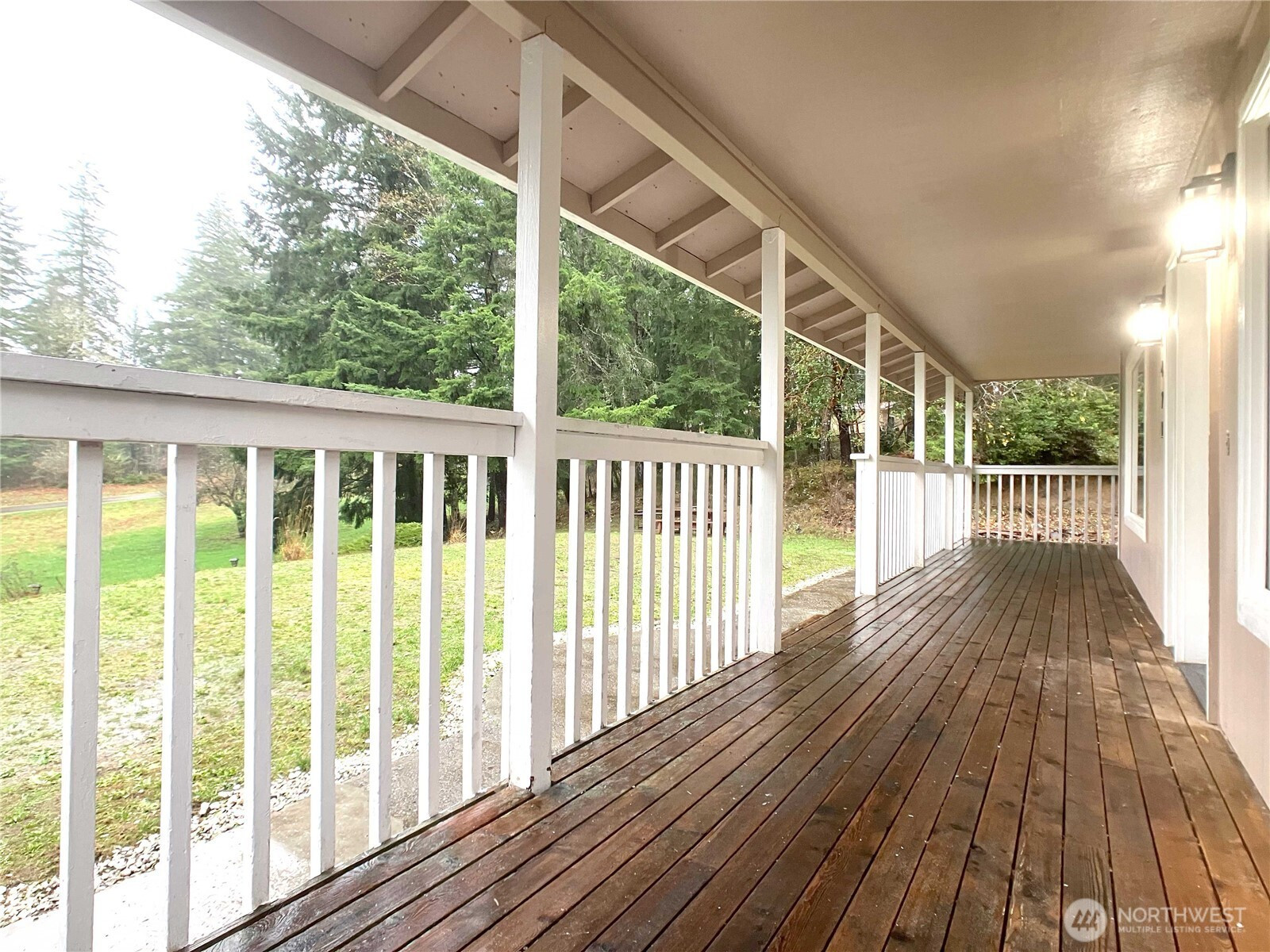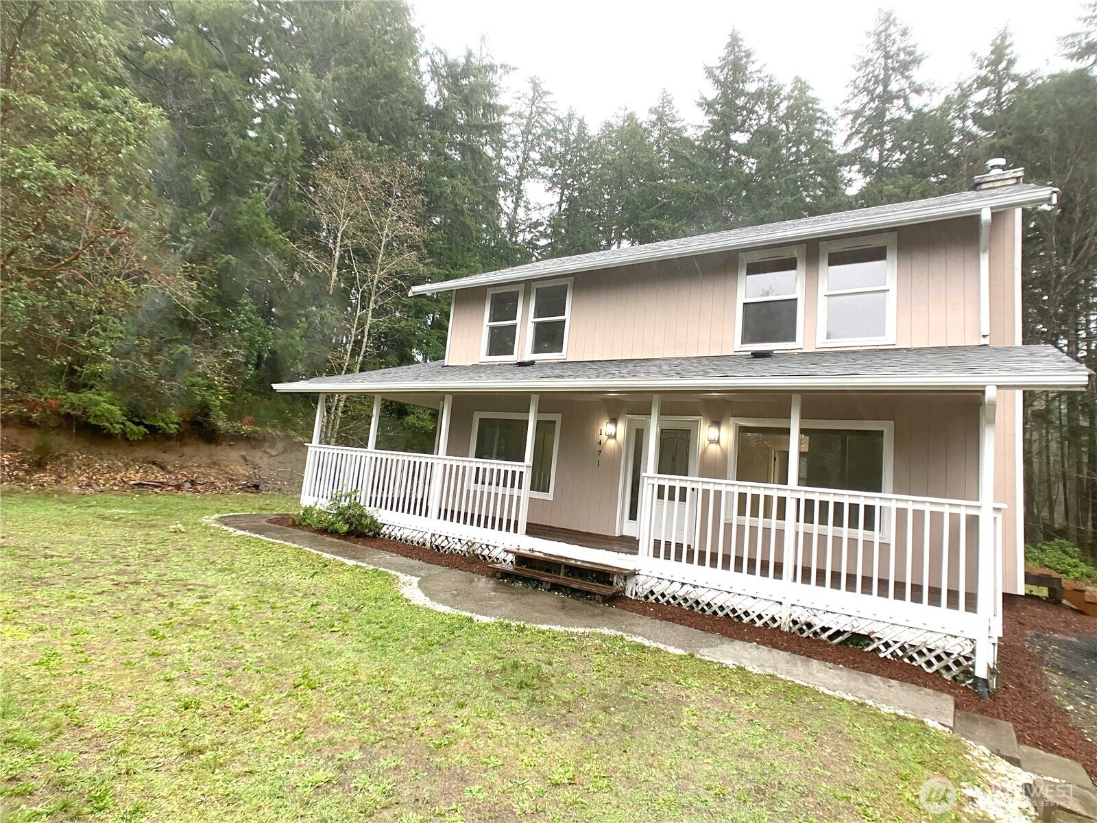 Updated 3 bed 2.5 bath home on 1.25 level acres!! New LVP flooring, trim, and doors throughout creates a seamless feel to the home. White shaker cabinets with soft close drawers/doors, quartz countertops, tile backsplash, and SS appliances in the kitchen. Wrap around covered porch is perfect for BBQs, entertaining guests, and relaxing in the evenings. Mini split on main level for energy efficient heating/cooling. Freshly painting inside and out. Newer roof. Mature trees surround three sides of the home for privacy with an open field in front: perfect for a garden, shop, etc (buyer to verify use with Mason County Planning). Plenty of parking for 3+ vehicles plus an RV.