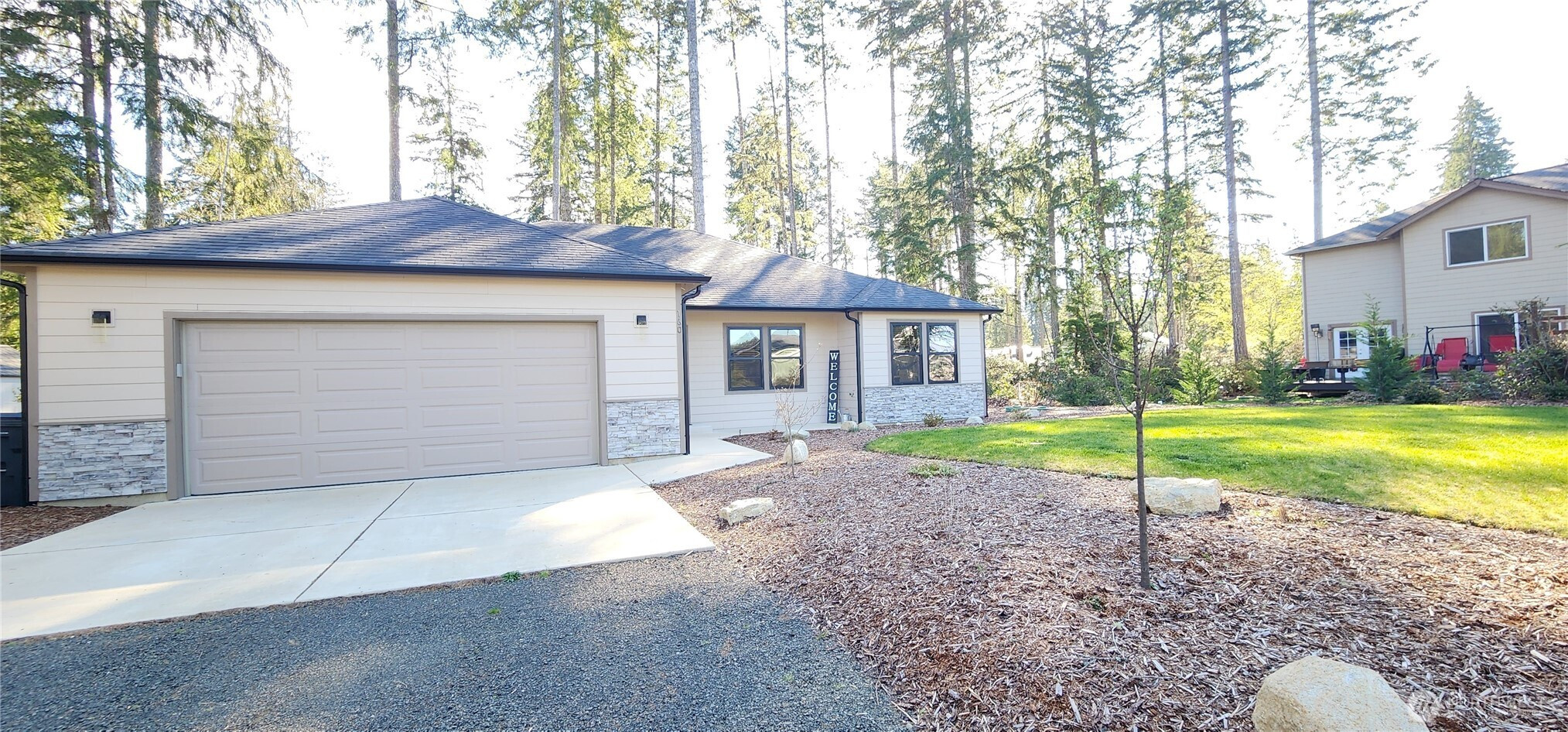 Nestled at the end of a quiet street in the highly sought-after Alderbrook Golf Community, this stunning 2024 home offers the perfect blend of comfort, style, and location. Spanning 1,490 sq ft, the thoughtfully designed floor plan features 2 spacious bedrooms, a large office with closet, and 2 full bathrooms. Step inside to an inviting open-concept layout filled with natural light, enhanced by vaulted ceilings and recessed lighting. The living room flows seamlessly into a chef-inspired kitchen complete with stainless steel appliances, a double oven, a generous island, and elegant quartz countertops—ideal for entertaining or everyday living. Enjoy views of the golf course and relax year-round on the covered rear patio, perfect for taking in the peaceful surroundings. The primary suite offers a luxurious 5-piece ensuite bath and a spacious walk-in closet designed for comfort and convenience. Quality craftsmanship shines throughout with custom tile work, refined finishes, and an oversized 2-car garage providing both function and style. HOA dues include unlimited golf for two (non-tournament), clubhouse access, tennis and pickleball courts at Wickiup Park, plus social activities at The Annex. Whether full-time living or short/long-term rental, this home delivers resort-style living at its best with access to Alderbrook Golf Course and amenities. Home can be turnkey and may include all furniture.