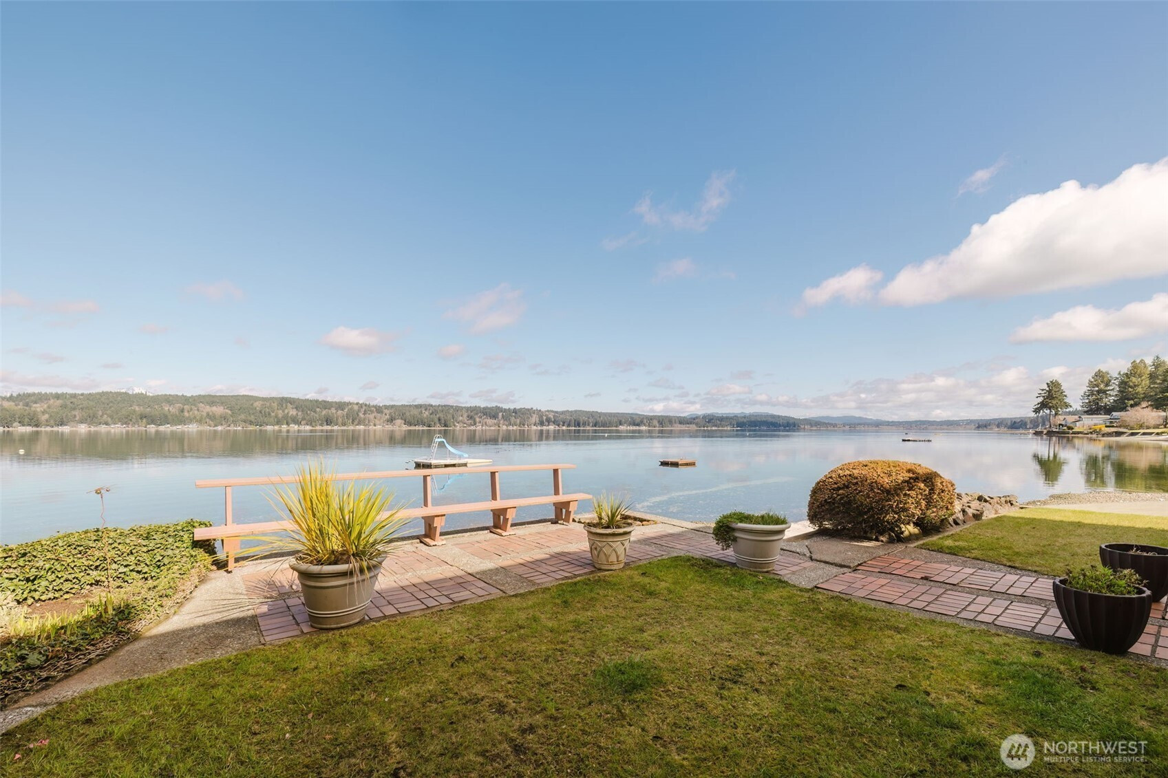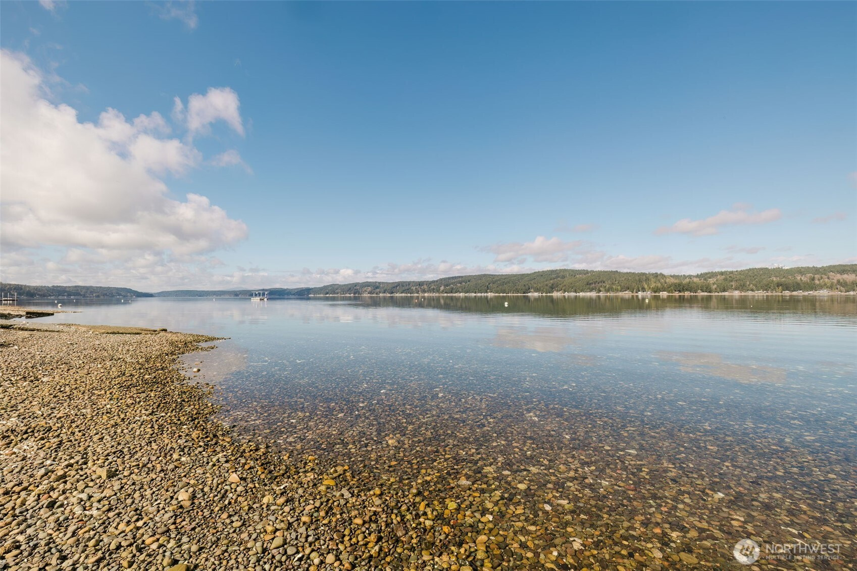 Presenting an exceptional waterfront retreat on the highly sought-after South Shore of Hood Canal in the Sunset Beach area. This property includes tidelands and an additional property across the street—ideal for extra parking, future shop, or storage. Enjoy sweeping views of Hood Canal, the Olympic Mountains, and breathtaking sunsets from nearly every room. The newer full-length deck is perfect for entertaining or relaxing by the water. Inside, walls of windows on both levels bring in natural light and stunning views, with sliders from each floor and the primary suite for easy outdoor access. The upper level features vaulted ceilings, a spacious living and dining area, and a well-appointed kitchen with abundant storage and brand-new appliances. Large laundry room includes extra refrigerator, freezer, and ample storage. The primary suite offers a sitting area, walk-in closet, and updated bath with double sinks and a large walk-in shower. Lower level includes a cozy family room with fireplace, two additional bedrooms, and a large workshop opening to an outdoor covered cooking and shower area—perfect for beach days and storing boats or toys. Garage includes extensive storage and finished landing space. Shared boat launch with neighbor. Usable, low-maintenance yard. Newer roof, furnace, and heat pump. This home would be a perfect vacation home, Airbnb or a primary residence. Come see this legacy property! Just 3 miles from town!