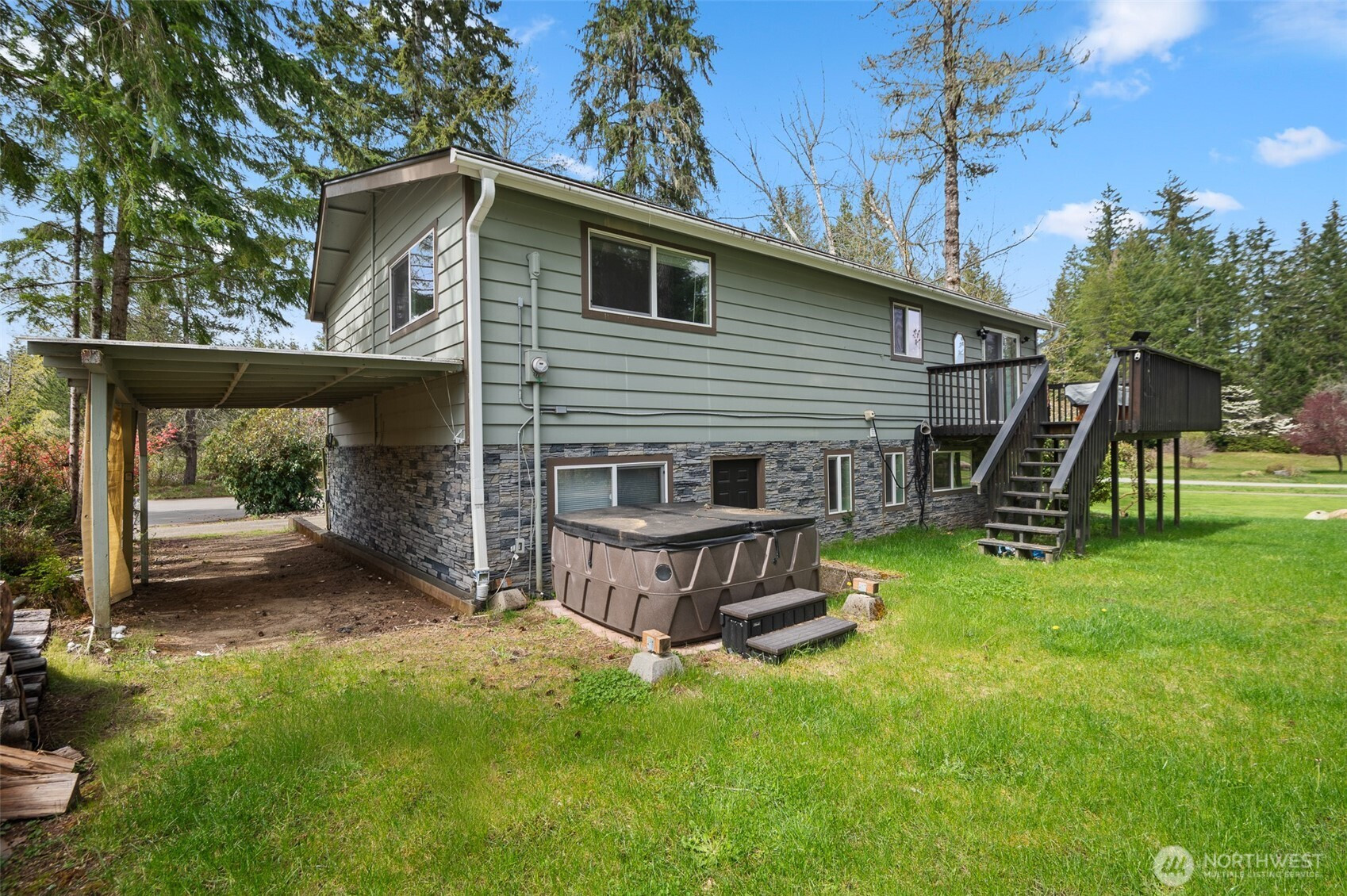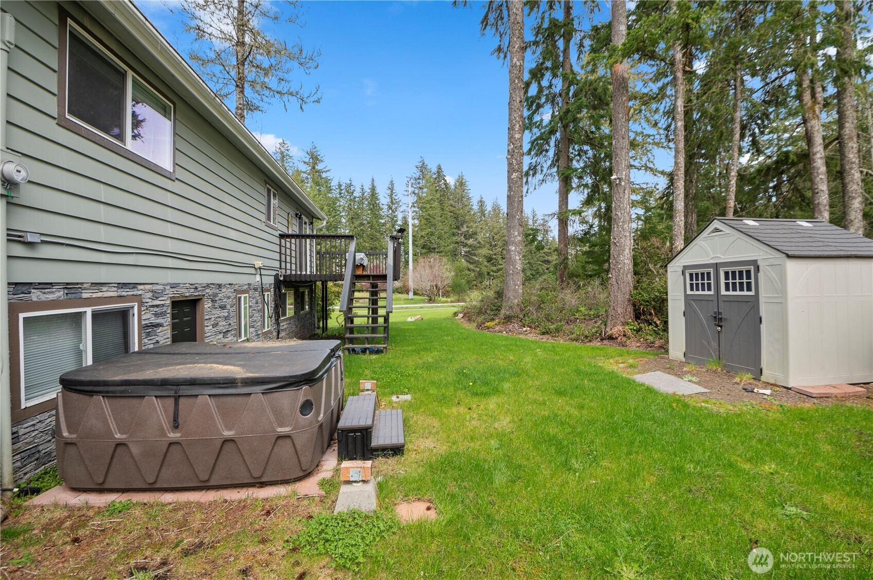 Positioned just off the 3rd tee box at Alderbrook Golf & Yacht Club, this updated home offers comfort, recreation, and a setting that’s hard to duplicate. Tucked at the end of a quiet cul-de-sac, the property enjoys a peaceful feel with scenic fairway views and front-row golf course positioning. Stone accents add curb appeal, while mini-split heating and cooling provide efficient year-round comfort. The light-filled main level features inviting living spaces, two spacious bedrooms, and a seamless connection to the expansive deck off the kitchen—perfect for outdoor dining, entertaining, or relaxing above the course. Downstairs offers exceptional flexibility with a large second living room, game room with pool table, half bath, utility area, and an additional room ideal for guests, office space, hobbies, or extra sleeping quarters. The oversized half bath offers room to add a shower for expanded functionality. Outside, enjoy warm summer evenings around the firepit, unwind in the hot tub, or take advantage of the generous yard space. A detached shed keeps tools and gear organized, while the attached garage plus covered carport provide excellent parking and storage. Alderbrook ownership includes access to an incredible lifestyle, including unlimited golf for two, plus nearby clubhouse amenities, trails, parks, and Hood Canal just minutes away. Whether you're seeking a full-time residence, weekend getaway, or golf retreat, this is one you won't want to miss!!