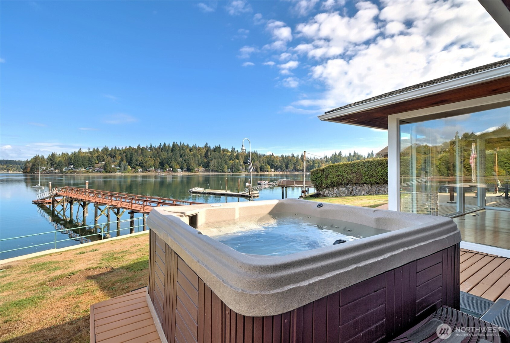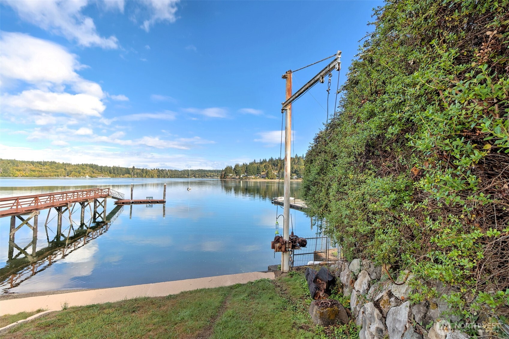 What a great spot to unwind. When you get here, you will be amazed by the feeling of being miles out of town, but how close to town it actually is. This house has been brought forward in all of the right ways. Updated kitchen and bathrooms. Really well cared for hardwood floors. Floor to ceiling windows that maximize the view of the water. There is a well appointed, fully self sustained ADU with kitchen, living room, bedroom and bathroom. Tons of covered parking in the 2 detached garages. and Everything leads to the water where there is a private dock, a great bulkhead and pea gravel beach. This is South Sound living done right. Make an appointment today to take a look, you will be happy you did.