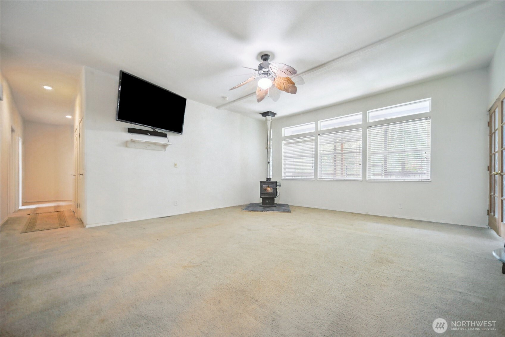 Enter through your private gate with a row of fruit trees on your left, driveway meanders through the property to the large 2688 Triple Wide. Custom home with ornate ceilings, wall of glass sliders leads into the living room with a wood stove, enter the dining room through the French doors and be amazed at the propane fireplace and elaborate kitchen. Large primary suite with a separate sitting area or office, walk-in closet and 5 piece primary bath. Newly painted interior and all new carpet this is move in ready. Outside you have a second dwelling with one bedroom and has 2 slides for your overflow of guests. Property has multiple cleared areas bring your imagination so much to think about. Close to Belfair and Twanoh State Park.