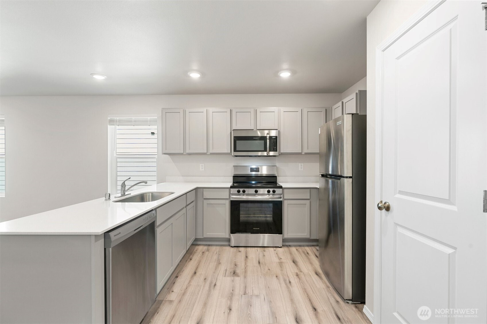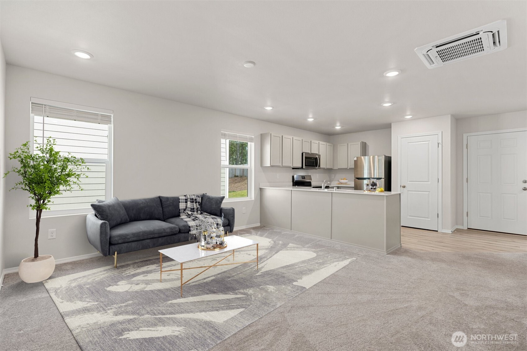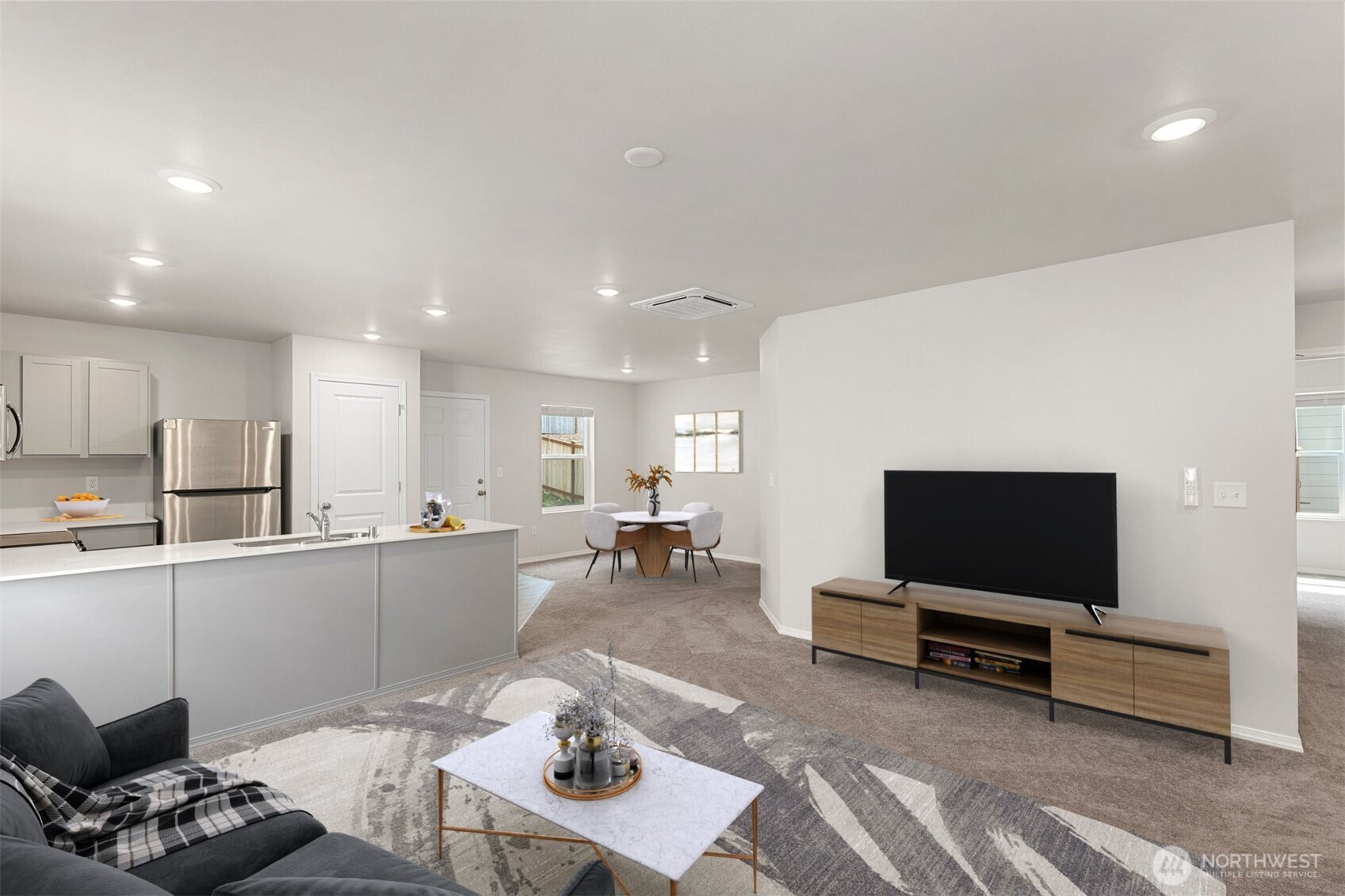 Still smells like NEW! This one-story home offers a large open-concept layout that seamlessly connects the family room, kitchen, and dining area, with easy access to the outdoor space. Perfect for entertaining! The primary suite is privately situated at the rear of the home and includes its own bathroom and a spacious walk-in closet. Two additional bedrooms offer comfortable, private spaces for family members or guests. Ask listing agent about assumable VA loan.
