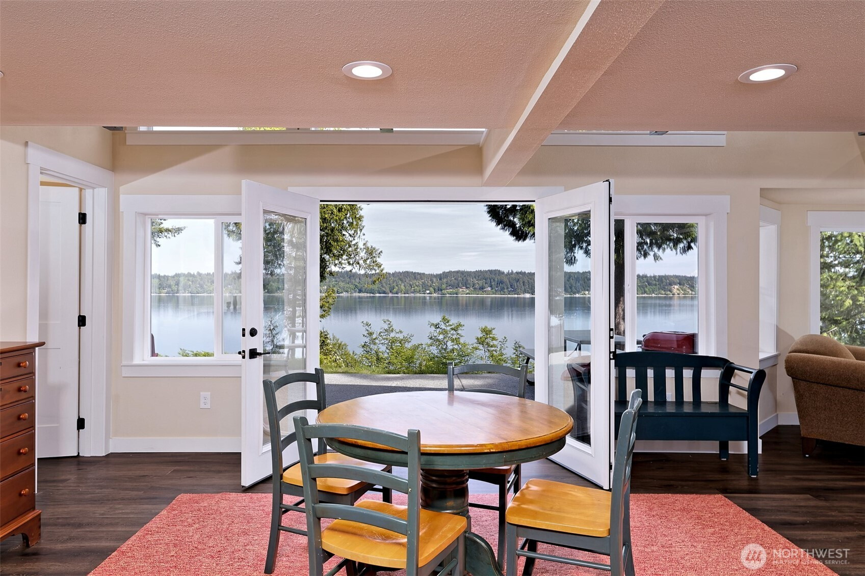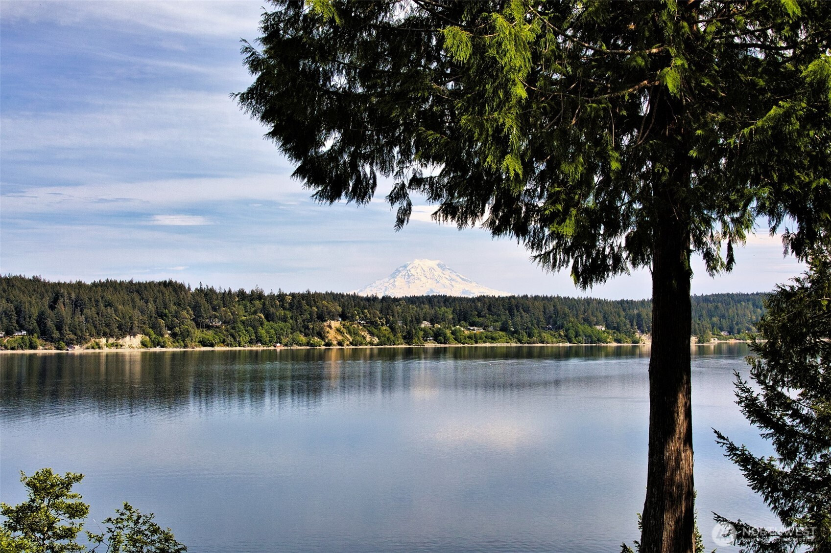 Tucked away on the tranquil shores of Stretch Island, this beautifully reimagined waterfront beach cabin offers the ultimate escape into relaxation & effortless living. Set on just over an acre of privacy, the retreat captures sweeping views of majestic Mt. Rainier & the peaceful waters of Case Inlet...worlds away from the everyday! An easy drive from Seattle or Bellevue, it's the kind of place you'll arrive Friday afternoon & instantly exhale. Completely remodeled from the ground up in 2022, the cabin blends modern comfort with timeless coastal charm & is offered turn-key with furnishings. Inside, an open-concept layout welcomes you with vaulted ceilings, expansive windows, & French doors that invite natural light & breathtaking scenery into every corner. The spacious patio is designed for pure enjoyment; a sunset barbecue or simply unwinding to the view of the water. A gentle trail leads to the beach, where summer days bring frequent orca sightings & opportunities for endless exploration. Included tidelands make clam digging part of your everyday lifestyle. Set in a quiet, friendly enclave for a perfect blend of seclusion & convenience. Minutes to a public boat launch, Fair Harbor Marina, & Lakeland Village Golf Course—easy to enjoy boating, fishing, & recreation year-round. Short-term rentals allowed, offering flexibility for potential income. If you're seeking a relaxing getaway or an investment opportunity, this rare island gem delivers waterfront living at its best.