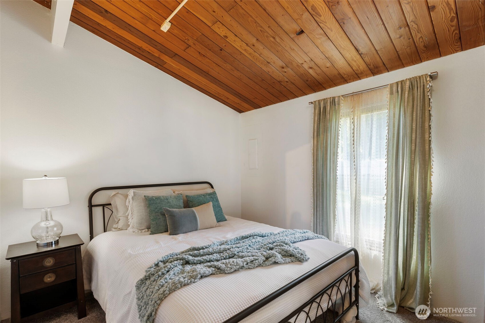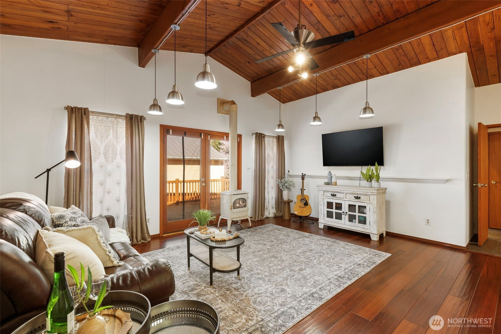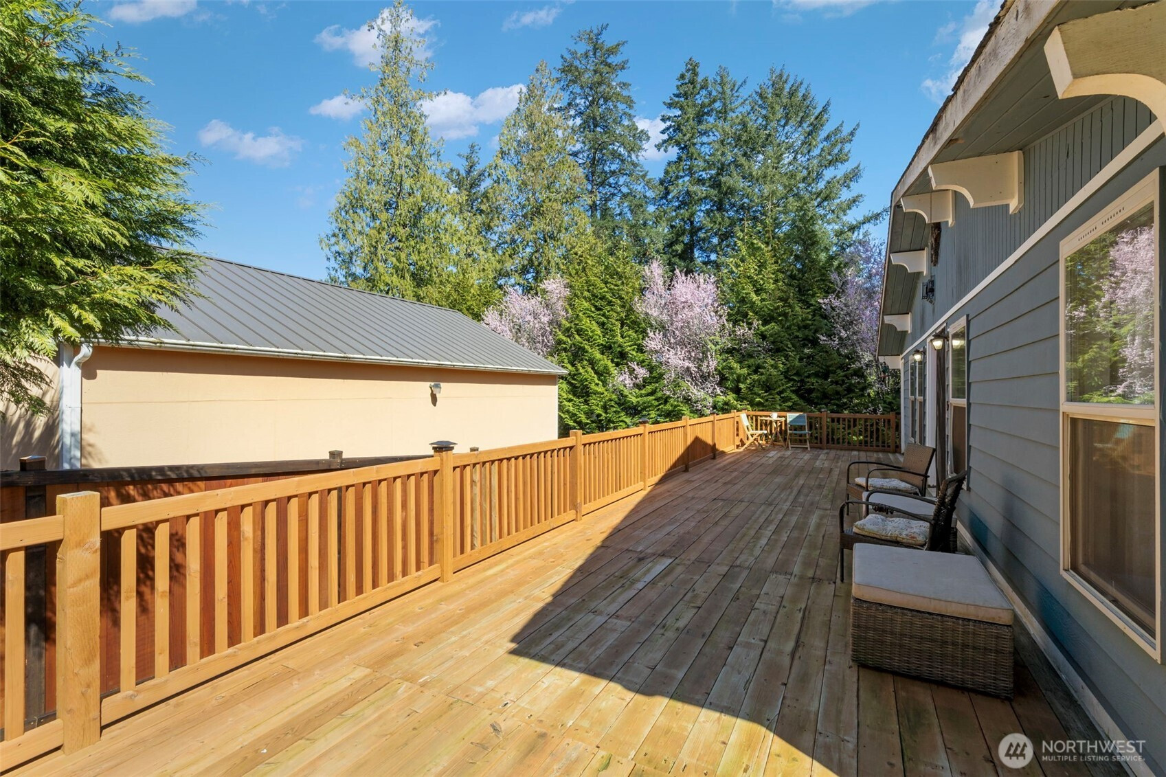 Beautiful 1 story home next to Mason Lake! This move-in ready, 3-bedroom home has everything you’ve been waiting for. Spacious living area with vaulted ceiling, free standing stove and French doors leading to the large back deck. Modern kitchen with Stainless Steel appliances and dining area. Primary bedroom with attached full bath and door leading to the back deck. Two additional bedrooms, 3/4 bathroom and utility room. Enjoy the large fully fenced backyard, attached 2 car garage, plus 1120 sqft detached garage, RV parking and a circular driveway. This home has it all!