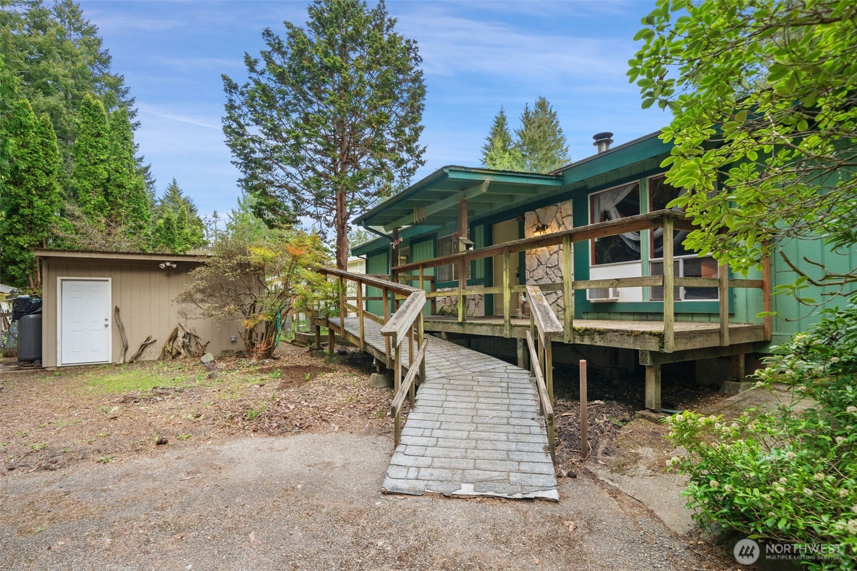 Take a look at this great fixer opportunity in the gated Fawn Lake Community. 1272 sf, 3 bedrooms, (primary includes a 3/4 bath), great room, kitchen, woodstove and baseboard heaters. Roof was replaced around 2014. Laundry room has leaked in past causing damage. Some kitchen cabinet doors missing, various electrical covers missing, needs new flooring and paint. Some wall/door damage due to wheelchair use. Old doggie door in primary bedroom was covered due to water leaks. Corner lot, covered porch, detached garage/shop, 12x16 shed with lights/electricity. Fawn Lake has parks, cabana, horse shoe pits, swimming, stocked fishing, tennis & basketball courts. No gas motors on lake. HOA dues are $1450 per year and includes water. Call your Broker for a showing to access inside gate.