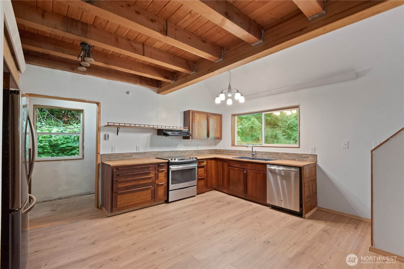 Where nature whispers and comfort answers, this rare Dow Mountain retreat invites you home. Nestled on 6.44 wooded acres behind a secure gate, this 2012-built cabin blends rustic charm with modern convenience. Inside, you’ll find a thoughtfully designed retreat w/ soaring ceilings, reclaimed ship cabinetry, butcher block counters, and a cozy, nature-inspired vibe. The stone-surround soaking tub, framed by a wall of windows, turns your daily routine into a forest-view spa experience! Outside, a year-round stream winds through the property, with space to gather, relax, and breathe in the mountain air. With full electric, private well, septic, & high-speed internet, this is a truly one-of-a-kind escape - secluded, yet within reach of the city.