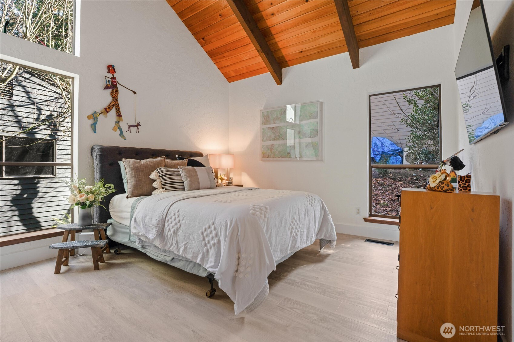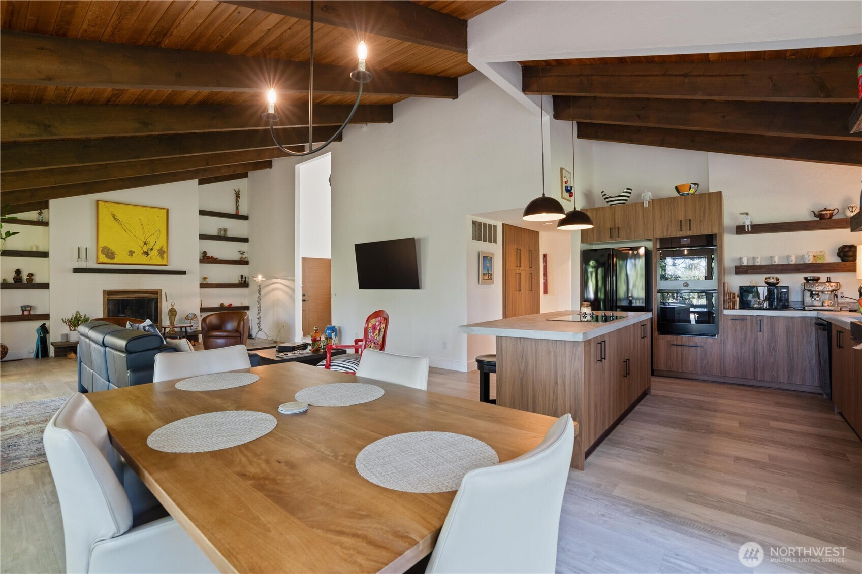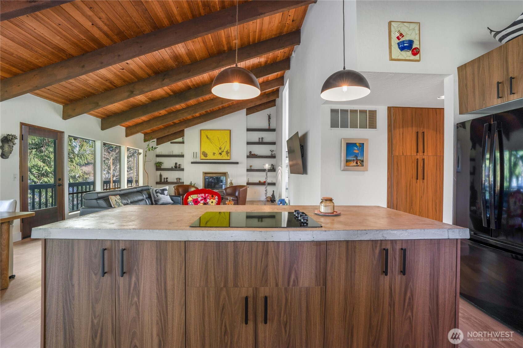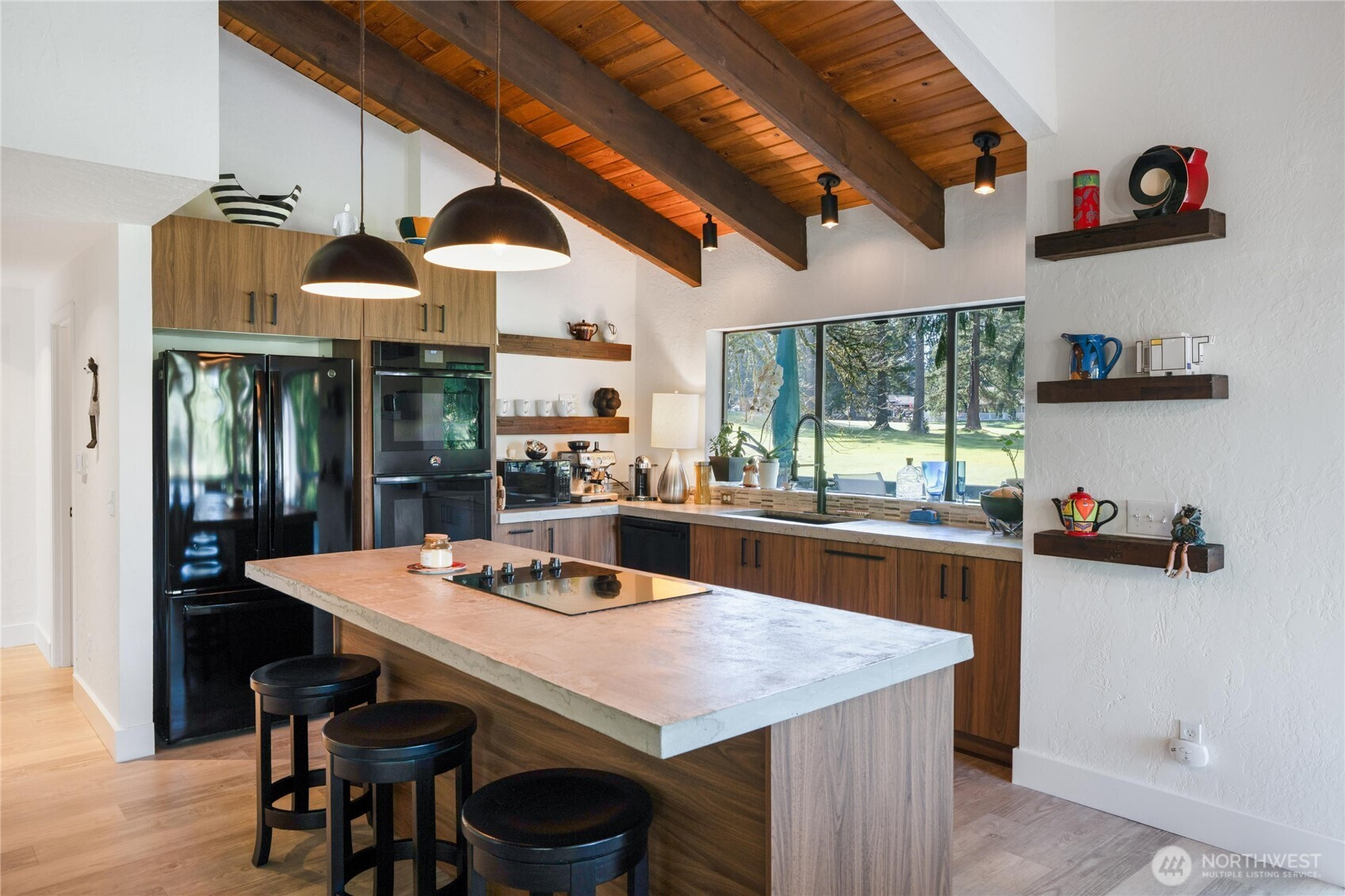 Experience Golf Course living at its finest. This 3644 sq ft tri level home thoughtfully laid out for entertaining is perfectly positioned on the 6th green of the community’s 27 hole PGA golf course . Designed to impress , this 3 bed , 3 bath home with Primary on main ,showcases breathtaking architectural character with exposed interior timber beams flowing through souring vaulted ceilings and expansive windows that frame sweeping golf course and lake views right from your backyard.Enjoy The oversized deck with plenty of room for entertaining and relaxing while watching golfers! The designer kitchen is built for both entertaining and everyday living, featuring concrete countertops, double ovens, and generous workspace, seamlessly connecting to bright and inviting living areas.Upstairs is an adorable loft that can be anything from an office space, reading area or whatever you see it to be! The lower level offers incredible flexibility with separate living quarters — complete with private entrance, full kitchen, living area, bedroom, bath, and bonus room — ideal for multi-generational living, guest accommodations, income potential, or Airbnb opportunity. Enjoy peaceful outdoor living overlooking manicured fairways, plus the convenience of an oversized garage with ample storage for vehicles, golf carts, or hobbies. A rare opportunity to own a spacious golf course home combining luxury, versatility, and unforgettable views.