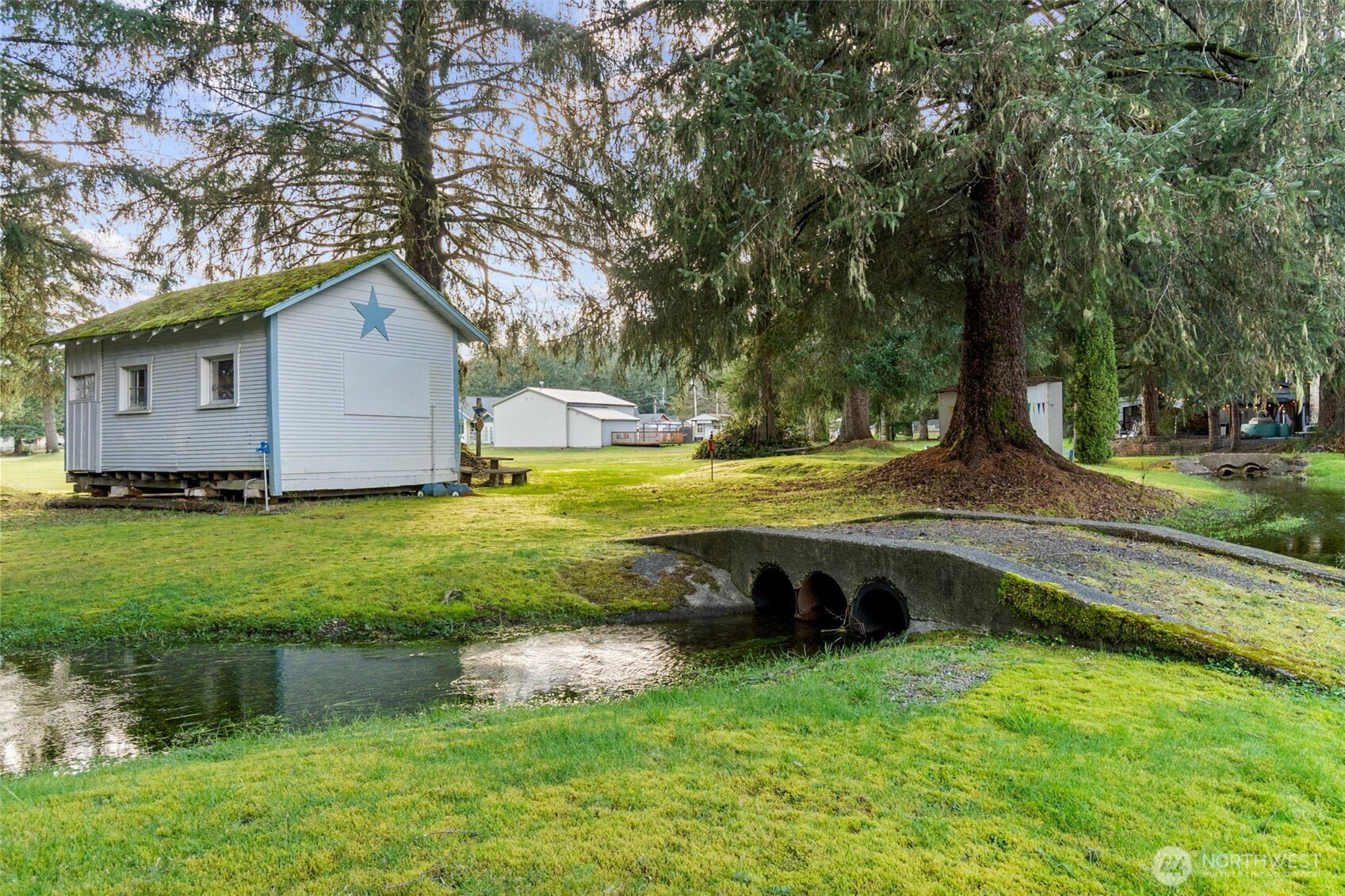 Create your own private getaway or build your dream home in the desirable Star Lake community. This property is ready for enjoyment now and/or future development, featuring a newer custom tiny outbuilding complete with a ¾ bath, refrigerator/freezer, washer, dryer, utility sink, and tankless water heater. Three RV hookups with power and water offer flexibility for guests or extended stays. There's an RV sanitary dump onsite and the two storage containers provide ample storage. A 3-bedroom septic system is already installed along with power and water, giving you a head start on building. Enjoy a view of Star Lake and easy access to community amenities, including a stocked lake (Star Lake is a nonmotorized lake), golf course, and playground. HOA dues are $495 per year and include water. Conveniently located a short distance to Schafer State Park, the Satsop River, Shelton, and Olympia — offering recreation and town amenities within easy reach.