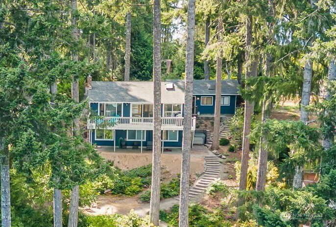 Lake Life is calling on gorgeous Hood Canal! THE Quintessential Lakehouse with a fresh $100,000 remodel is ready for relaxing Summer days on 75’ waterfront w/private pebble beach, rare boathouse & 2 docks. One of the largest, tranquil Lakes w/year-round trout fishing (73-acre, electric motor only, bring your pontoon). Cozy & inviting vibes: Solid cedar tongue & groove walls, crisp white quartz, subway tile! Designed for expansive, sparkling water VIEWS from every room through walls of oversized windows on both levels and a seamless connection to nature w/resident eagles. Mins to Alderbrook Resort & Spa and local seafood legends (Hama Hama, DeNotta, Tom Farmer, Union City Market, Hook & Fork). New modern amenities: Olympic Hot Springs 7-person Easy-Care hot tub (just cleaned w/new filters), cool A/C, fiber-fast internet, double pane windows/sliders, interior/exterior paint, dimmable LED, black-out blinds, oversized 2-car garage with shop space, paver steps to no bank lakefront. AND If you’re interested in reducing your expenses this home is awarded the TOP 5% of Mason County Vacation Rentals (Guest Favorite, 112+ 5-star reviews) GROSSING $212,000 in the last 4 years with $70k+ gross income renting 30% of the year. Quality getaway & investment opportunity only 10 min to growing DT Belfair, parks & golf, local shops/brewery/winery, hiking, recreation & optional Hood Canal Puget Sound beach club w/boat launch. Can sell furnished (sold separately). Adventure Awaits, Kayaks Ready!