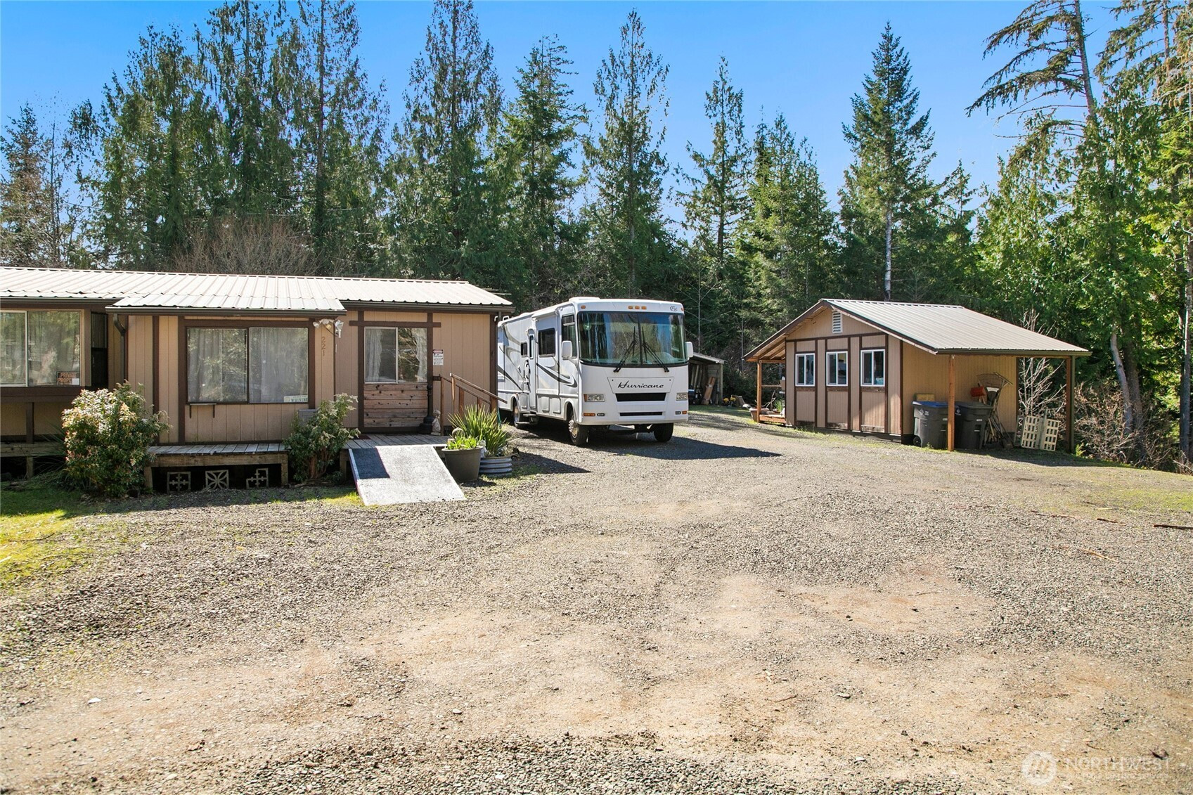 Welcome home and enjoy one-level living in this 3-bedroom home nestled on a .95-acre lot, backing up to forestry land for privacy and a peaceful setting. The home features a spacious kitchen that opens to the living room, complete with a large island breakfast bar, plenty of cabinets, and a built-in desk, ideal for cooking, working, and entertaining. Step outside to a private deck off the primary bedroom and enjoy a gardener’s dream with a greenhouse and a fully fenced garden, ideal for growing vegetables, flowers, or your favorite plants. The property also includes a 2-car garage, carport, RV hookup, and large shed/shop with front porch and power, providing plenty of space for storage, hobbies, or projects. Conveniently located near Fair Harbor Marina, local parks, shopping, and just minutes from Highway 3 for easy commuting.