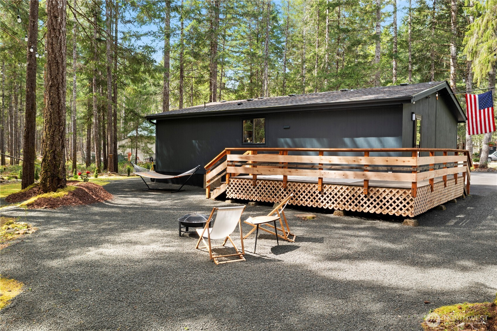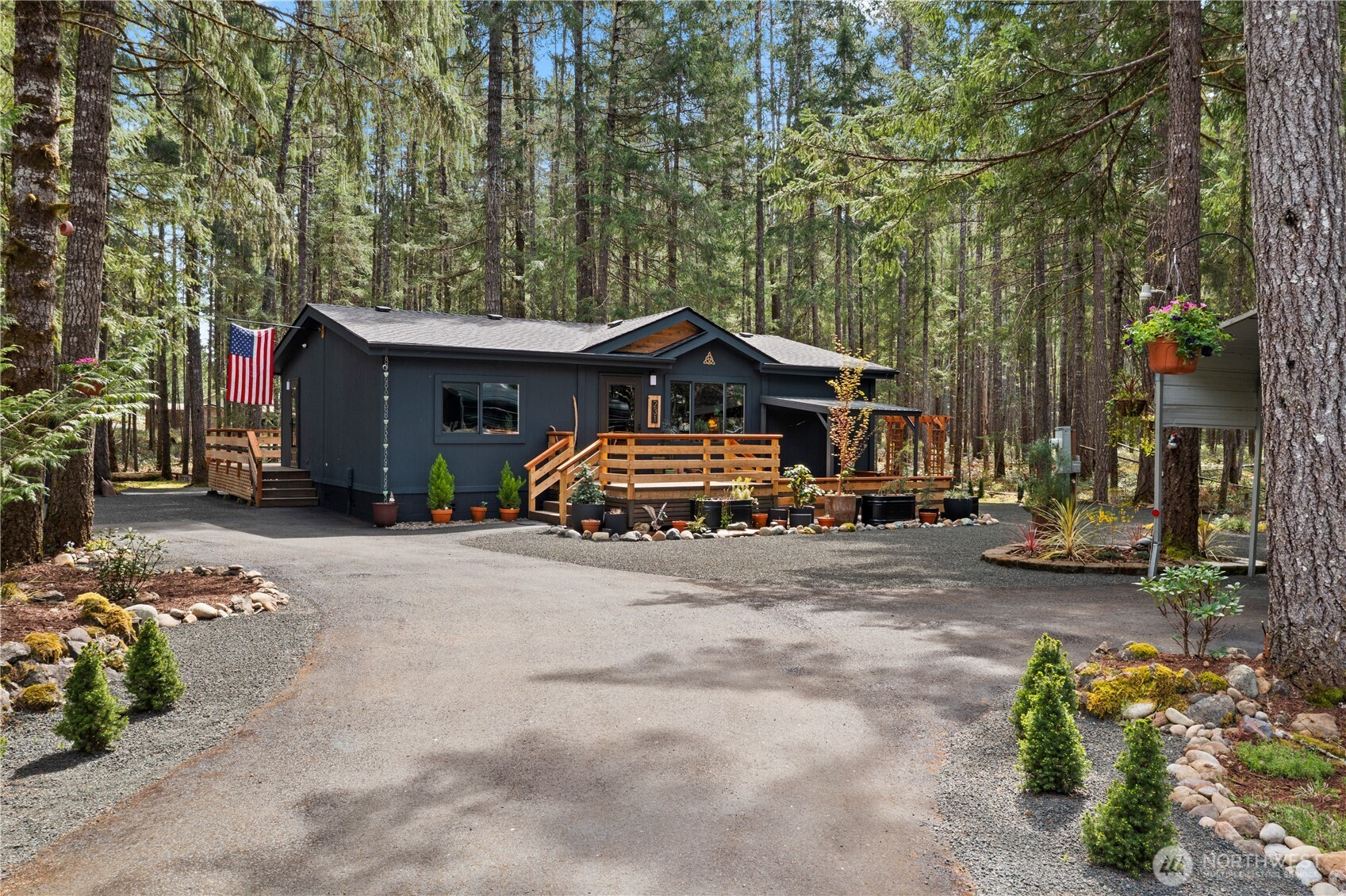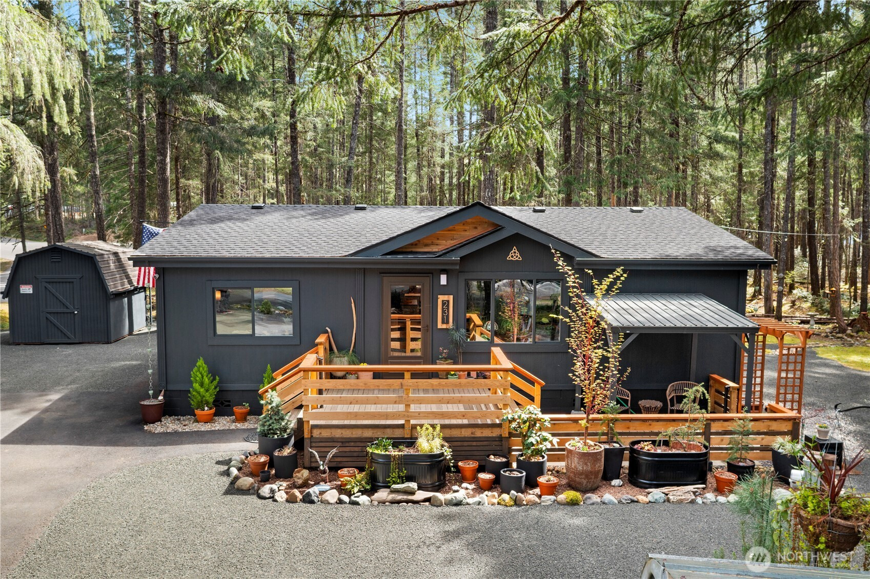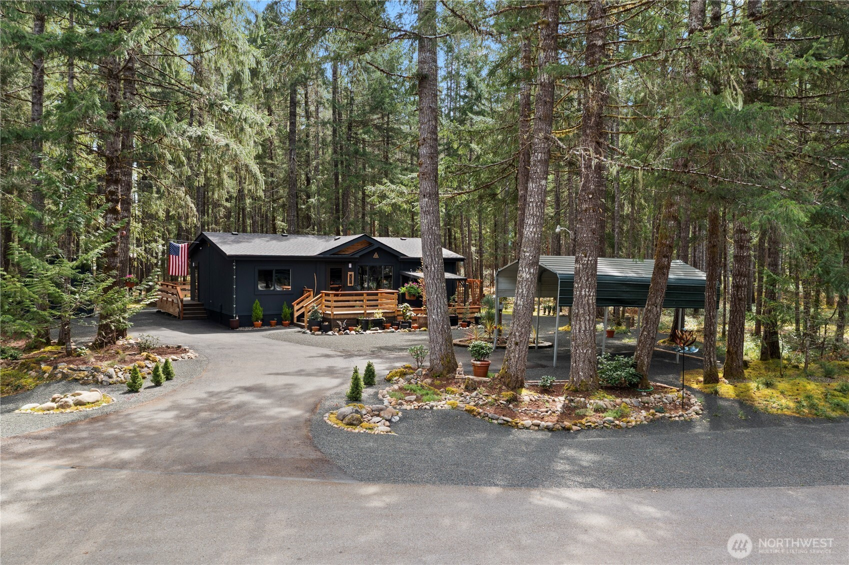 Welcome to a Lake Cushman retreat that feels lifted from the pages of a design magazine. Fully restored with care and intention, this 3-bed, 2-bath home has been transformed top to bottom with a new roof, fresh paint inside and out, updated surfaces throughout, and rebuilt outdoor spaces that make every arrival feel special. Set on a manicured corner lot near Lake Kokanee, the property backs to a greenbelt for added privacy and extra space. Towering evergreens, curated landscaping, winding pathways, and inviting gathering areas create a storybook setting where mornings feel peaceful and evenings under the trees are enchanting. Inside, the home offers a warm, unforgettable vibe—stylish, inviting, and hard to replicate. Rich colors, layered textures, and tasteful finishes give the space personality while maintaining comfort and function. The layout flows beautifully with generous living areas, a stunning kitchen, and private bedroom separation ideal for guests or everyday living. Step outside to expansive new decks perfect for entertaining, outdoor dining, or enjoying the forested surroundings. RV parking, outbuildings, and negotiable furnishings add flexibility and convenience. Located moments from Lake Kokanee and within the Lake Cushman community w/ parks, boat launches, golf, trails, & recreation nearby, this property would make an exceptional full-time home, dreamy weekend escape, or desirable vacation rental. A true turnkey experience you won't want to miss.