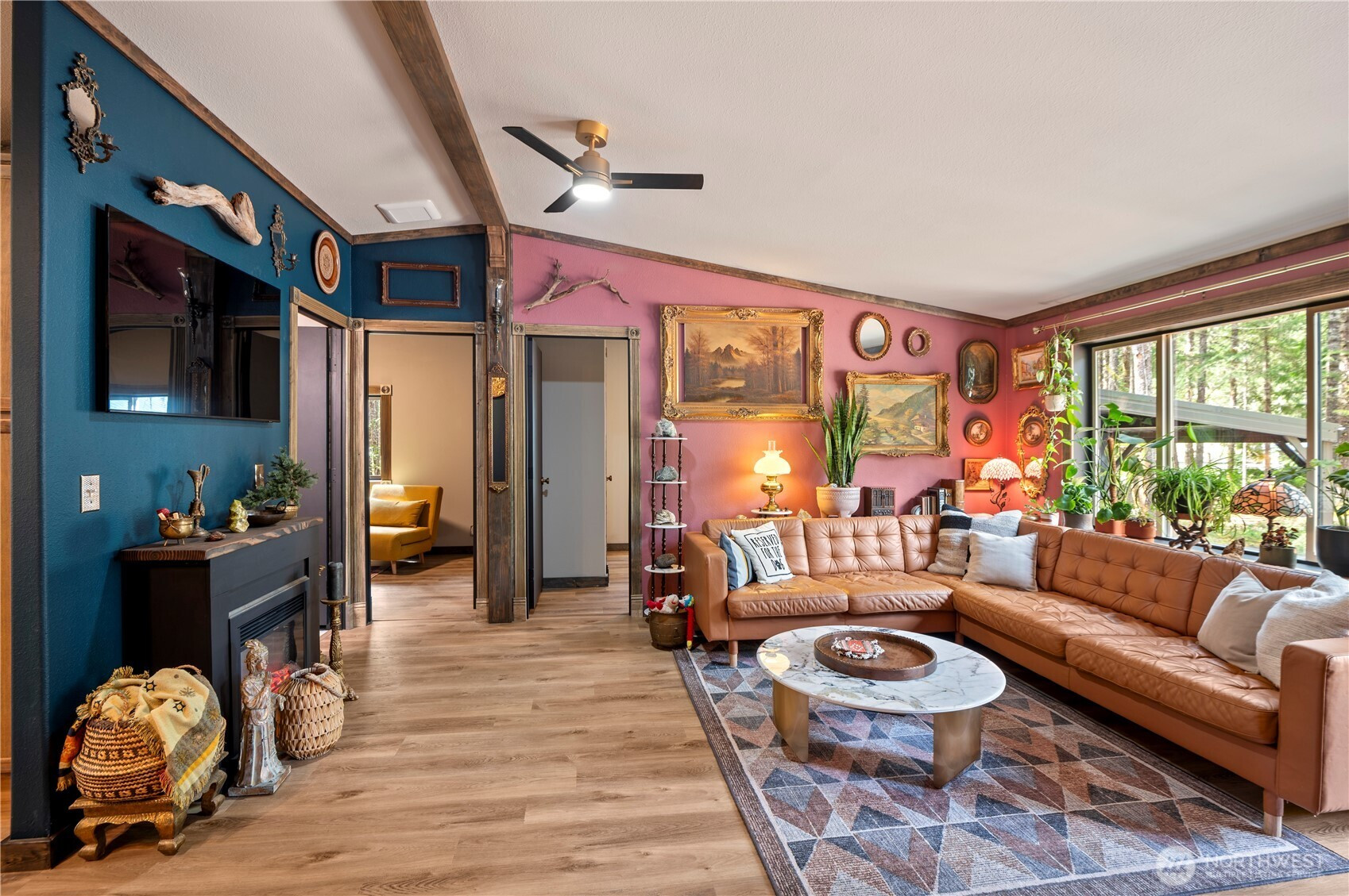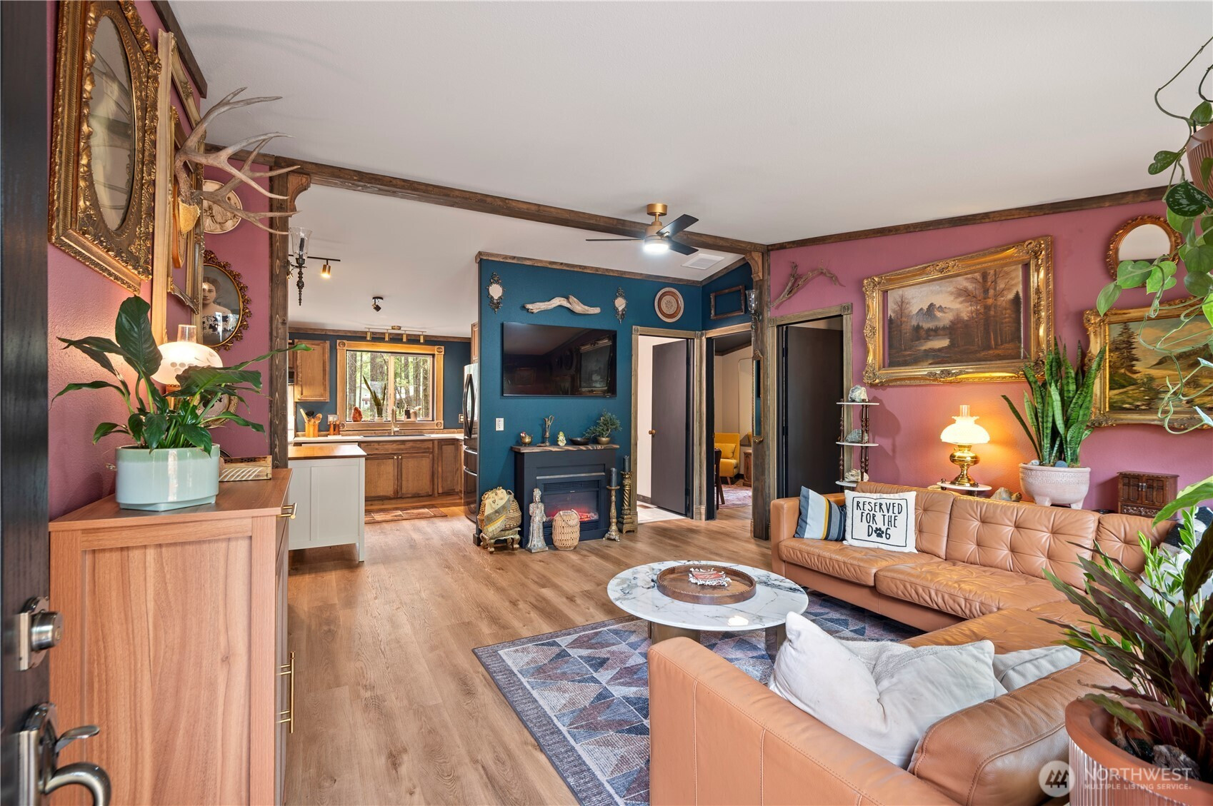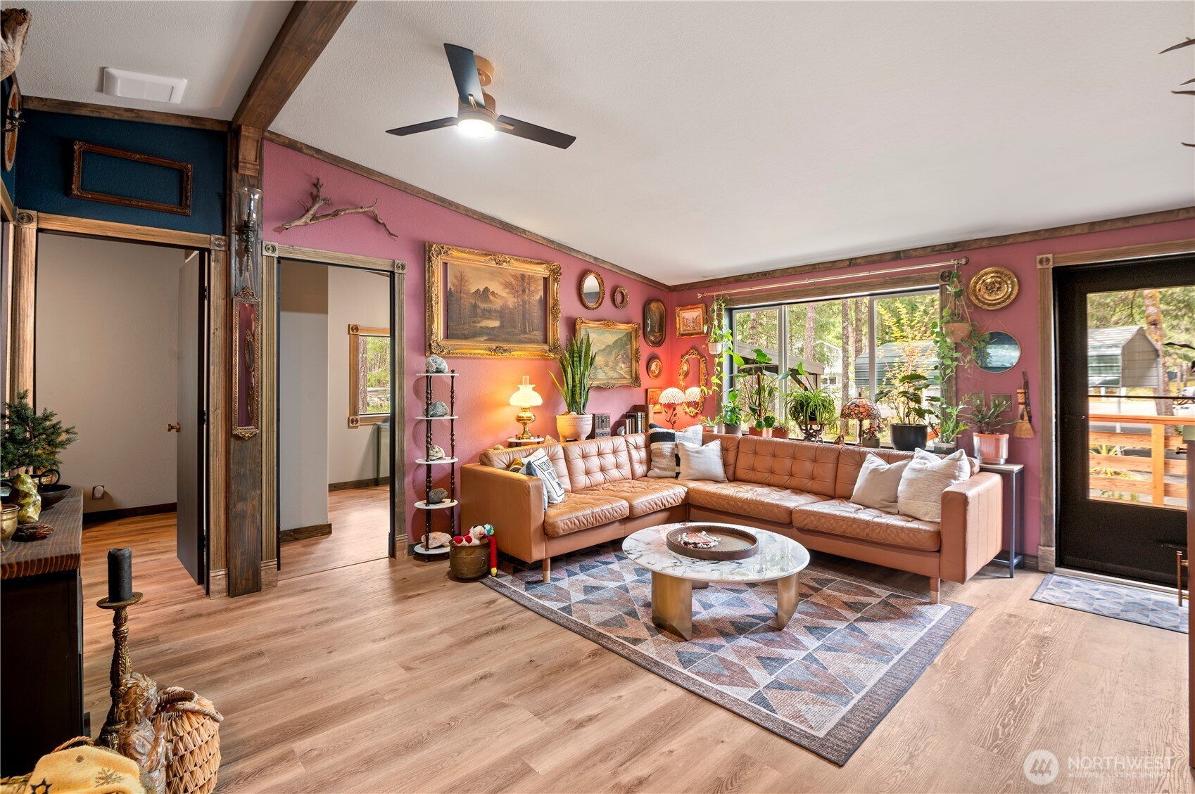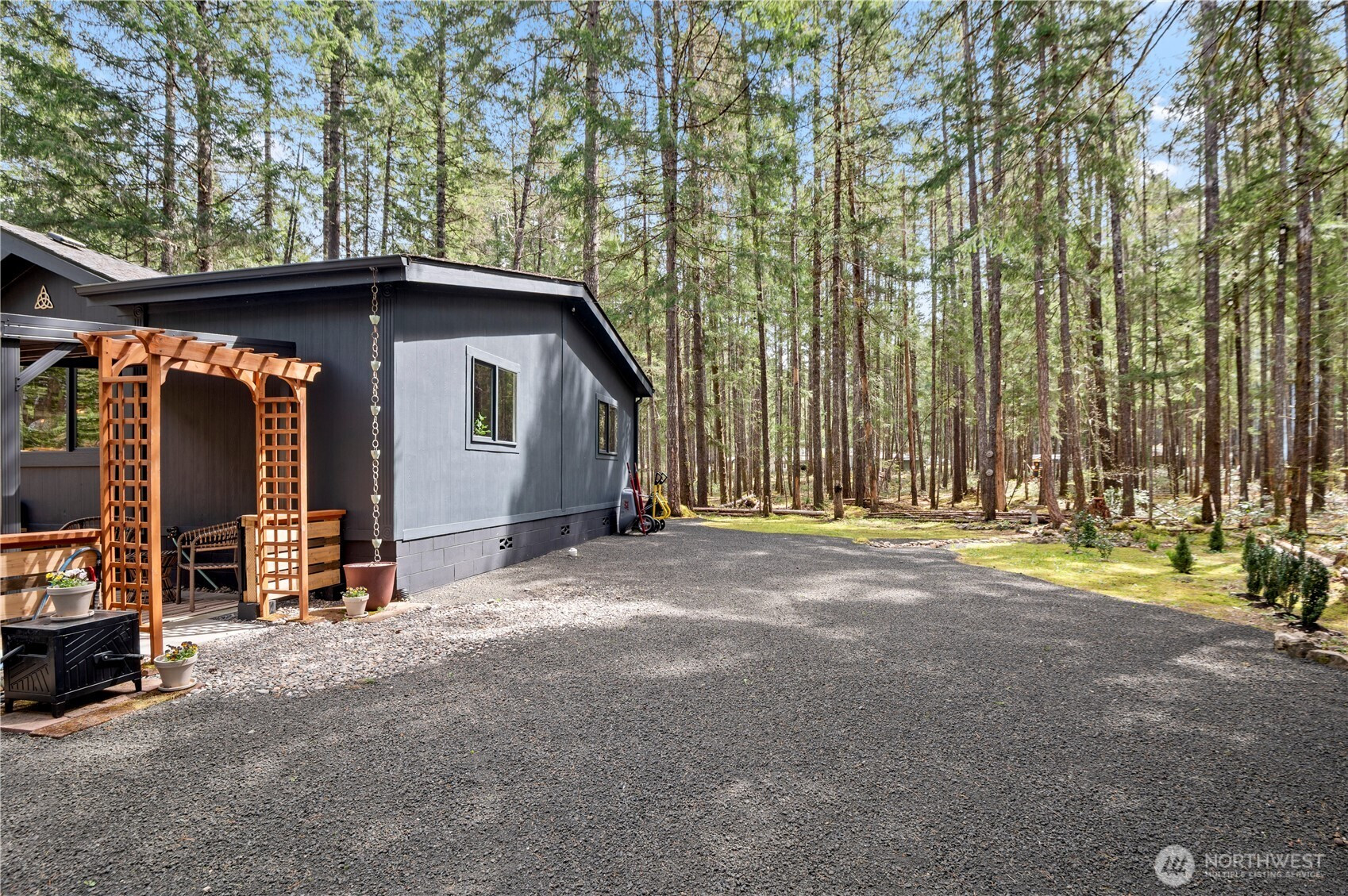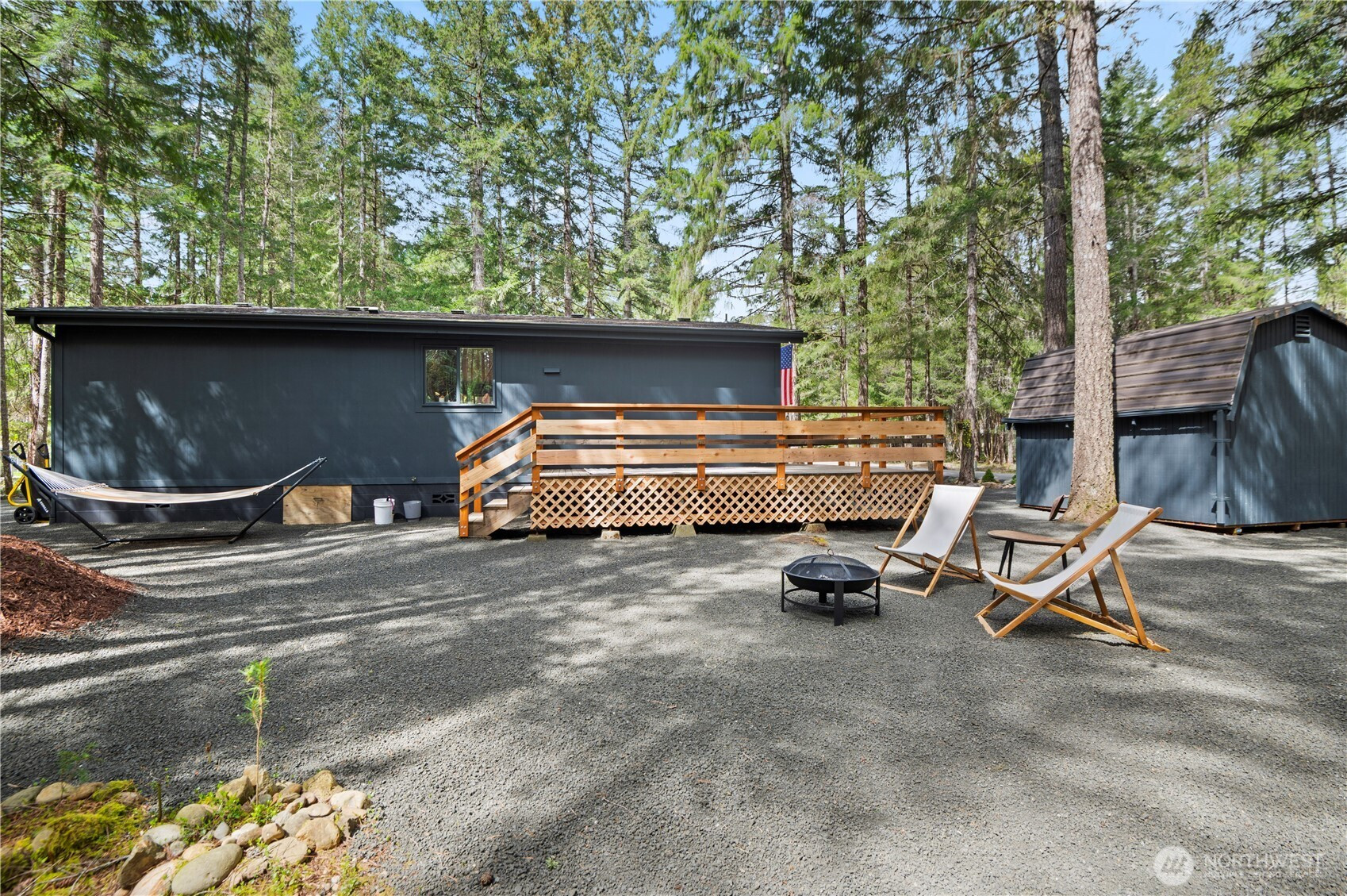 Welcome to a Lake Cushman retreat that feels lifted from the pages of a design magazine. Fully restored with care and intention, this 3-bed, 2-bath home has been transformed top to bottom with a new roof, fresh paint inside and out, updated surfaces throughout, and rebuilt outdoor spaces that make every arrival feel special. Set on a manicured corner lot near Lake Kokanee, the property backs to a greenbelt for added privacy and extra space. Towering evergreens, curated landscaping, winding pathways, and inviting gathering areas create a storybook setting where mornings feel peaceful and evenings under the trees are enchanting. Inside, the home offers a warm, unforgettable vibe—stylish, inviting, and hard to replicate. Rich colors, layered textures, and tasteful finishes give the space personality while maintaining comfort and function. The layout flows beautifully with generous living areas, a stunning kitchen, and private bedroom separation ideal for guests or everyday living. Step outside to expansive new decks perfect for entertaining, outdoor dining, or enjoying the forested surroundings. RV parking, outbuildings, and negotiable furnishings add flexibility and convenience. Located moments from Lake Kokanee and within the Lake Cushman community w/ parks, boat launches, golf, trails, & recreation nearby, this property would make an exceptional full-time home, dreamy weekend escape, or desirable vacation rental. A true turnkey experience you won't want to miss.