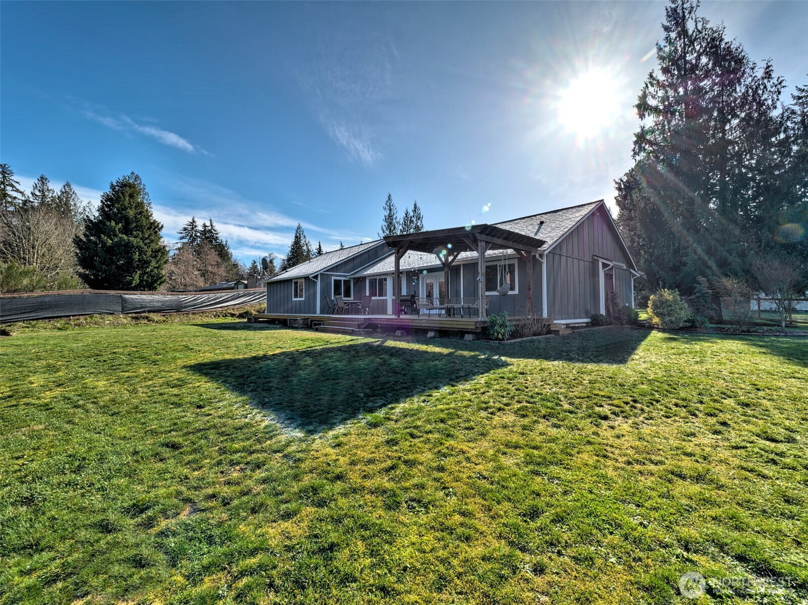 Enjoy the best of close-in country living on 1.09 acres with a seasonal peekaboo view of the Hood Canal & Olympic Mountains. Conveniently located near Hwy 3,shopping, schools, & areas beyond, this property offers easy access to everyday amenities while being close to countless recreational opportunities the PNW is known for.A custom fence welcomes you onto the property,defining the spacious grounds.Inside, this well-designed one-level home features clean lines,vaulted ceilings,fresh interior paint, & an open concept layout that feels bright & inviting. Durable laminate flooring runs throughout the main living areas,providing both style & easy maintenance.A spacious kitchen is the heart with granite countertops,a breakfast island, and plenty of workspace, flows seamlessly into the generous dining area that overlooks the backyard.An oversized great room offers plenty of space for gathering & entertaining, with French doors leading to the back deck where you can step outside and enjoy your private backyard oasis.A covered area on the deck makes outdoor living comfortable in every season and offers ample room for hosting friends, relaxing evenings, or summer barbecues. The home features three bedrooms, including a spacious primary suite with its own en-suite bath, creating a comfortable retreat at the end of the day. A covered front porch, two-car attached garage, and expansive yard complete this inviting property that blends comfort, convenience, and a touch of country charm.