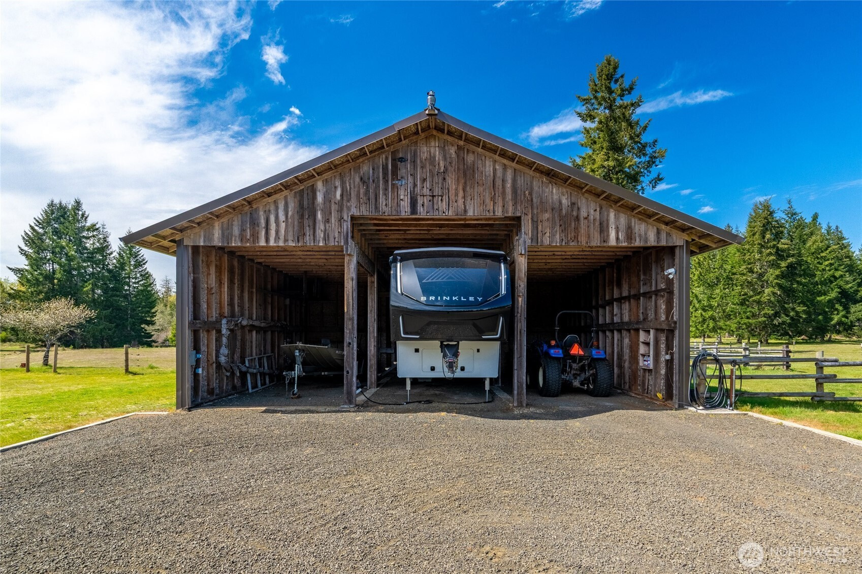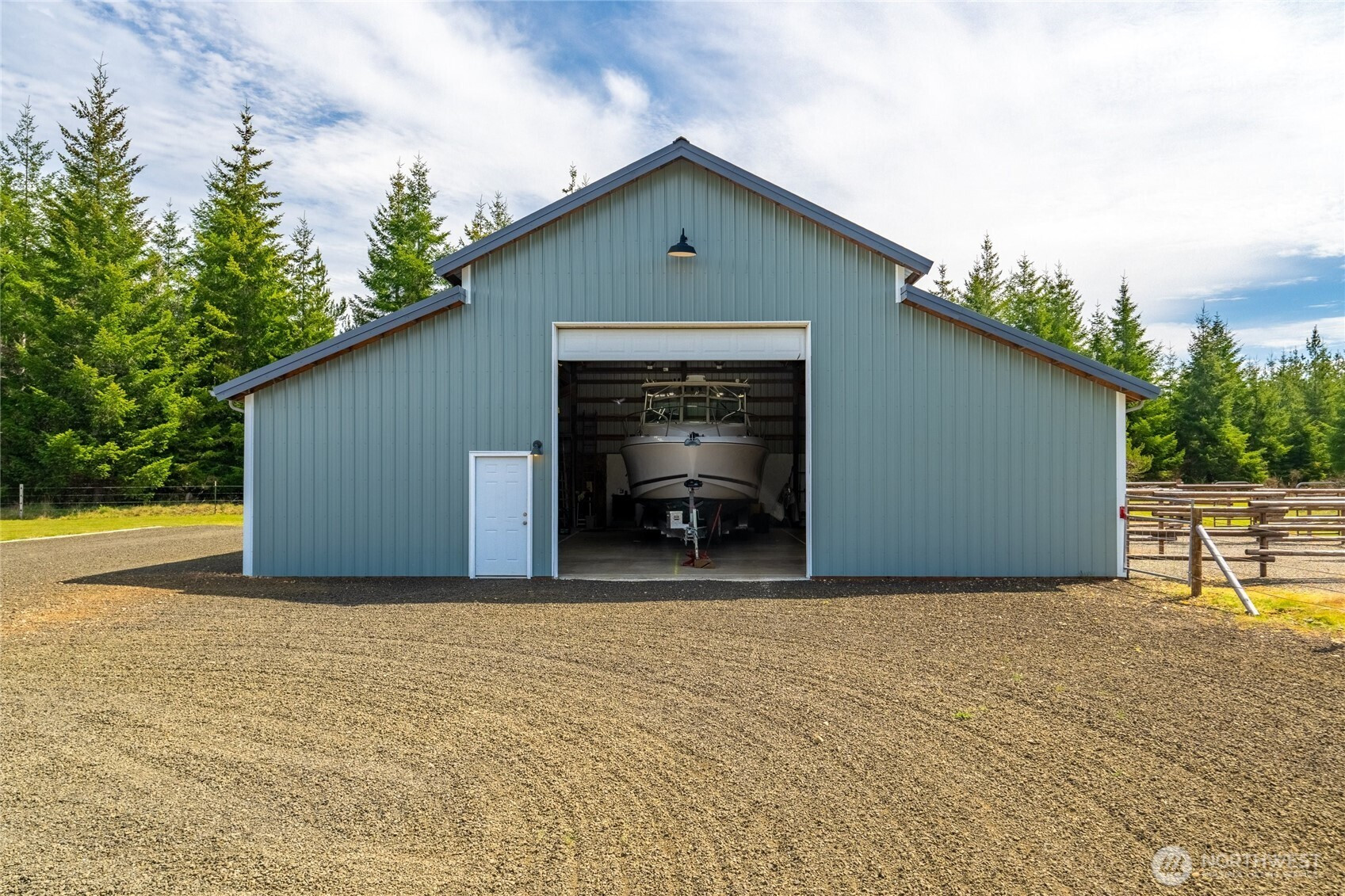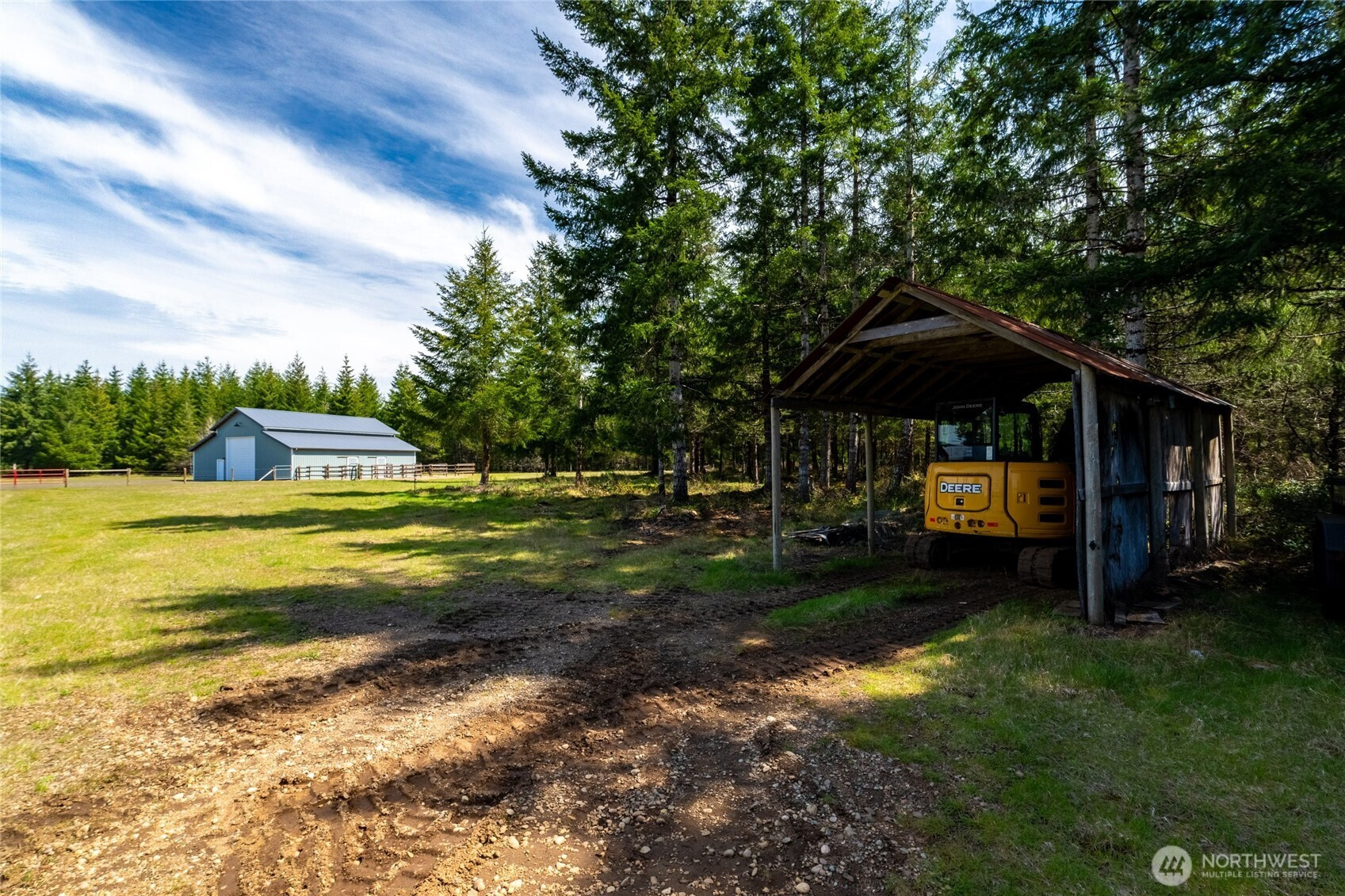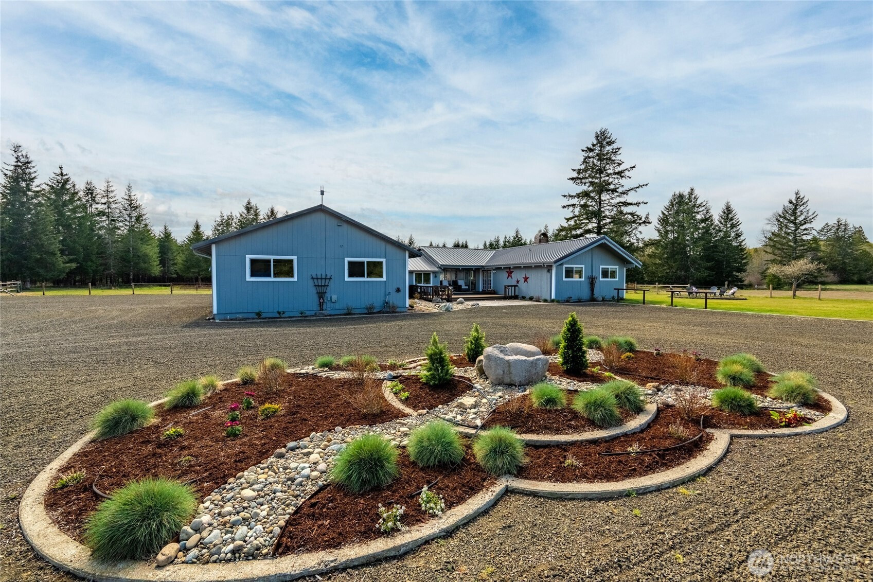 40-acre farm at the base of the Olympic Mountains, set up for livestock and equestrian use. Fully fenced and cross-fenced into 7 pastures with approximately 1,000 feet of frontage along Dry Bed Creek. The home is positioned well off the road with a gated entrance, offering privacy and a functional layout for a working property. The 2,112 sq ft home includes 3 bedrooms and 2.25 baths and has been fully renovated with high end finishes. Features include a metal roof, heat pump, stainless steel appliances, fiber optic internet, hot tub, and an oversized 3-car attached garage. Improvements are well thought out and designed for everyday use. Circular driveway with fresh gravel and ample parking. RV Parking with full hookups. A large equipment shed provides space for tractors, trailers and other farm equipment, and a dog run is already in place. The newly constructed 48'x48' shop/barn includes workshop space, 3 finished stalls with room for a fourth or a tack room, and gravel runs. A 14'x14' door allows for RV, boat, or trailer storage. The Way Back field is newly planted with Christmas trees. Ride out access is located across the street, with direct proximity to 32 miles of Timberland trails. The entire property is meticulously appointed and maintained. This is a well-equipped, ready-to-use property with the infrastructure in place for a range of agricultural or recreational uses.
