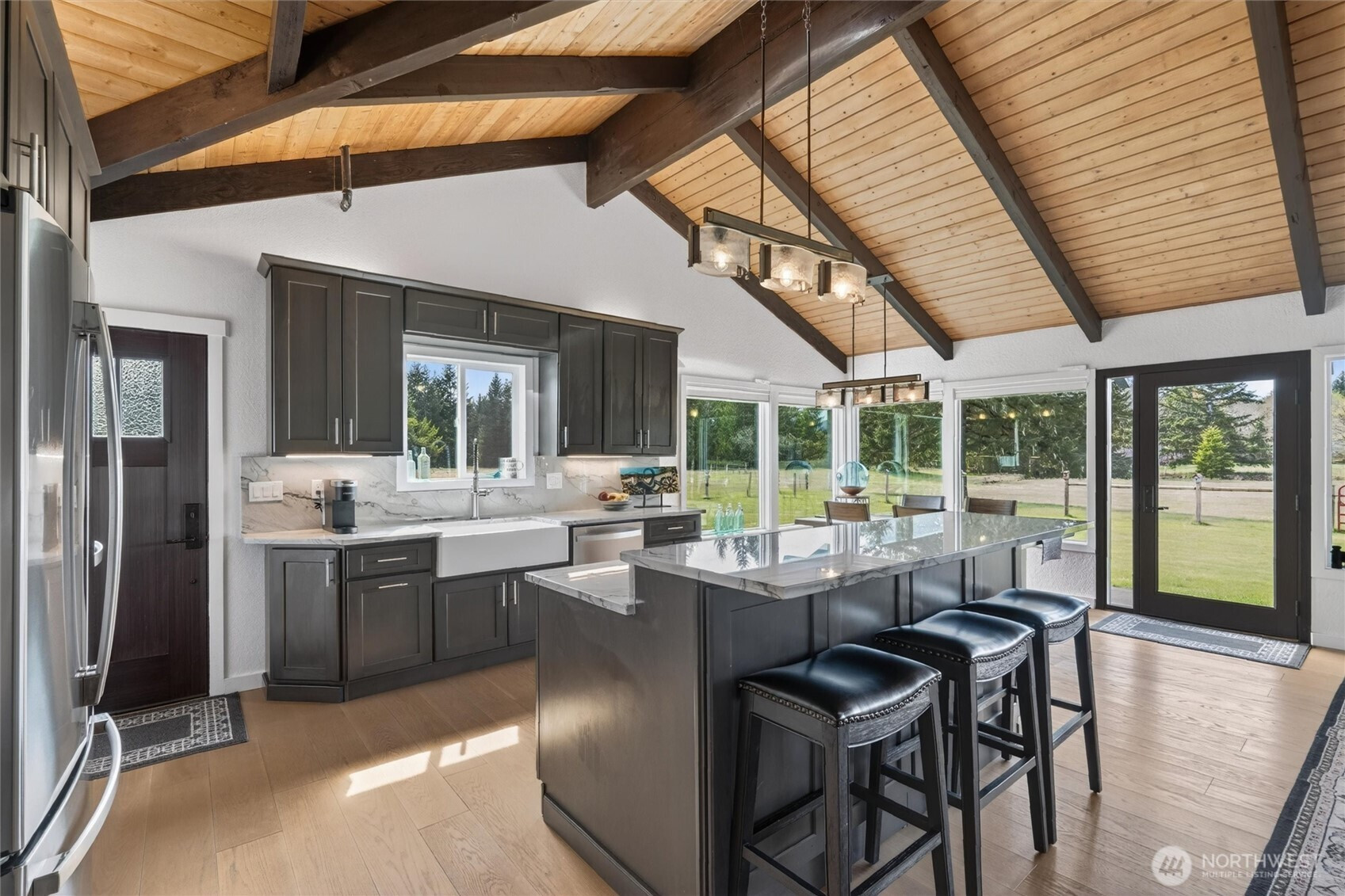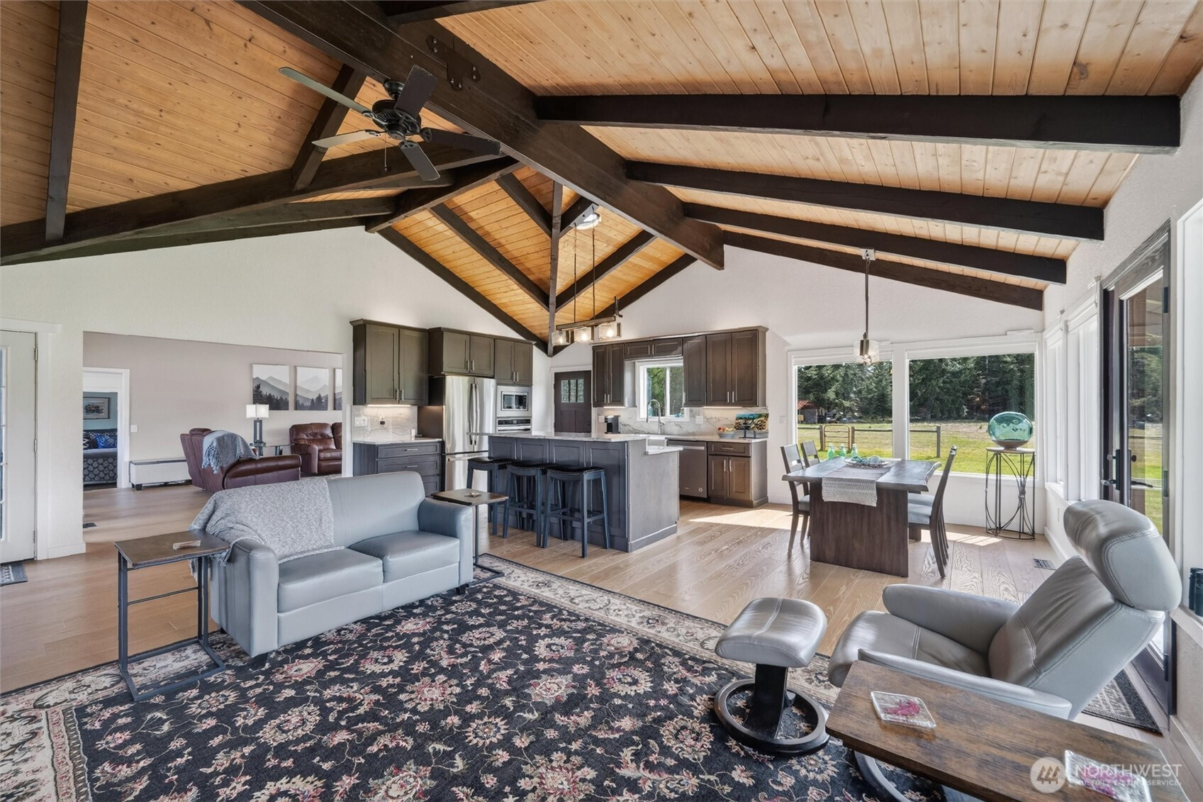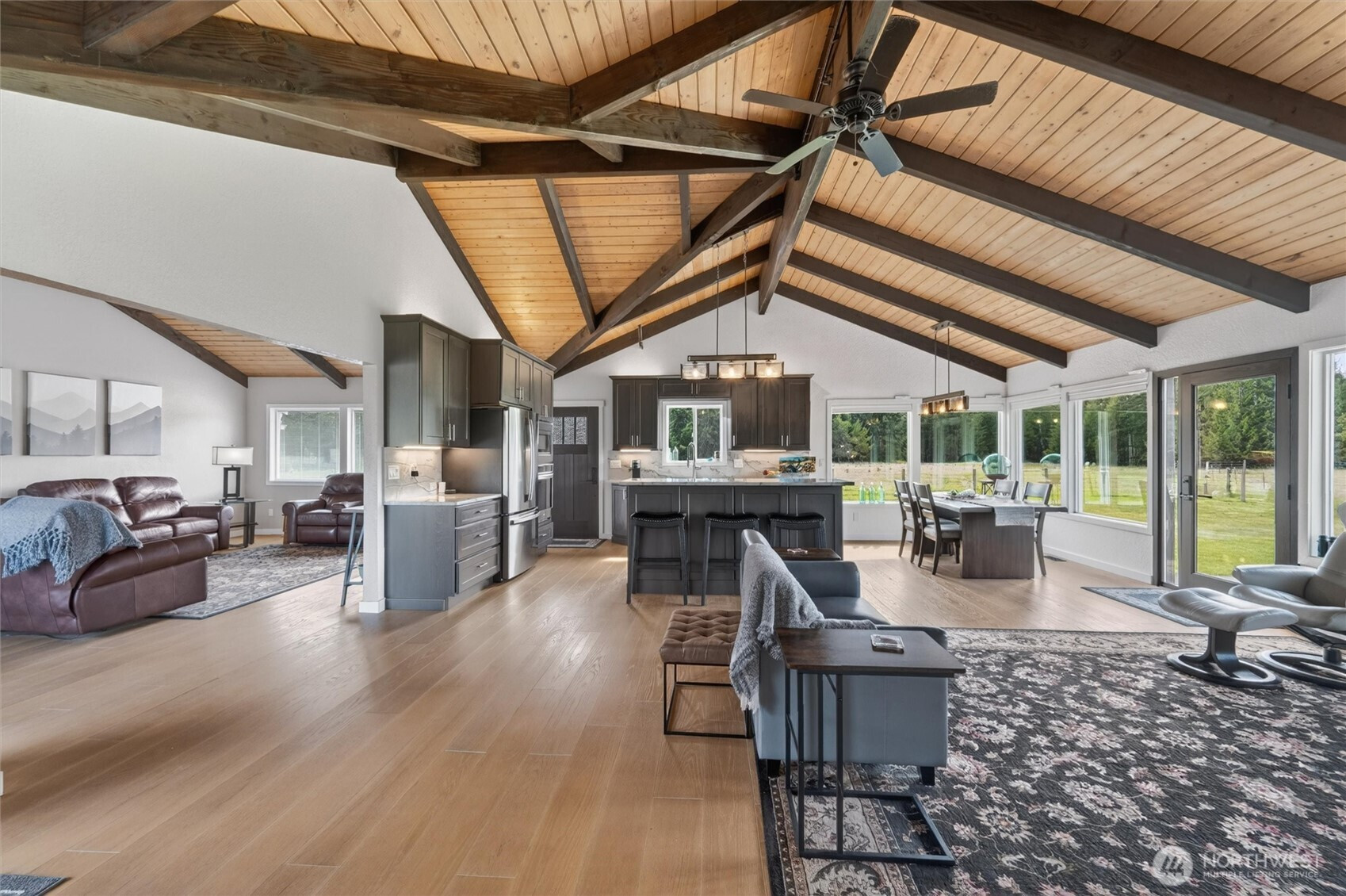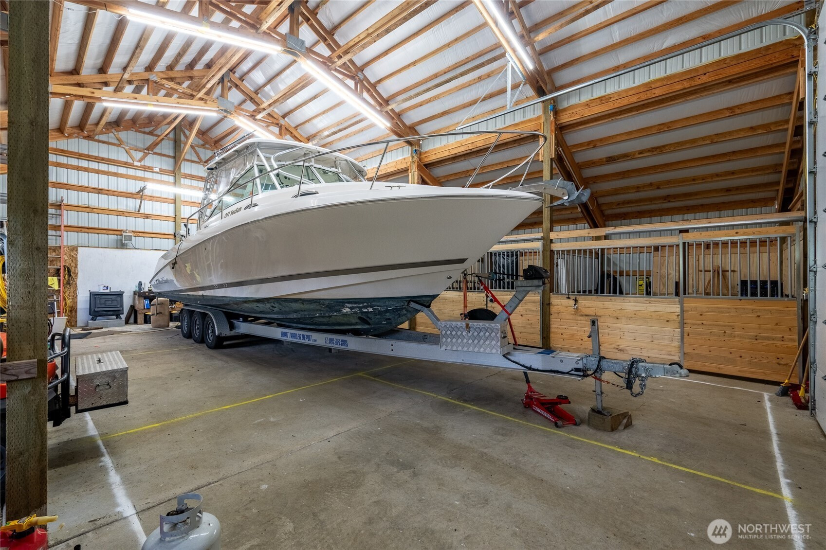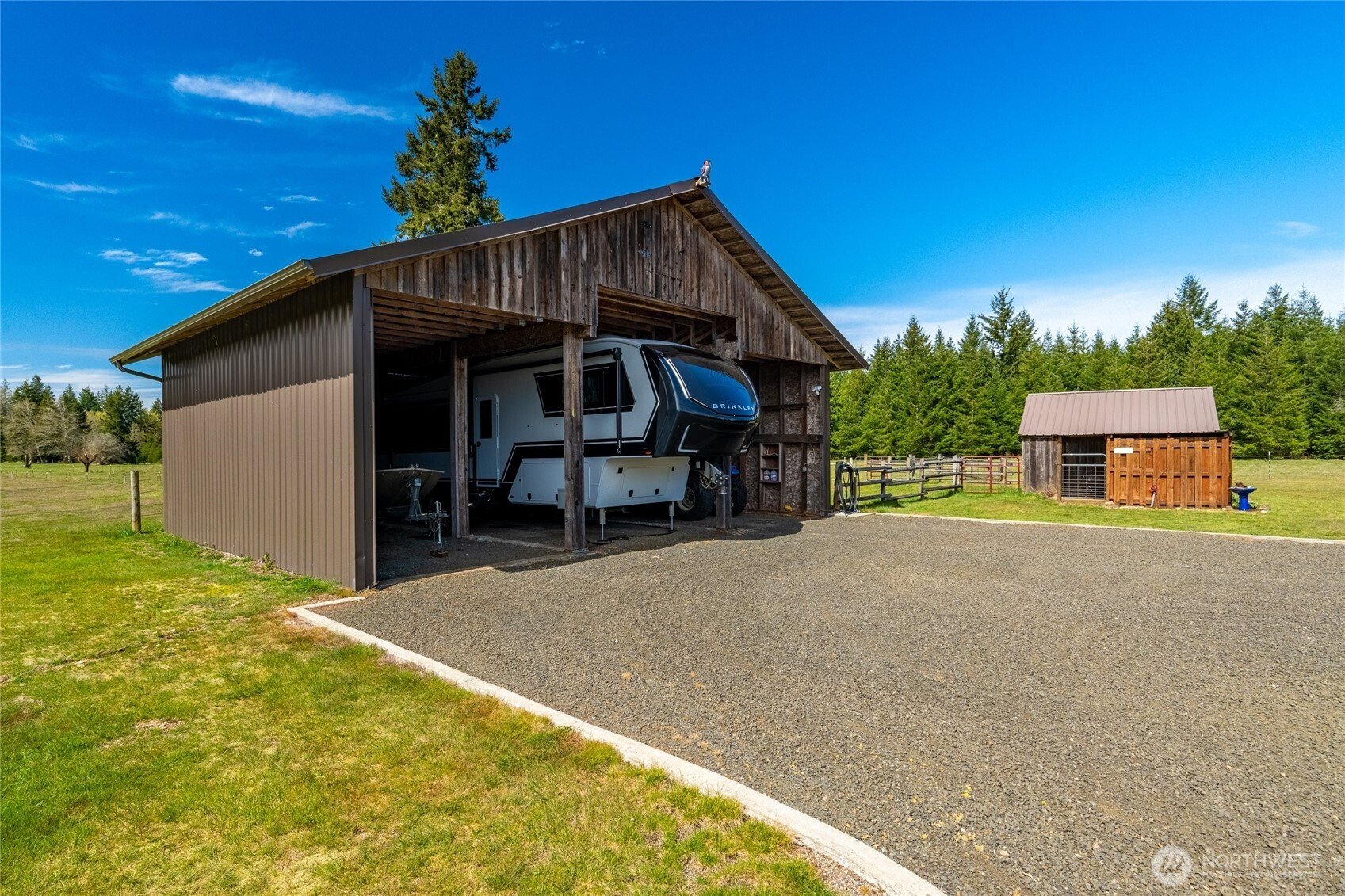 40-acre farm at the base of the Olympic Mountains, set up for livestock and equestrian use. Fully fenced and cross-fenced into 7 pastures with approximately 1,000 feet of frontage along Dry Bed Creek. The home is positioned well off the road with a gated entrance, offering privacy and a functional layout for a working property. The 2,112 sq ft home includes 3 bedrooms and 2.25 baths and has been fully renovated with high end finishes. Features include a metal roof, heat pump, stainless steel appliances, fiber optic internet, hot tub, and an oversized 3-car attached garage. Improvements are well thought out and designed for everyday use. Circular driveway with fresh gravel and ample parking. RV Parking with full hookups. A large equipment shed provides space for tractors, trailers and other farm equipment, and a dog run is already in place. The newly constructed 48'x48' shop/barn includes workshop space, 3 finished stalls with room for a fourth or a tack room, and gravel runs. A 14'x14' door allows for RV, boat, or trailer storage. The Way Back field is newly planted with Christmas trees. Ride out access is located across the street, with direct proximity to 32 miles of Timberland trails. The entire property is meticulously appointed and maintained. This is a well-equipped, ready-to-use property with the infrastructure in place for a range of agricultural or recreational uses.