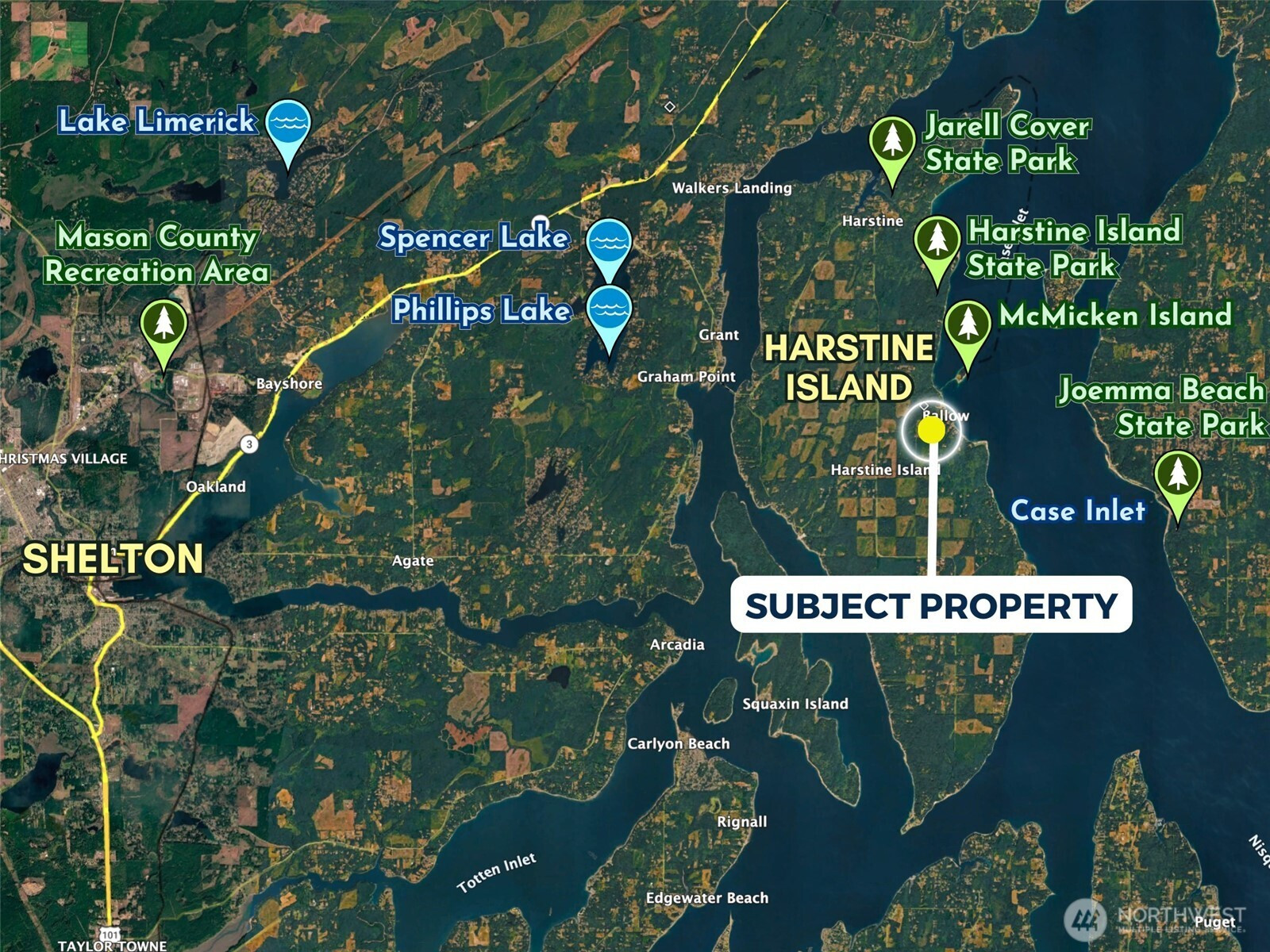 Very private and secluded 2.43-acre buildable parcel on Harstine Island. No neighbors in sight, no HOA, and no CC&Rs. With Hartstine Island Park just 400 feet away as the crow flies, enjoy easy proximity to wooded trails, a public restroom, and Case Inlet waterfront access for pleasure or shellfish. The topography is mostly level with light elevation changes and it has been replanted with Douglas Fir trees to match the surrounding landscape as they mature. The property offers gated egress with a gravel access road and a driveway spur. On-site soils are considered favorable for septic installation. For water, a private well may be drilled, or there may be an opportunity to coordinate a shared well with the neighboring parcel — also available for purchase if additional buildable acreage is desired. Shelton is less than 30 minutes away and Tacoma is just over an hour from the property. Private, buildable acreage with flexibility and long-term potential is increasingly hard to find — bring your vision to life.