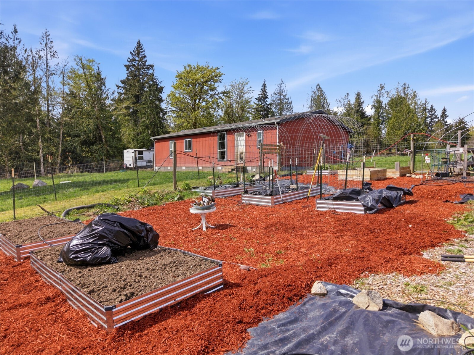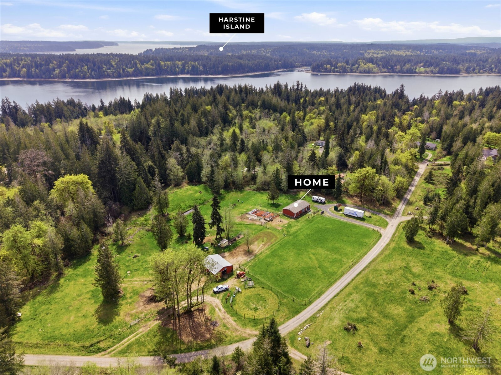 Welcome to your private country retreat in Grapeview, Washington. Nestled on 5 beautiful acres at the end of a quiet dead-end street, this fully functional active farm offers the perfect blend of comfort, space, and rural charm. The 1,408 sqft home features 2 bedrooms, with bonus room and 2 bathrooms, with an inviting living area where large windows fill the space with natural light, creating a warm and airy feel throughout. Outside, the property is thoughtfully set up for farm and equestrian living. Enjoy a 110’ x 270’ riding arena, a 4-stall barn complete with hay storage and water, and expansive pasture land ready for animals. Garden enthusiasts will appreciate the raised beds and established fruit trees, while the open space offers endless possibilities to expand or simply enjoy the peaceful surroundings. With a private well and septic system already in place, this property is ready for your rural lifestyle dreams—whether that’s farming, homesteading, or simply enjoying wide-open space and fresh air.