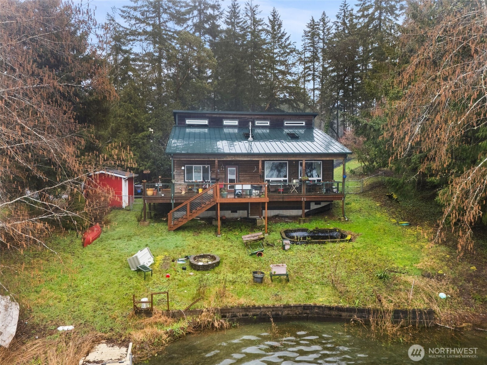 Original owner is selling her beloved Spencer Lake waterfront home. She has enjoyed many years on this lake and built this home to enjoy the beautiful view. Enter into the main floor with a spacious kitchen that flows into the living room and also a bedroom, bathroom and laundry room. Cozy up to the wood stove or walk out onto the deck for spectacular views. Upstairs is the primary bedroom and bathroom along with a bonus room that also has a large walk-in closet/storage room. Under the home is a walkable crawlspace for storage. Enjoy hours of summer fun on your own private dock. New insulated pump house, large backyard and a detached garage/shop with a loft and a carport. Garden area, fruit trees, pond and a firepit. RV parking from driveway off of Lakeway Dr. Main driveway is an easement off of Pickering Rd just before Lakeway Dr.