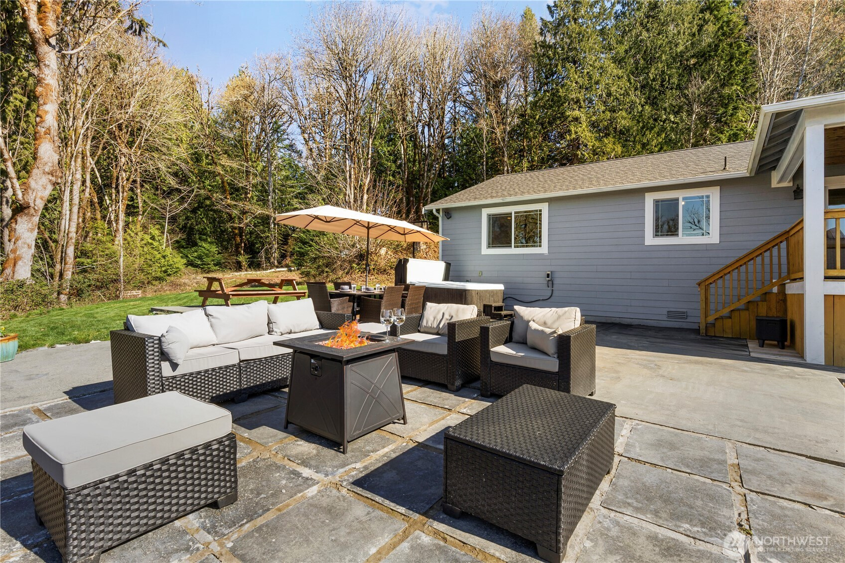 Set on two private acres with views of the Olympic Mountains and Hood Canal, this one-story, 3-bedroom home with a bonus room and 2 full bathrooms offers privacy, flexibility, and Northwest lifestyle appeal. The single-level layout provides easy access throughout and supports comfortable, functional living. The home features an open-concept kitchen, living, and dining area with vaulted ceilings that enhance natural light and create a spacious, inviting atmosphere. The bonus room offers flexible use as a home office, guest space, or additional living area. Outdoor spaces are designed for enjoyment and entertaining, including a covered back deck and a large back patio overlooking the peaceful, wooded setting. Mature trees provide privacy and a sense of seclusion, with local wildlife such as eagles and deer frequently observed on the property. An oversized two-car garage offers ample space for vehicles, storage, and equipment. The property is located near Hood Canal with convenient access to year-round recreation including hiking, fishing, boating, clam digging, golf courses, and nearby state parks. The home is currently operating as a successful short-term rental with approximately $100,000 in annual income and may be sold turnkey, subject to buyer due diligence, offering additional income potential. Despite its serene setting, the property is just 7 minutes from the town of Belfair, providing easy access to grocery stores, dining, coffee shops, and essential local services.