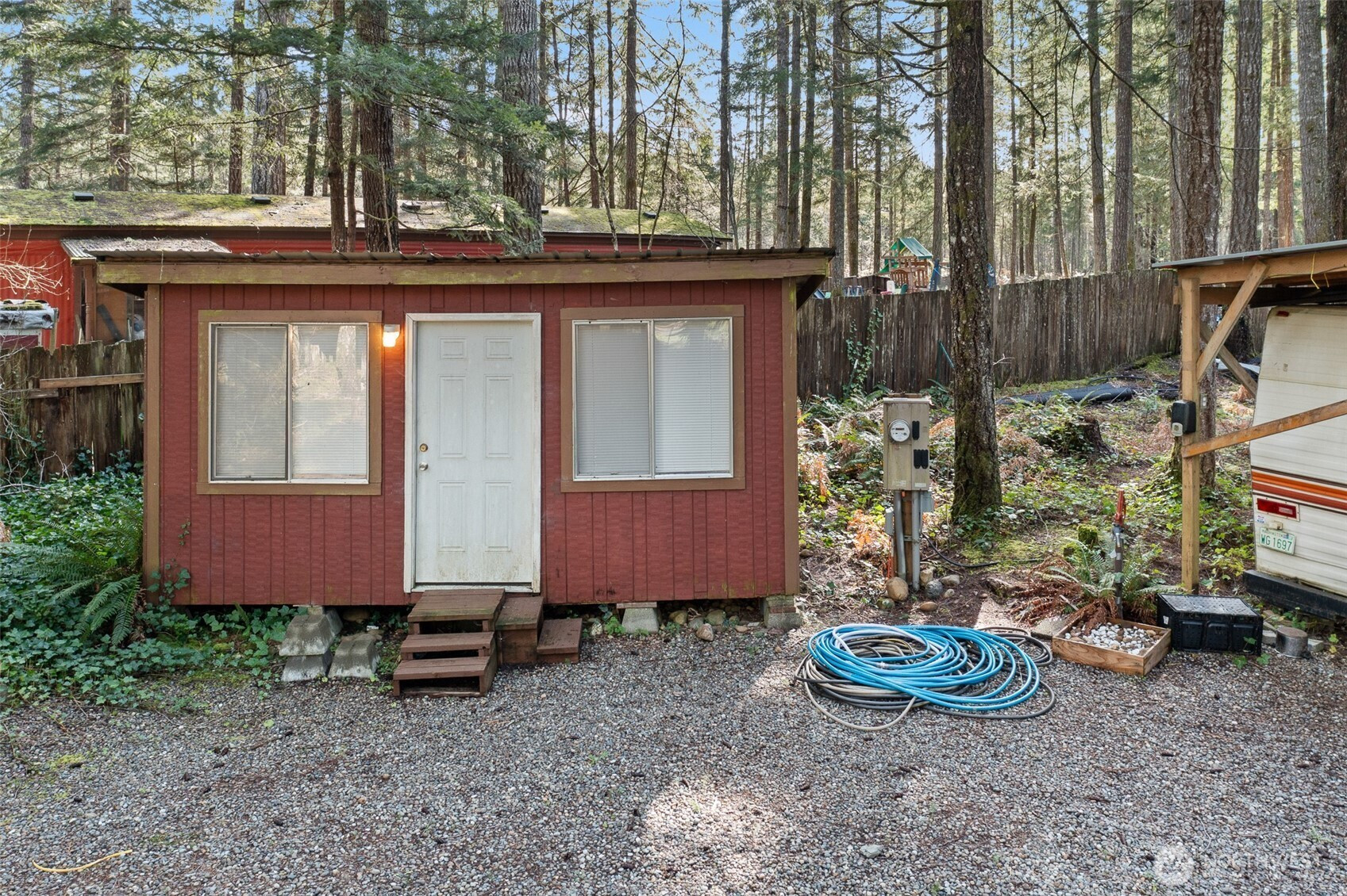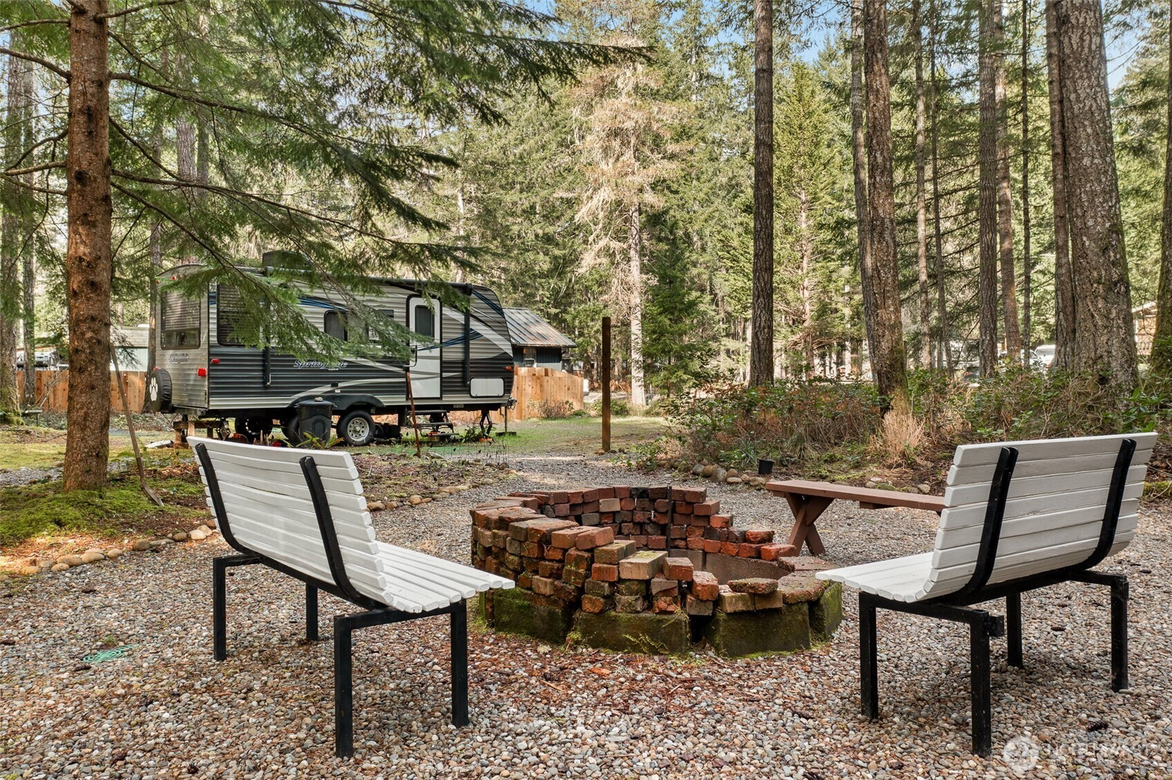 There’s something special about a property that’s already set up to enjoy from day one, while still leaving room to create something more—and this one strikes that balance beautifully. Located near Lake Kokanee on a quiet cul-de-sac, this double-lot property offers a thoughtful, functional layout with two separate driveways that seamlessly integrate recreation and future opportunity. One driveway leads to a well-equipped RV setup, complete with a covered structure, powered storage shed, and an inviting outdoor living space featuring a built-in fireplace and firepit—surrounded by stacks of seasoned firewood ready for year-round gatherings. The second driveway opens to a large, level clearing—ideal for additional RV parking, entertaining, or building that cabin in the woods you've always dreamed of. With water and power already on the property and a successful perc test completed, much of the groundwork has already been done. An older existing travel trailer is included and provides immediate utility and storage, while the newer trailer is negotiable for those seeking a more turnkey setup. Surrounded by mature evergreens and just minutes from Lake Kokanee and the many parks, boat launches, trails, and amenities throughout Lake Cushman, this property offers the flexibility to enjoy it as-is or transform it into the kind of retreat you’ve always imagined—tailored to how you want to relax, gather, and escape.