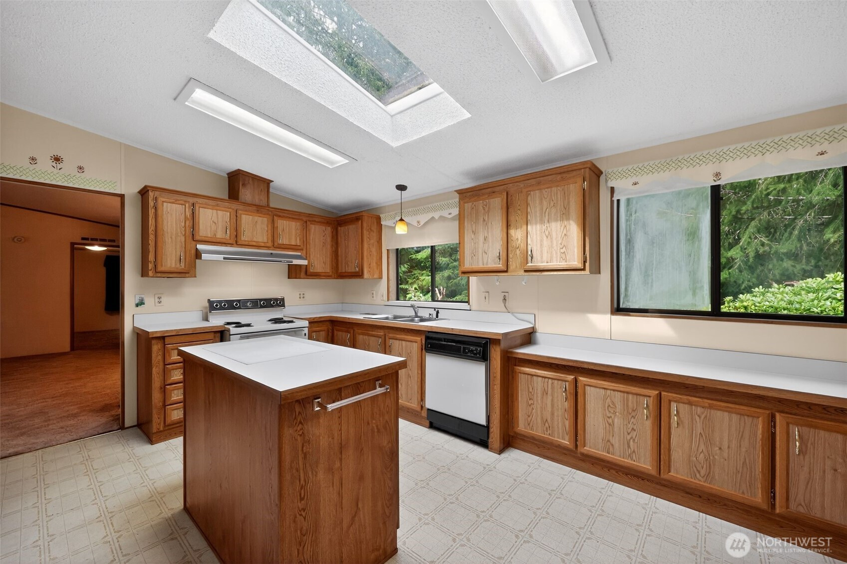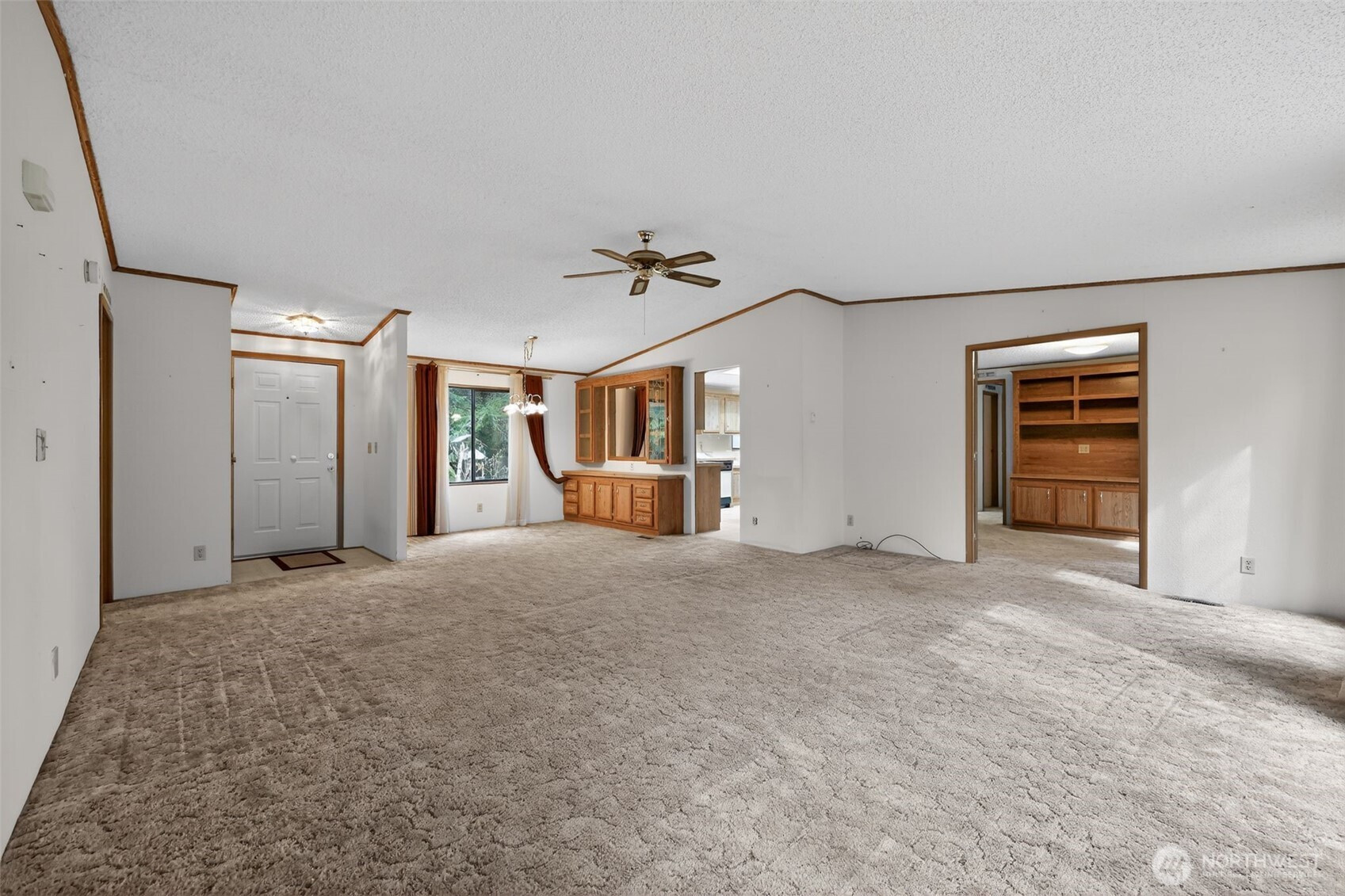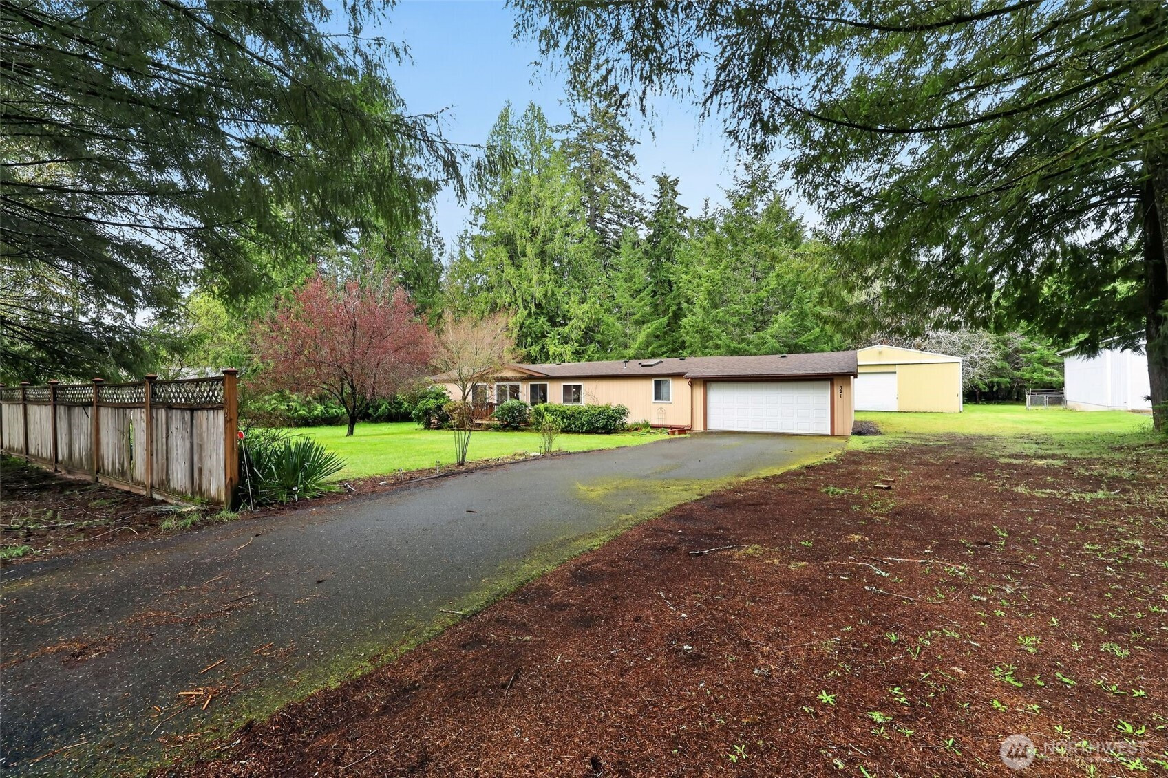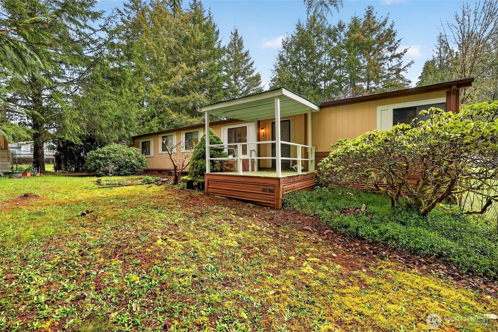 Pride of ownership shows throughout this 3 bedroom, (1 currently is a den/office) 2 full bathroom, double-wide manufactured home with an open and bright interior design. Enter into the main living area featuring a pleasing open layout with ceiling fans and a defined dining space with built-ins. Floor plan flows into a large kitchen with an island, ample counter space, and extensive cabinetry. Primary bedroom is generously sized and features an en suite bathroom with a step-in shower and a separate bathtub. A second full bathroom is centrally located off the main living area. A large utility room provides additional storage and wiggle room. Exterior features include a 32' RV garage AND an attached 2-car garage. Conveniently located between Shelton and Olympia.