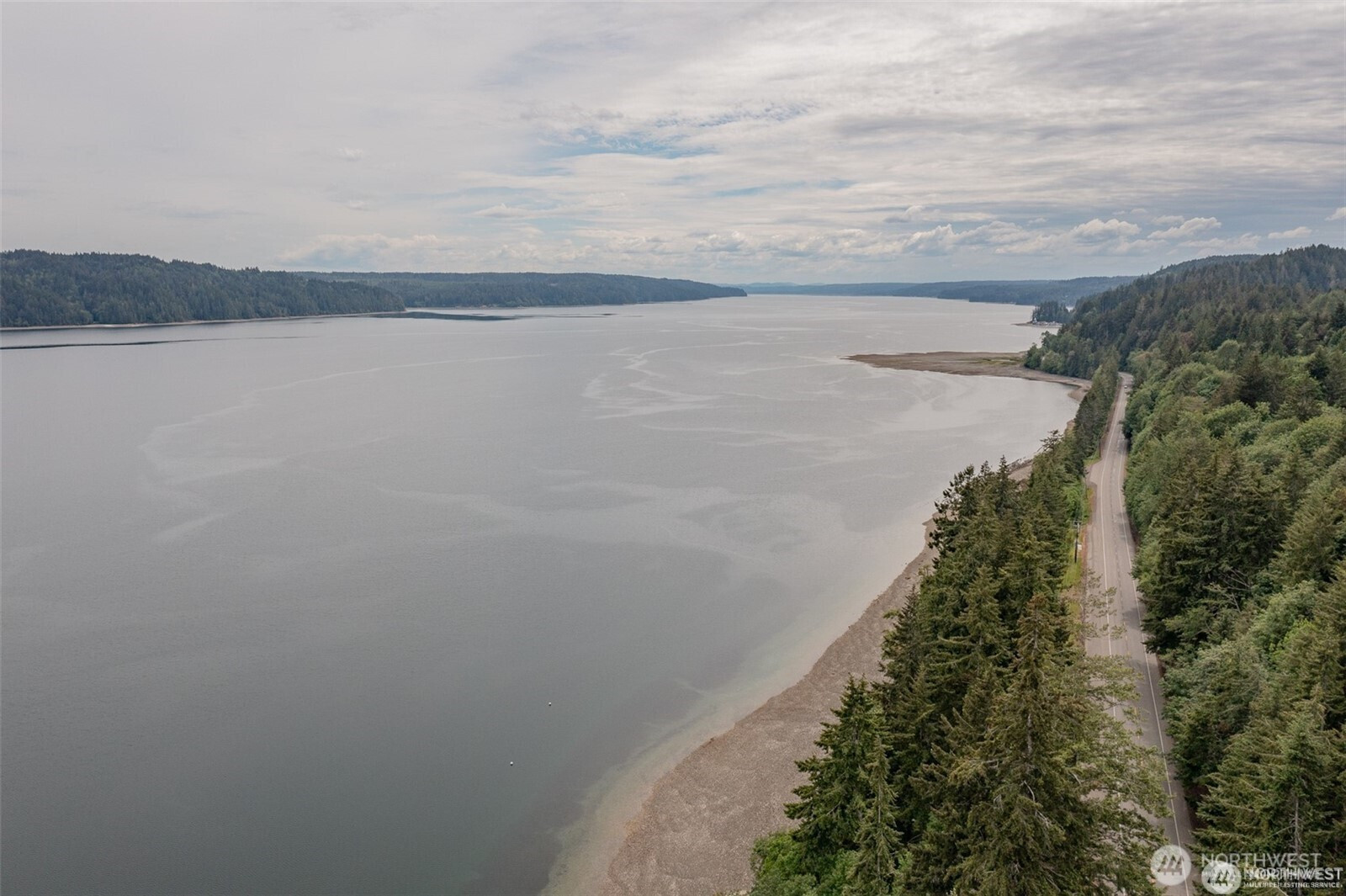 Spectacular water view! Serene shy 14.6 acres off the inlet north of Hood Canal! Two parcels (323094300000 & 3230943400000) and have two separate waterfront parcels. Lot p9 or P10 can be sold together as one or separately. (Currently 323094300000 listed on MLS #2458872). The P10 property has a cute cabin (3/4 bath & kitchenette - 192 sqft) & studio(3/4 bath & wood stove - 192 sqft), Work shop, Tractor garage(192 sqft) & Shed. Awesome place to spend time on weekends or Holidays gatherings. Septic in site, Phone & Power in place. Plumbed & ready to connect to the well. P9 has a wide driveway to clear space for a build view home site. Both P9 & P10 shared the gated entry from N Hwy 101. Wooded, creek & rustic...get away from it all right here!