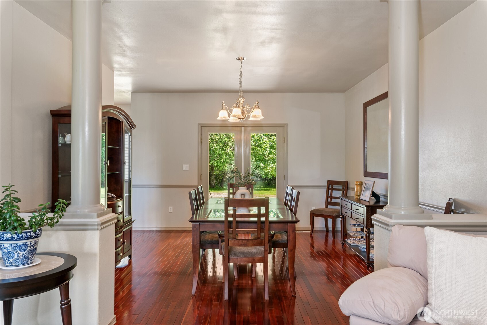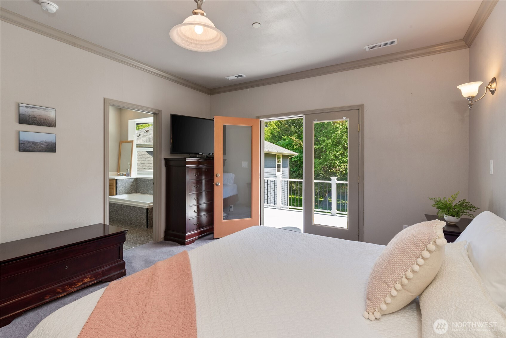 Set on over 2.5 acres of lush Pacific Northwest landscape, this welcoming home offers both comfort and versatility. The home features two primary bedrooms, each with its own en-suite bathroom, providing flexibility for everyone. Enjoy stunning views of the Olympic Mountains from the living area, where gorgeous hardwood floors add warmth and elegance. The home's unique second wing offers additional space, perfect for a home office, studio, or guest suite. Step outside to a backyard that backs up to a peaceful creek, creating a serene setting for relaxation or outdoor activities. With ample space for gardening, entertaining, or simply enjoy the outdoors, this property combines comfort with the tranquility of nature. A perfect home to AirB&B, don't forget to check out the Hood Canal beach access!