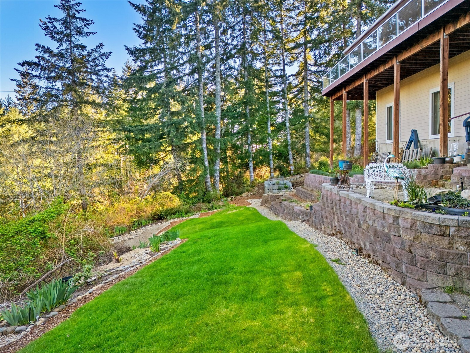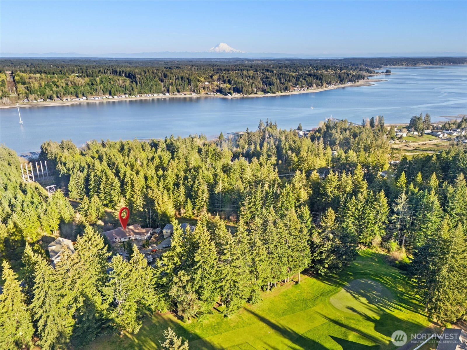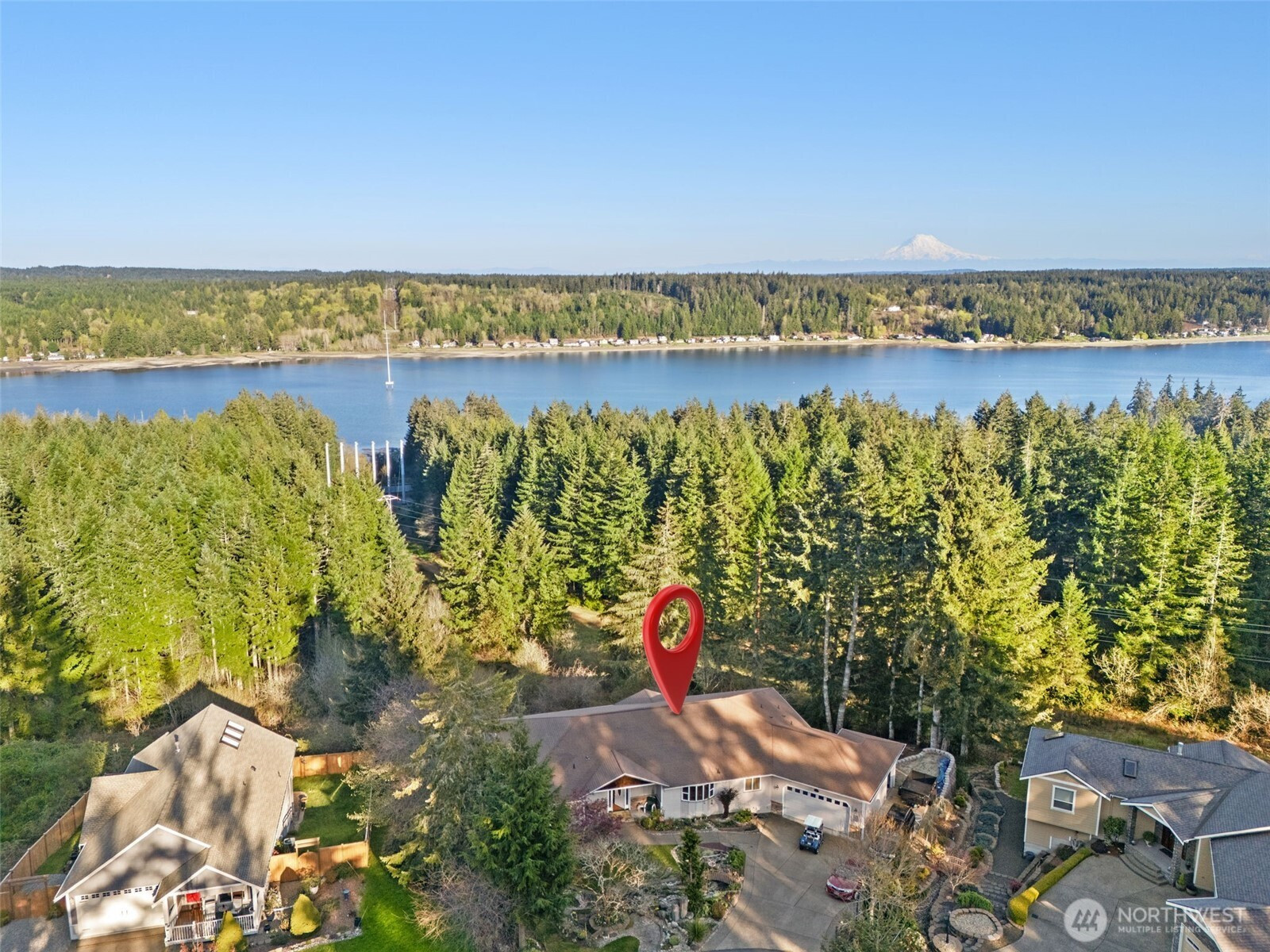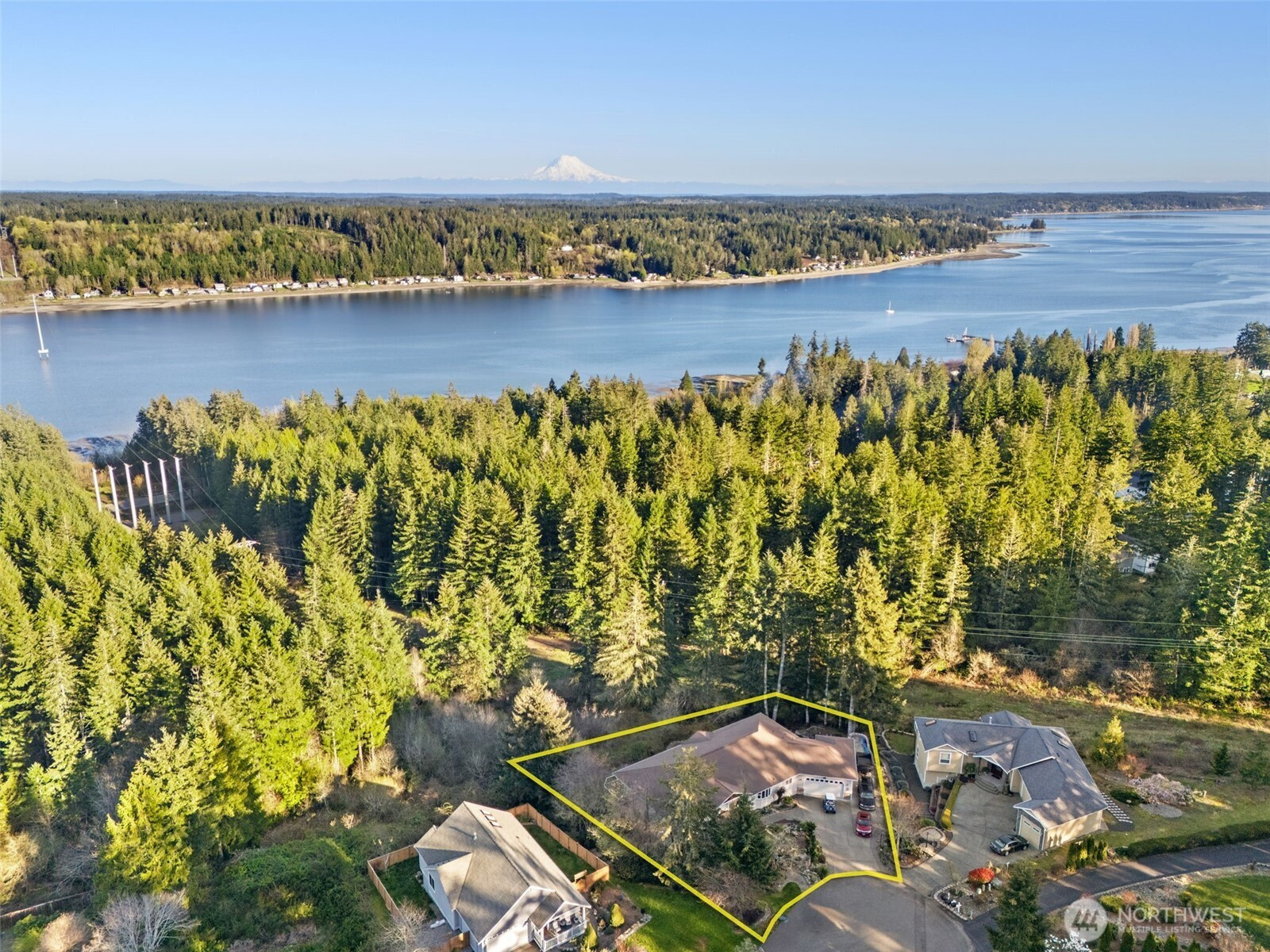 Experience space, privacy, and Northwest charm in this impressive custom home on a quiet cul-de-sac in Lakeland Village. Offering over 5,000 sq ft, it’s ideal for single or multi-generational living. The 2,598 sq ft main level features a seamless layout with multiple bedrooms, including a spacious primary suite with a 5-piece bath, walk-in closet, and direct access to an expansive view deck. Nearly 1,000 sq ft of outdoor living showcases stunning Case Inlet views—perfect for entertaining or relaxing. The well-appointed kitchen offers granite countertops, double ovens, and ample storage, flowing into formal dining and living areas with beautiful hardwood floors. A 2,598 sq ft roughed-in daylight basement provides incredible flexibility with space for a second kitchen, living area, bedrooms, and baths—ideal for a private apartment or additional living. Located in a sought-after 27-hole golf course community, this home delivers comfort, versatility, and an exceptional setting.