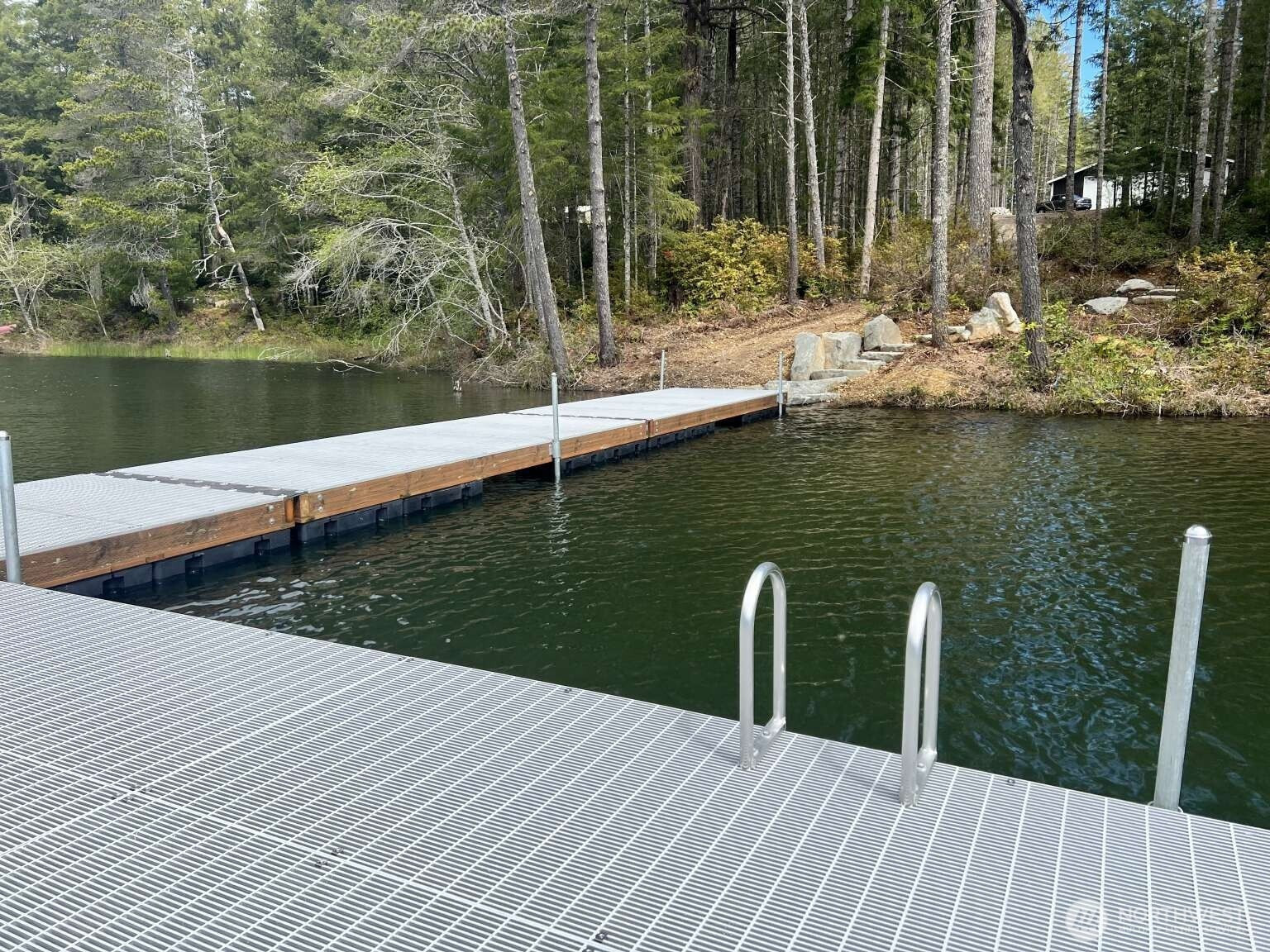 Exceptional build-ready lakefront property on Tee Lake in Mason County. This 1.4-acre no-bank waterfront parcel is fully developed and permitted, offering a rare opportunity to build without delay. The property includes a 2,793 sq ft insulated and heated garage/shop with six tall drive-through doors, dual PUD electrical panels, fiber-optic internet, security wiring, and LED lighting. A private well, permitted septic system sized for a four-bedroom home, and a large 720 sq ft permitted composite dock (built 2022) are already in place. Tee Lake allows power boats, fishing, and year-round recreation in a quiet setting. Direct access to Tahuya State Forest trails. Private road access, peaceful surroundings, and close to Belfair and Hood Canal.