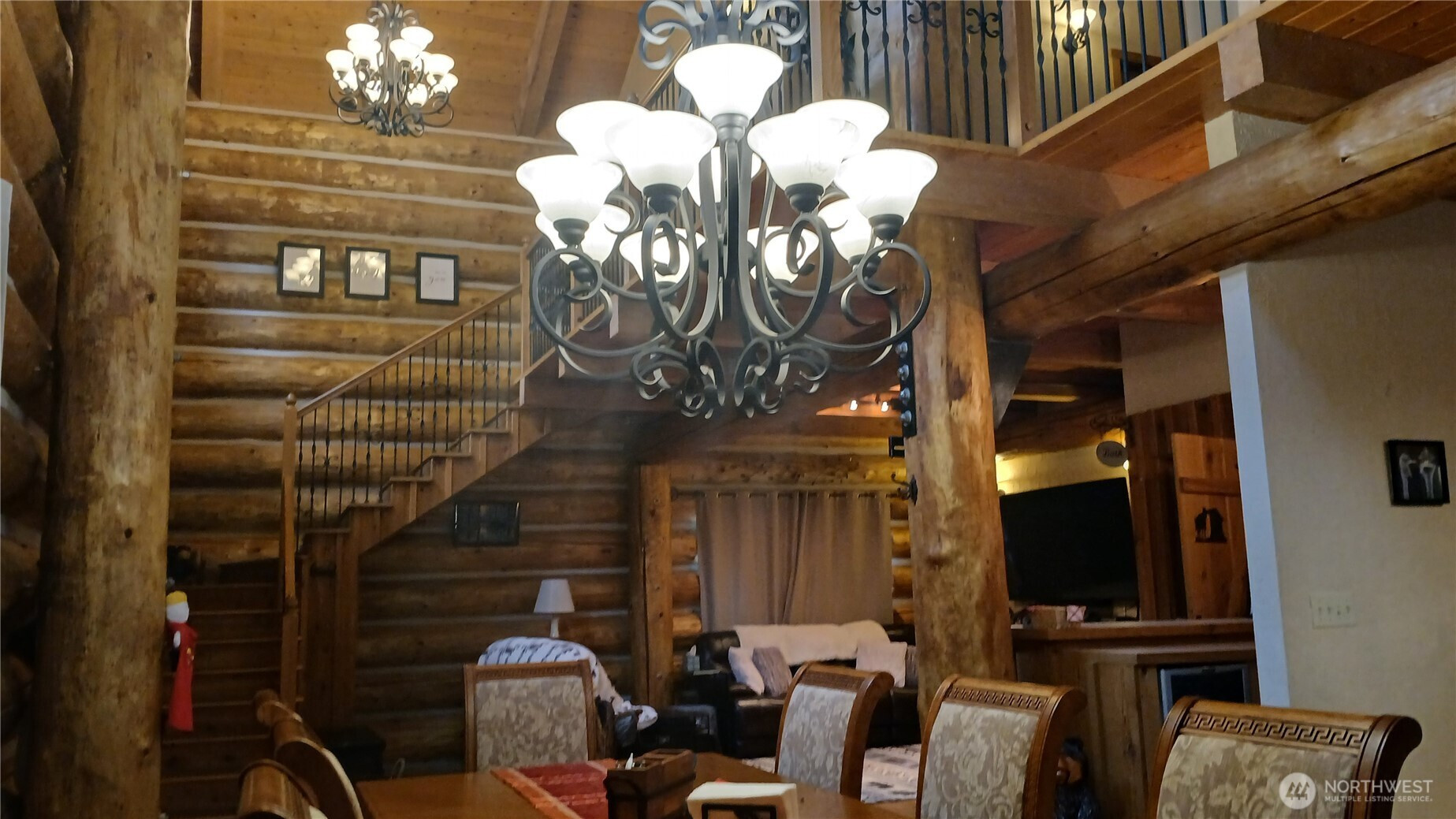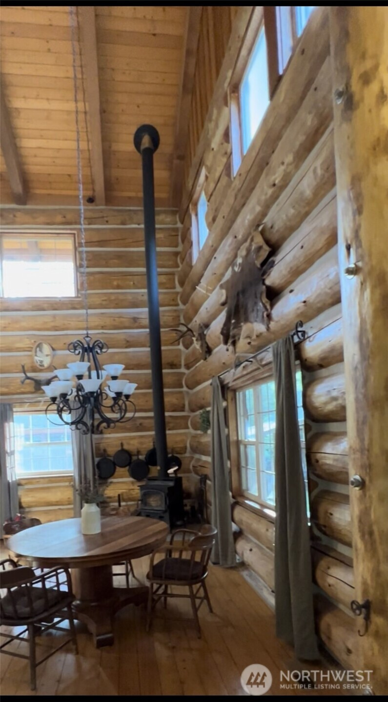 welcome to your ultimate 4.97 Acres escape: An exquisite custom-log home that perfectly marries rustic elegance with modern convenience, nestled within a private, serene, evergreen landscape. This stunning 2250 sq ft log home boasts soaring ceilings, exposed beams, and a grand, open concept design complete with a wet bar and flexible living spaces ( 3 bedroom + office + bonus room) This home features 3 full bathrooms, including a masters ensuite. Outdoor enthusiasts will love the unparalleled privacy, the secluded private trail and the daily wildlife viewing opportunities from the patio and windows. This 5 car garage with 14 ft door to enter a RV, private drive makes this a turn key sanctuary where luxury meets superior utility.