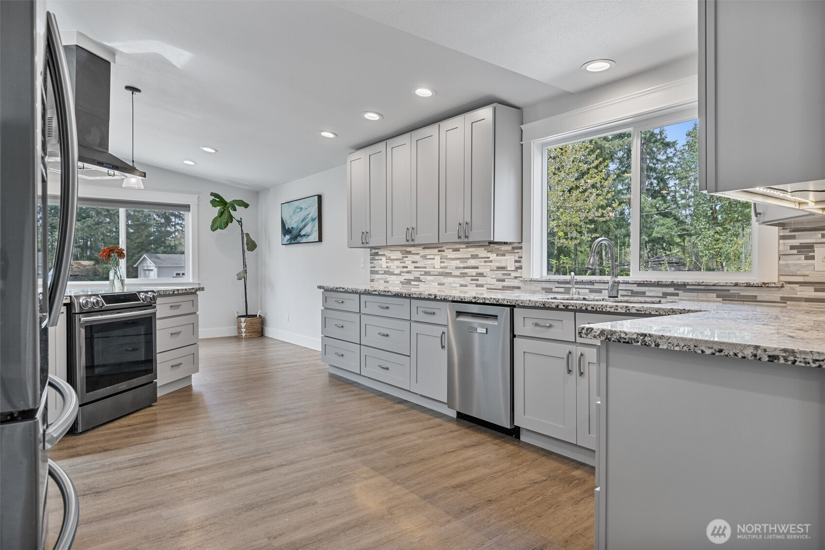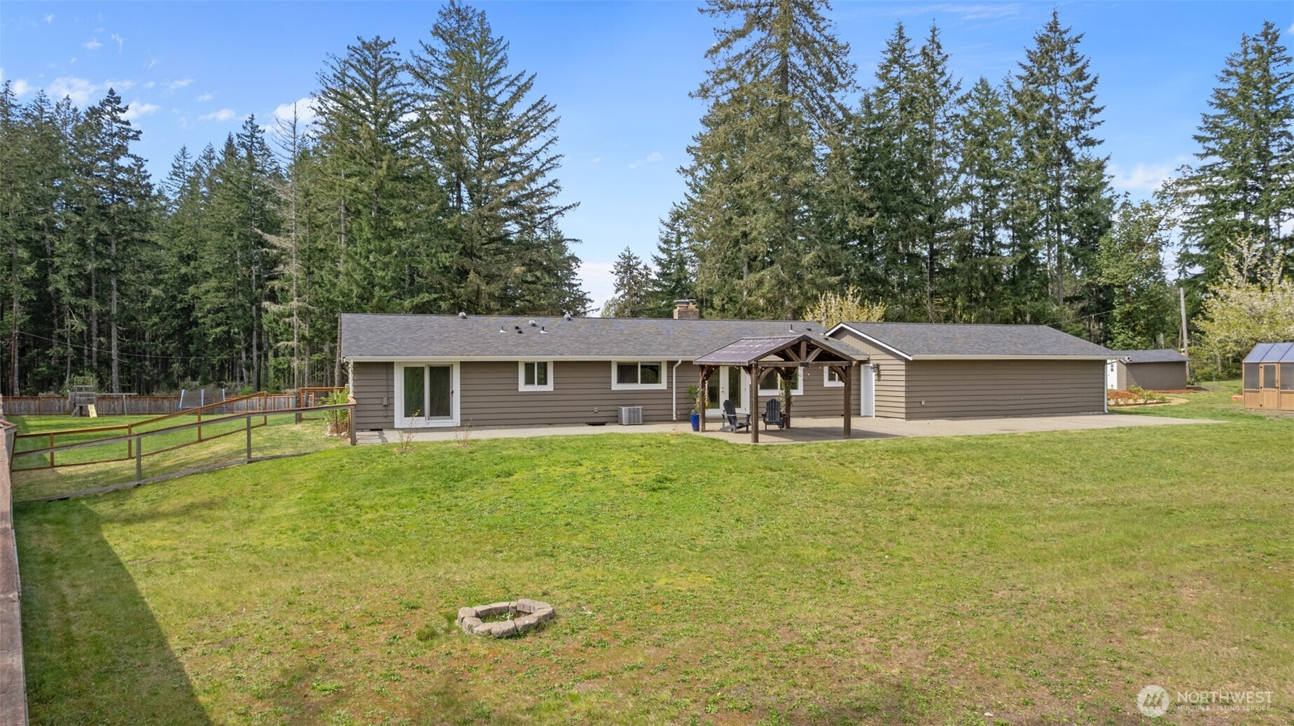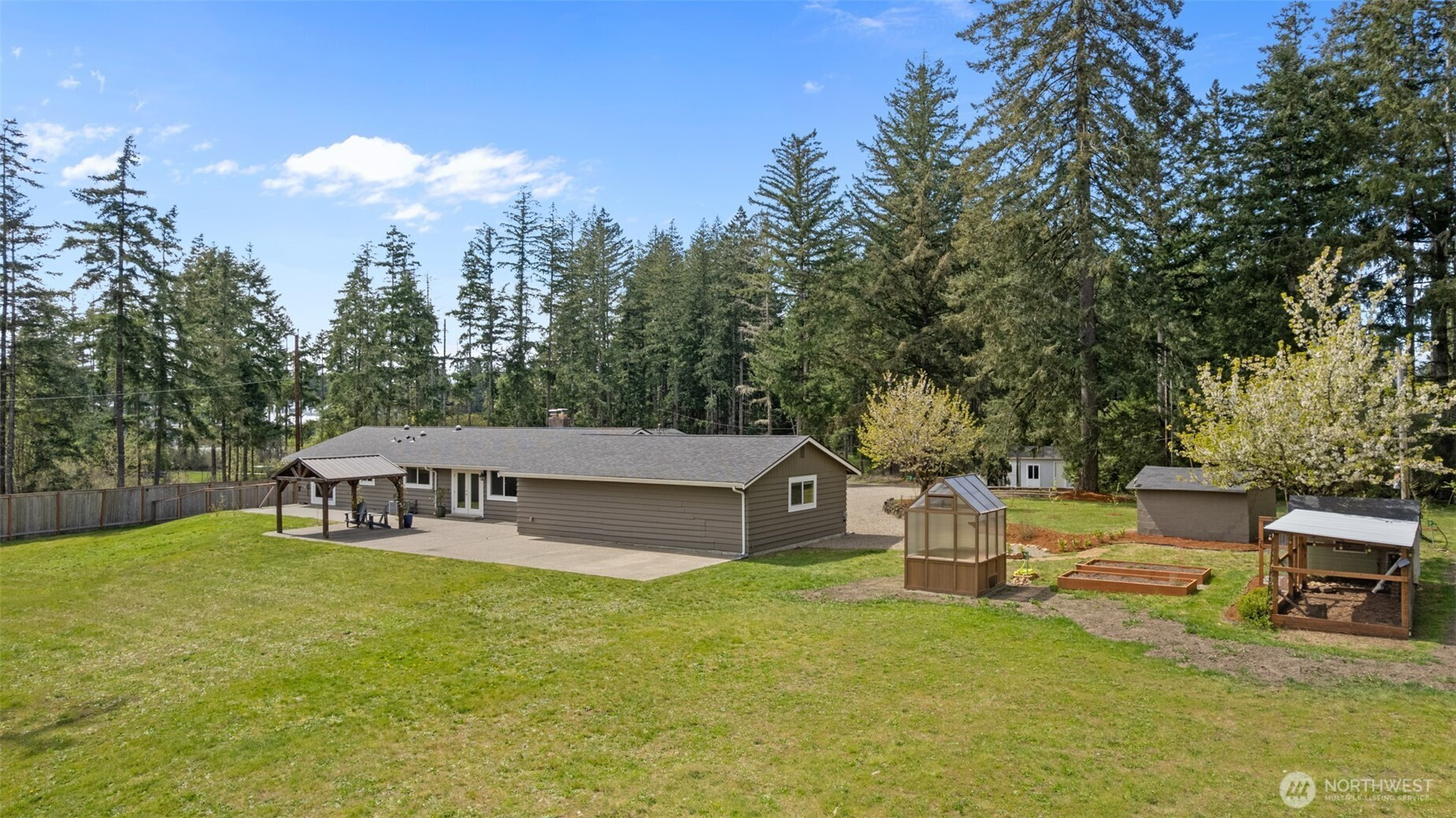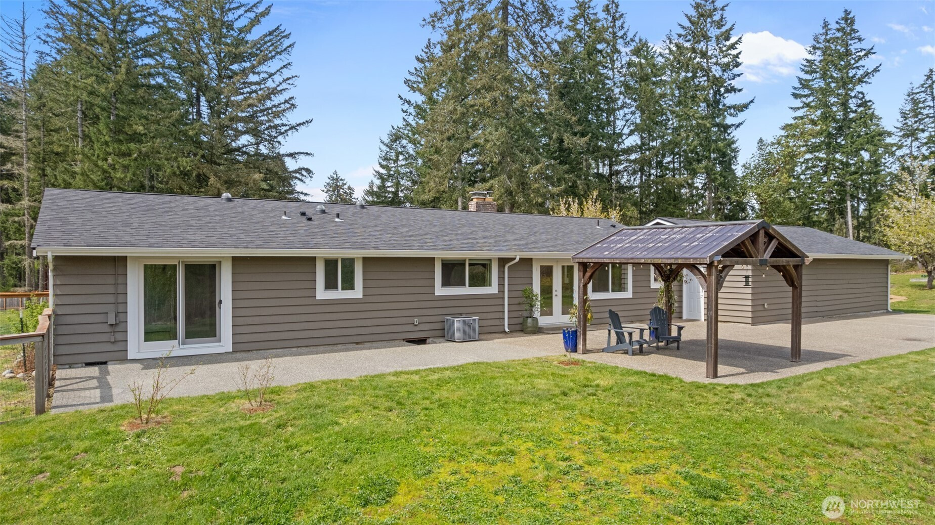 Experience the best of Belfair living with this beautiful single-story home set on 4.75 mostly flat, usable acres just minutes from town and the scenic Hood Canal. Recently refreshed with new exterior paint, this property offers standout curb appeal along with the perfect blend of privacy and convenience. Inside, the thoughtfully updated 4-bedroom home features a bright open-concept layout with vaulted ceilings and skylights, a spacious kitchen with abundant cabinetry, all appliances included and a walk-in pantry. Two separate living areas offer flexibility for furniture and french doors lead to an expansive 1,500+ sq ft patio with a covered gazebo, ideal year round BBQ or enjoying peaceful Pacific Northwest evenings. Designed for the Belfair lifestyle, the property includes a greenhouse, chicken coop, multiple sheds, and plenty of cleared, fenced land for hobbies, animals and garden space, while mature trees provide natural privacy. Additional highlights include 2.25 bathrooms with gorgeous tilework, air conditioning, 3-car garage with EV prewire & RV parking. If you’re seeking space, privacy, and easy access to outdoor recreation near the water, this move-in ready property delivers it all.