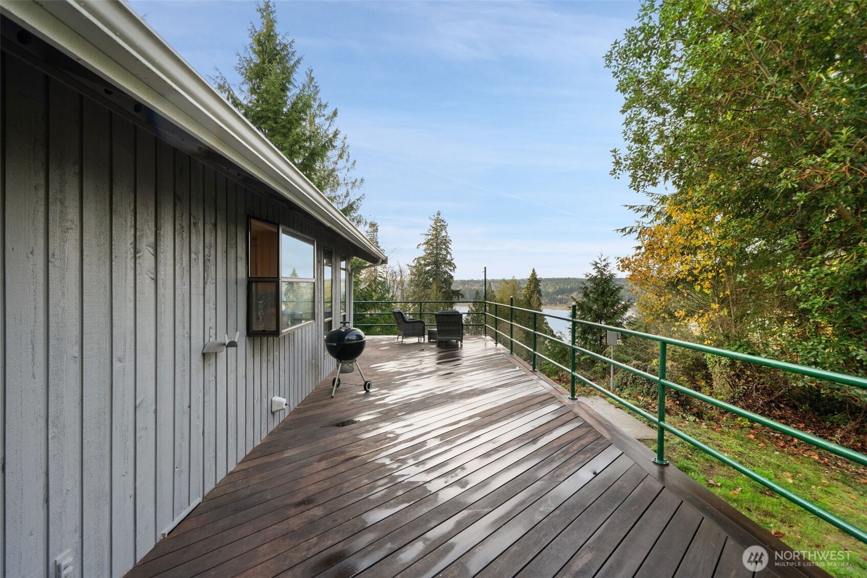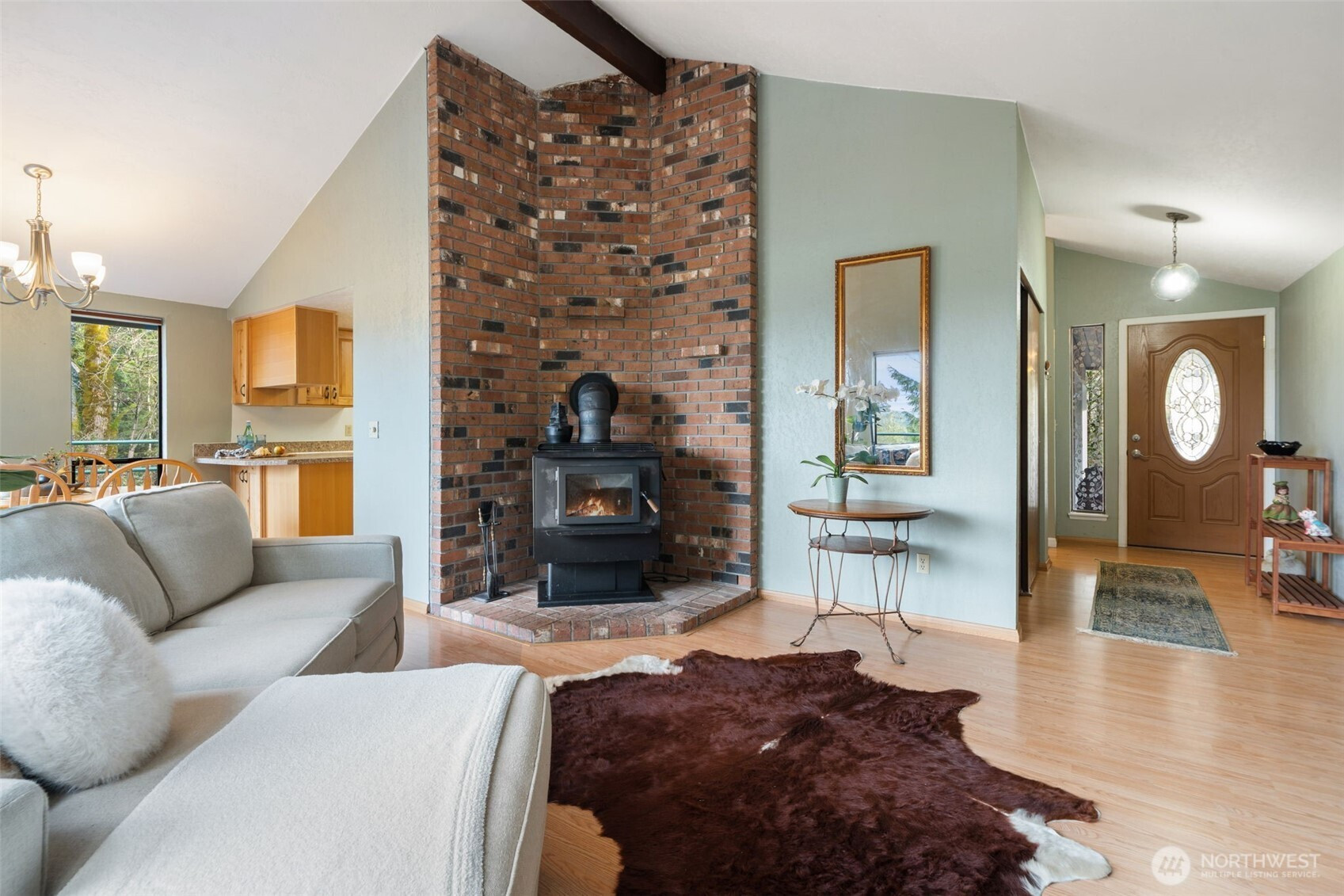 Peaceful, private acreage with stunning Hood Canal and Olympic Mountain views! This 1,460 sq ft single-level home offers 3 bedrooms and 1.75 baths with vaulted ceilings, big windows, and abundant natural light. Cozy wood stove adds warmth and charm. Attached garage plus detached shop and shed provide excellent storage and workspace. Two parcels totaling 7.25 acres feature beautiful greenspace with a tranquil trail winding through dense forest—perfect for exploring, relaxing, or enjoying nature. A rare opportunity for space, privacy, and views close to Belfair. Accessed by a paved road and driveway with a noticeable grade, offering added privacy and scenic outlooks.