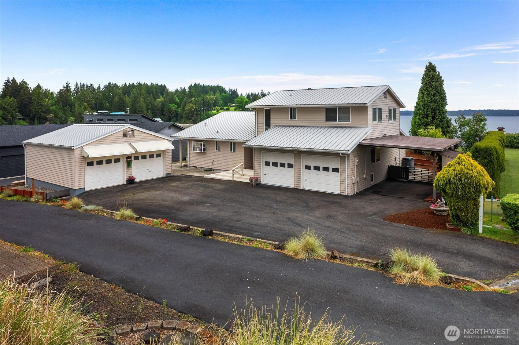 Stunning 180° bay and Totten Inlet views define this private Kamiche Point retreat. This 3 bed, 2.5 bath home is designed to capture light and scenery from the main living spaces, creating a seamless indoor-outdoor feel. Enjoy over 100 ft of high-bank waterfront with tideland rights in a sought-after community with private boat launch and dock access. Open living, dining, and gourmet kitchen with high-end appliances, plus a bright atrium. Spacious primary suite with 5-piece ensuite. Heat pump, generator hookups, attached and detached 2-car garages, and RV/boat parking complete the package. Conveniently located near recreation, golf, shopping, dining, and Little Creek Casino Resort, with easy access to Highway 101.
