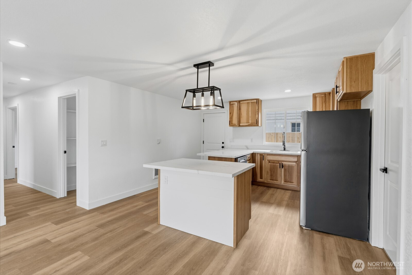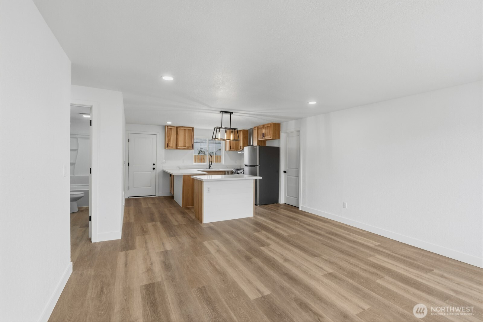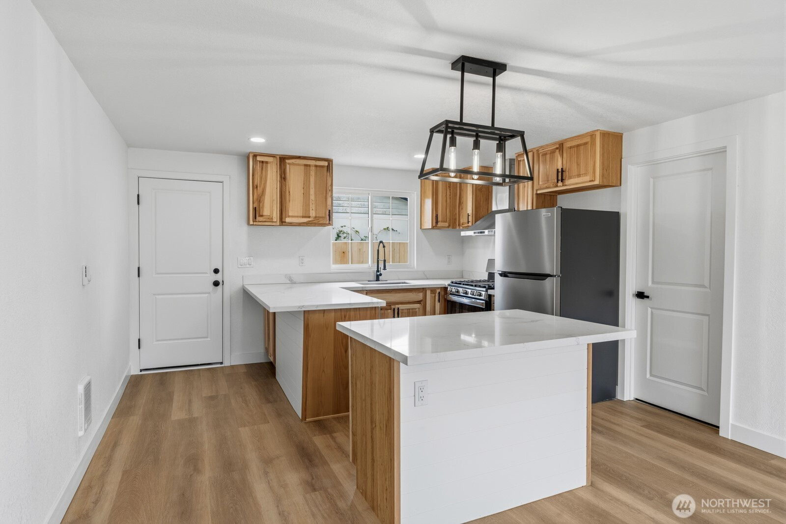 (503) 893-8874Welcome to this beautifully updated 3-bedroom, 2-bath home offering over 1,300+ sq ft of modern living space. Step inside and fall in love with the open floor plan enhanced by designer finishes throughout. The stunning kitchen features new stainless-steel appliances, updated cabinetry, quartz countertops, and a large center island—perfect for entertaining friends. The spacious primary suite includes a private bathroom with a custom tiled shower surround and a new vanity topped with quartz countertops. Interior updates include new doors, millwork, fixtures, lighting, and flooring throughout. Outside, enjoy peace of mind with a new roof, fresh exterior paint, new siding, and fencing. The oversized back patio offers the ideal space for outdoor dining, relaxing, or hosting gatherings. Additional features include a 1-car garage and a convenient location near Mountain View Elementary, shopping, and freeway access. This move-in-ready home blends style, comfort, and convenience—don’t miss your opportunity to make it yours!