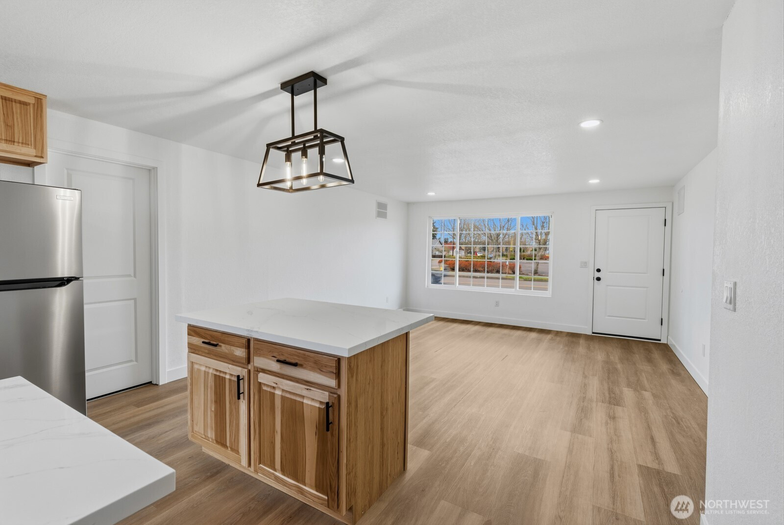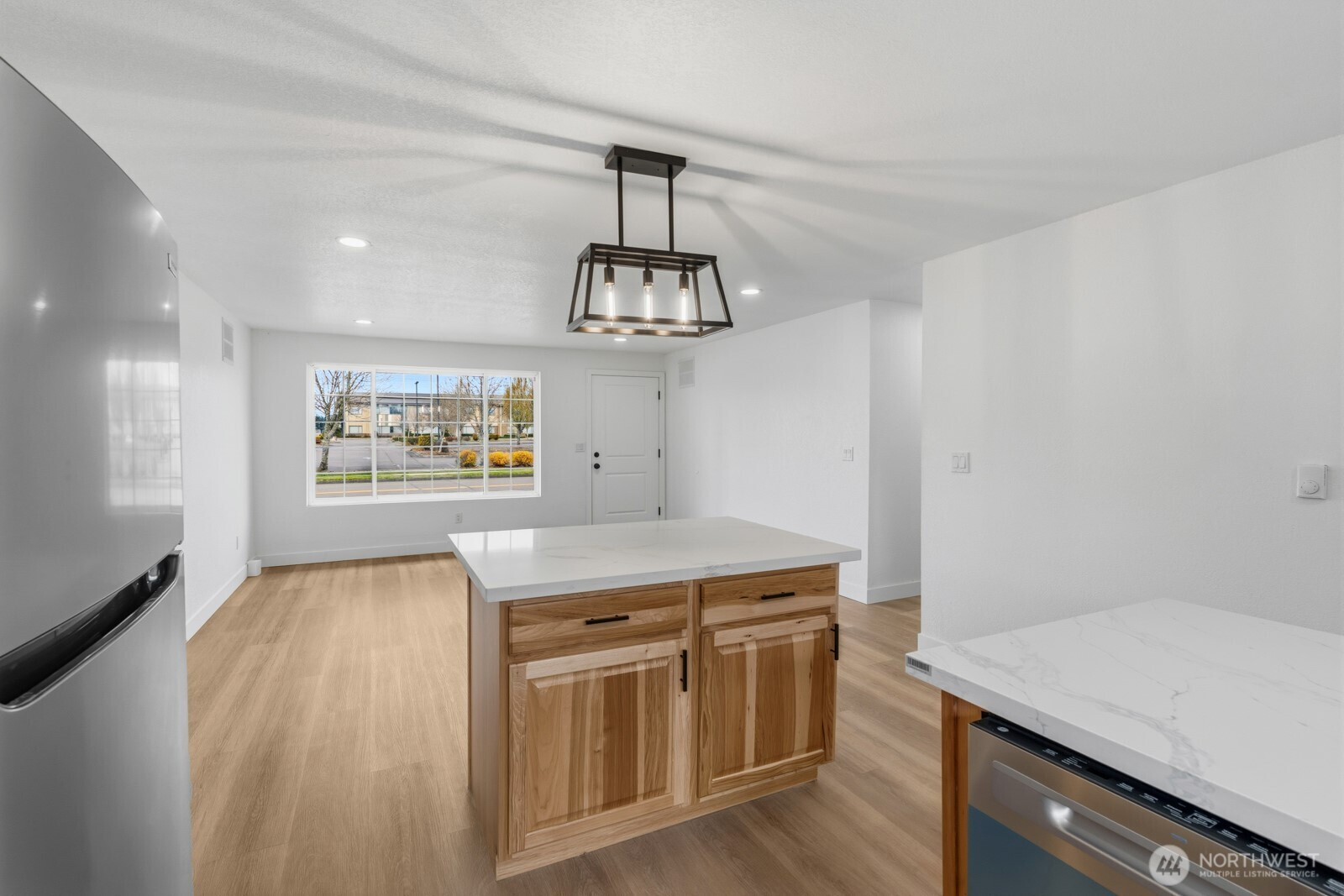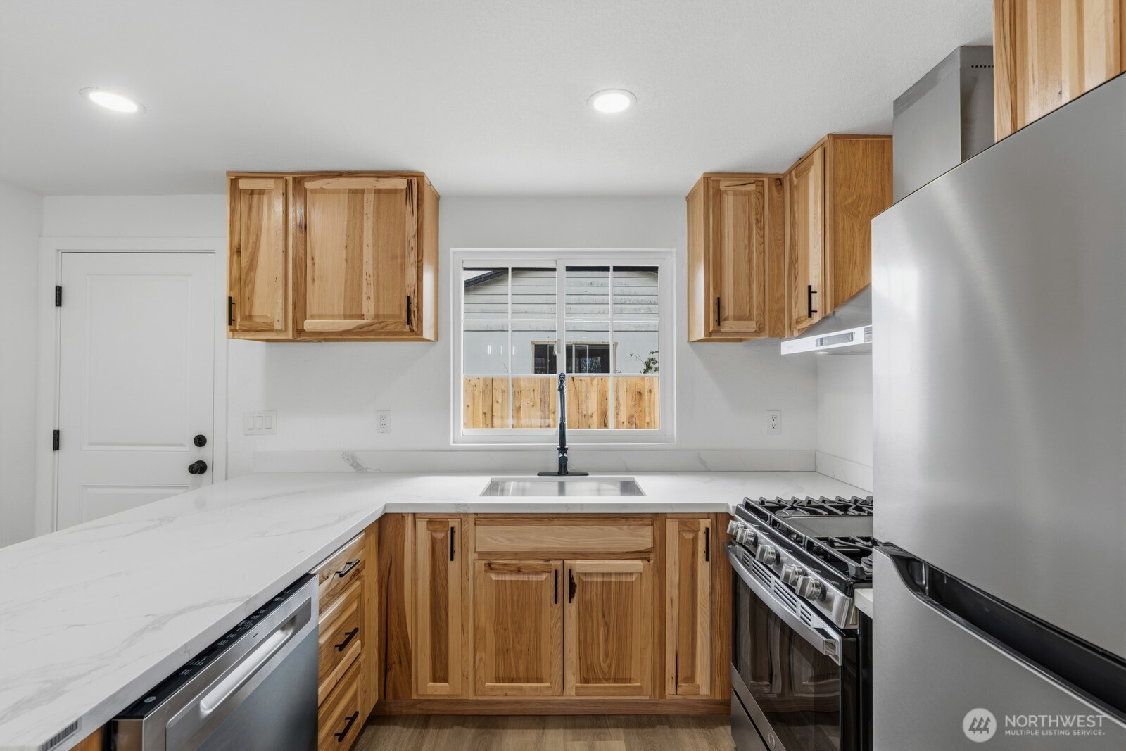 (503) 893-8874Welcome to this beautifully updated 3-bedroom, 2-bath home offering over 1,300+ sq ft of modern living space. Step inside and fall in love with the open floor plan enhanced by designer finishes throughout. The stunning kitchen features new stainless-steel appliances, updated cabinetry, quartz countertops, and a large center island—perfect for entertaining friends. The spacious primary suite includes a private bathroom with a custom tiled shower surround and a new vanity topped with quartz countertops. Interior updates include new doors, millwork, fixtures, lighting, and flooring throughout. Outside, enjoy peace of mind with a new roof, fresh exterior paint, new siding, and fencing. The oversized back patio offers the ideal space for outdoor dining, relaxing, or hosting gatherings. Additional features include a 1-car garage and a convenient location near Mountain View Elementary, shopping, and freeway access. This move-in-ready home blends style, comfort, and convenience—don’t miss your opportunity to make it yours!