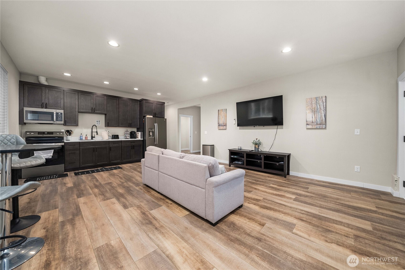 Multigenerational living at its best or rent part of house for additional income! Lower level living has 2 spacious bedrooms, full bathroom with dual vanity and separate living room and kitchenette that has private entrance and patio. Main level has primary bed and bath to step out onto large deck to enjoy the quiet, private street. Upper level is a large open flex space to make whatever you want to imagine-huge home office, game room, theater room, or additional gathering place to relax. Lower and middle level have private entrances and can be locked individually from the stairwell to create 2 homes in one. Private access to Coon Lake for fishing, boating or swimming. Don't wait to come check out this amazing property today!