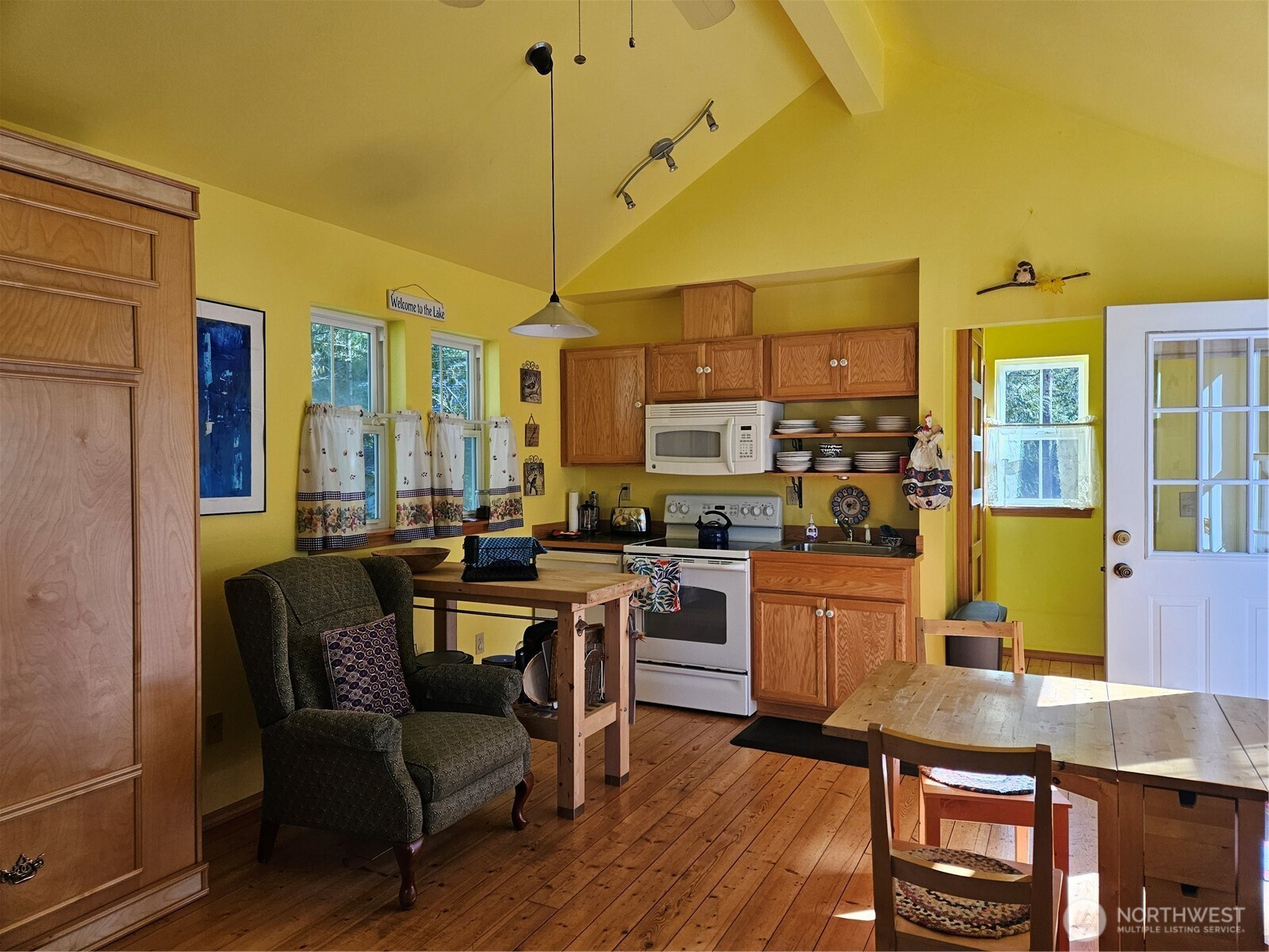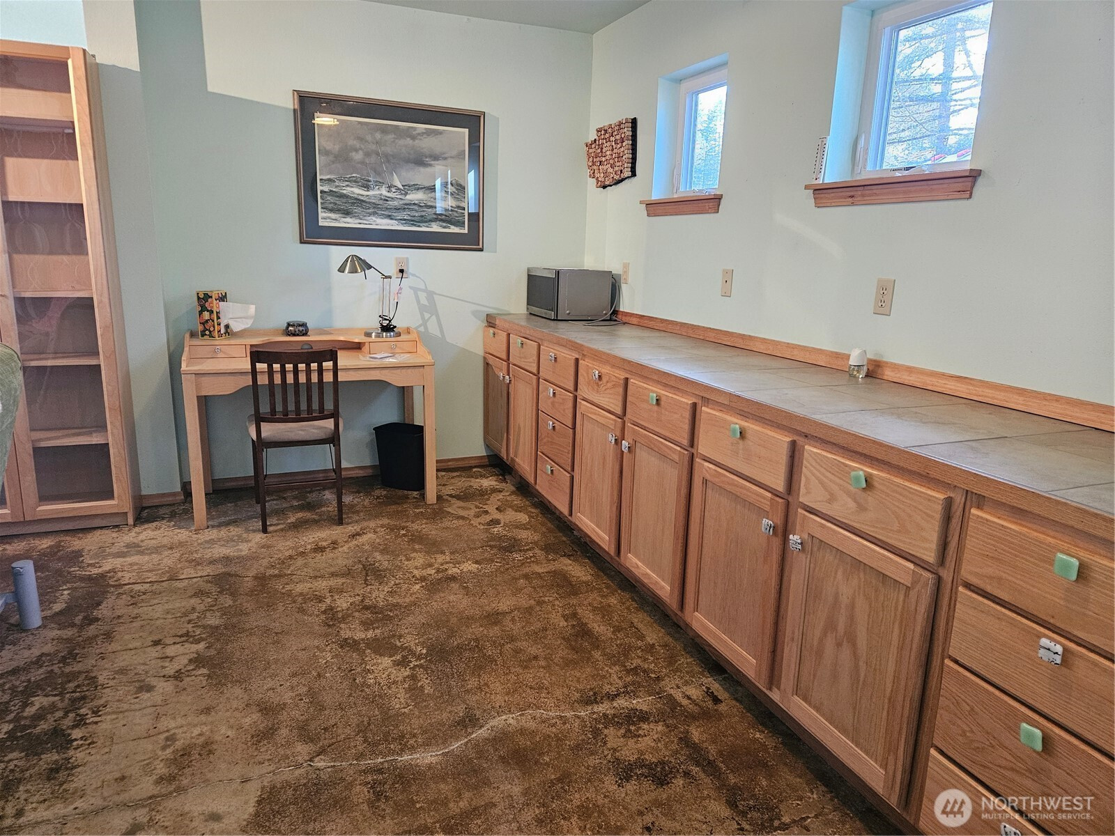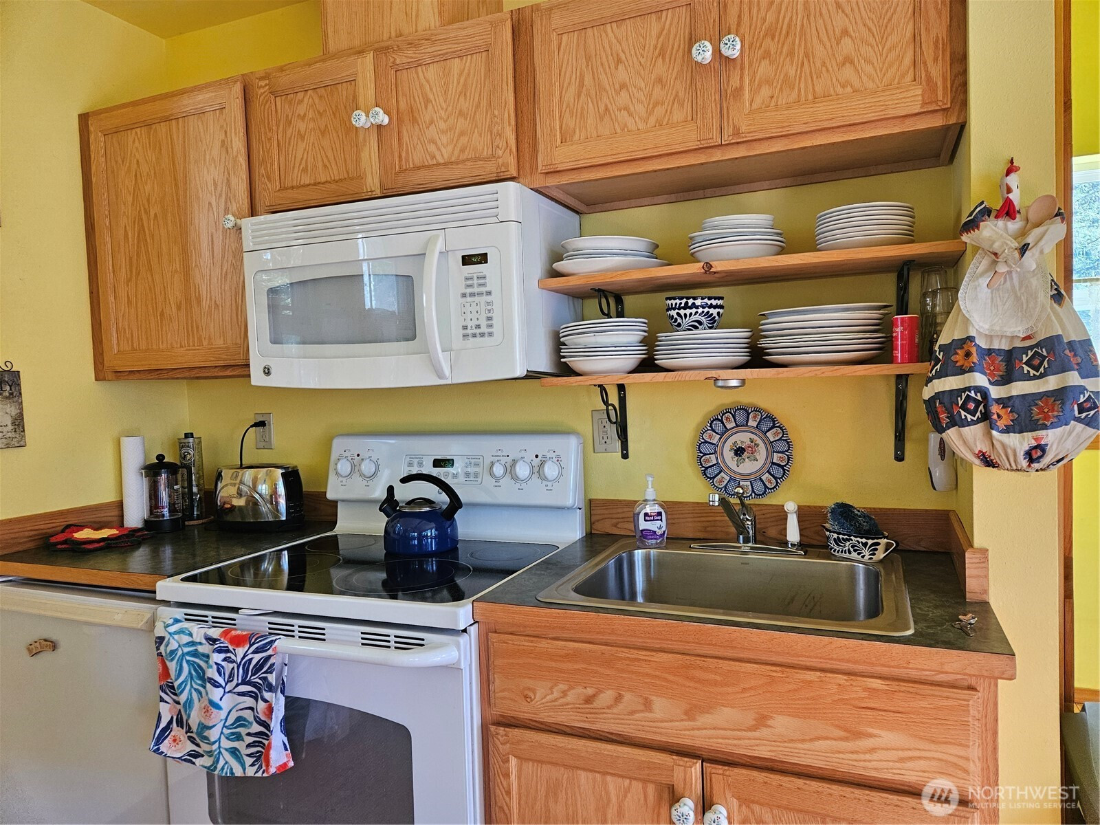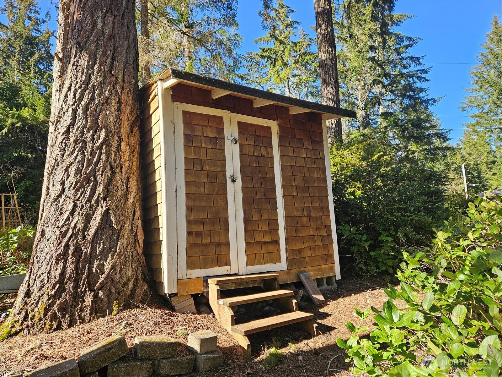 Rare Opportunity in Colony Surf! Discover this unique, fully furnished gem tucked away at the quiet end of the lake. This versatile two-story floor plan is designed for maximum utility, featuring an upper-level studio with a kitchen, 3/4 bath, and a space-saving Murphy bed—all dishes and utensils included!The lower level offers an integrated office space, built-in storage, a hide-a-bed for guests, and convenient in-unit laundry. Need more room? The detached 200 sq. ft. bunkhouse provides the perfect escape with its own desk and additional sleeping quarters.This property is fully prepared for modern convenience and outdoor living, featuring an RV hookup and professional wiring for both a generator and a hot tub. From the furniture to the forks, everything stays. Just bring your toothbrush and start lakeside living today!