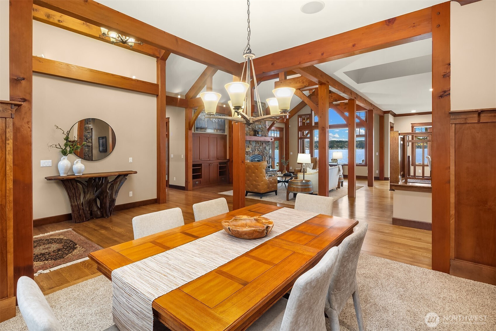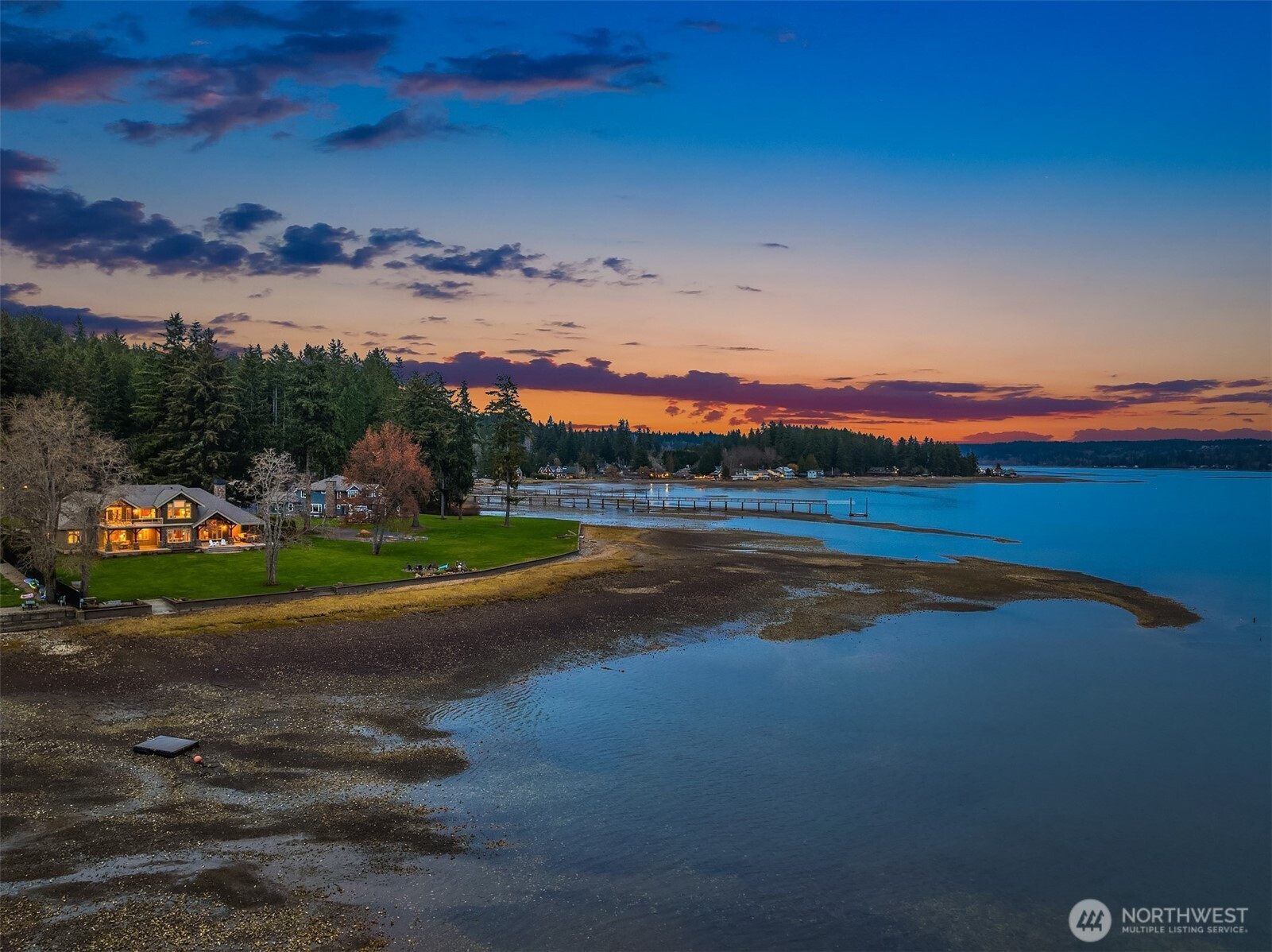 Set behind a private gate along Hood Canal, this custom timber-frame home sits on 2.6 level acres, with 170 feet of no-bank waterfront and tidelands included, offering true PNW waterfront living. Properties along this stretch of canal with usable shoreline, level land, and this level of privacy rarely come available. From the lawn, you can walk directly to the beach for kayaking, paddleboarding, fishing, or digging for oysters and clams. A salmon-spawning creek runs through the property, adding to the property's natural beauty and connection to the surrounding landscape. Built in 2011, this meticulously maintained home was designed for comfortable main-level living. Timber framing, skylights, and large windows bring warmth and natural light into the main living spaces. A finished bonus room above the garage with an electric fireplace provides flexible space for guests, recreation, or a home office. Recent improvements include a kitchen refresh in 2023 with a new cooktop, hood vent, backsplash, and lighting, along with updated bathrooms in 2023. Flooring includes 4-inch quarter-sawn white oak, tile, and carpet, and the exterior was painted in 2022. Outside, you will find a vegetable garden and an additional shop or garage, all in a quiet estate setting set well back from the road. Alderbrook Resort and Spa, local wineries, parks, and a public boat launch are just minutes away. Schedule your private showing to experience this Hood Canal property in person.